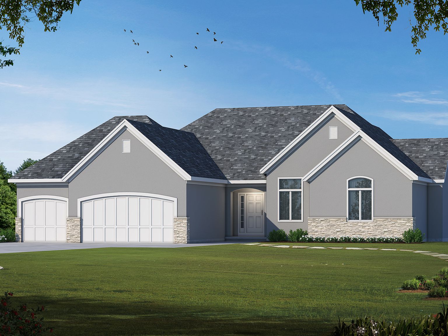McQueen Homes Adrian reverse plan. Open Great Room with fireplace leading the the spacious Kitchen & Breakfast Area looking out over the lake. Kitchen Island, large walk in pantry. Main floor Master Bedroom and Bath Suite with large walk in closet, separate shower & tub. Main floor second bedroom and Laundry. Lower level walkout Rec Room, 3rd and 4th Bedrooms, Full Bath and 1/2 Bath. 3 Car Garage