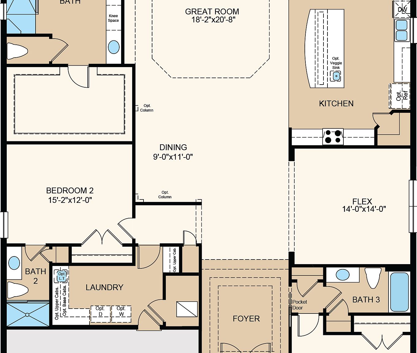 The open-concept Pallazio home design features ample square footage, several upgrade options both indoors and out, and attractive appointments throughout. Starting at 2,929 square feet, this home offers three bedrooms plus a study and alternate room layouts such as an optional fourth bedroom give the design a customizable, more personalized array of possibilities within.