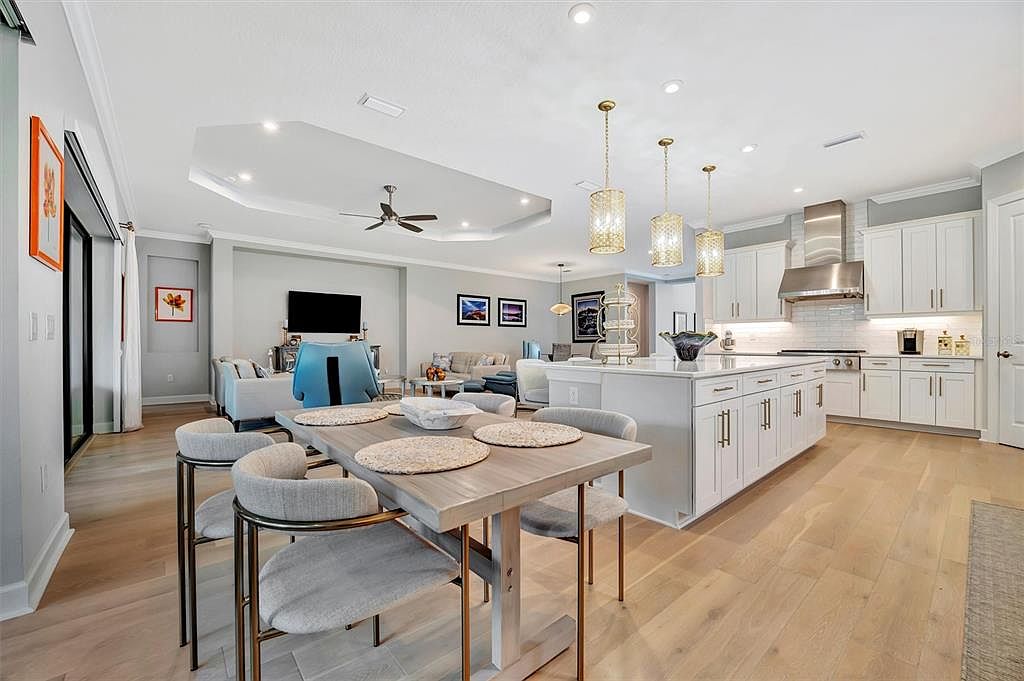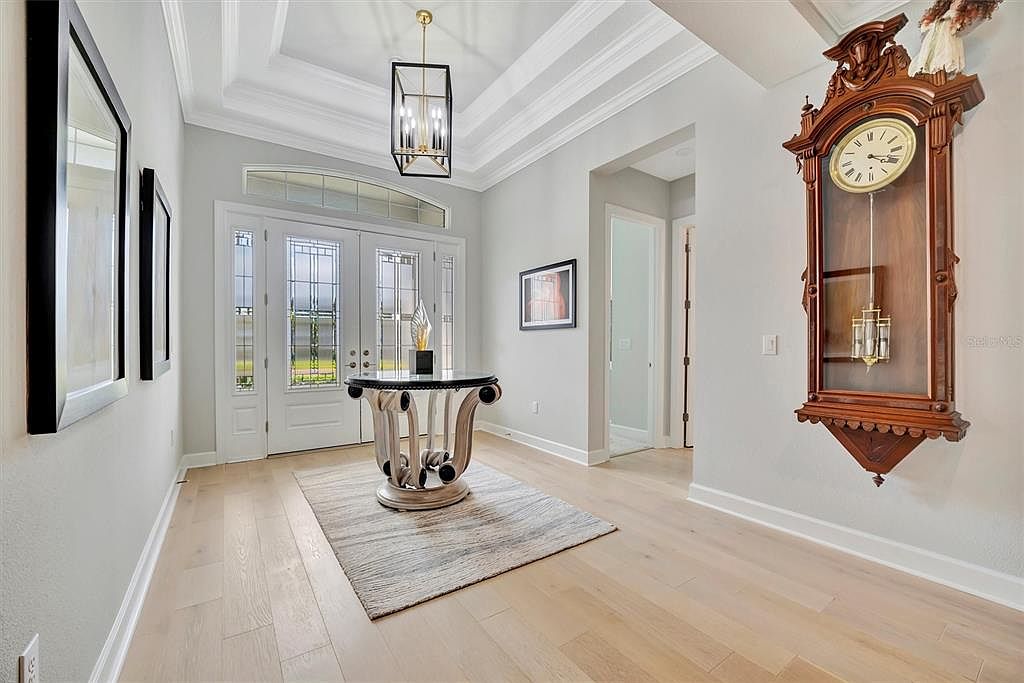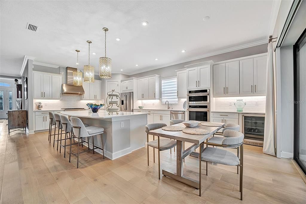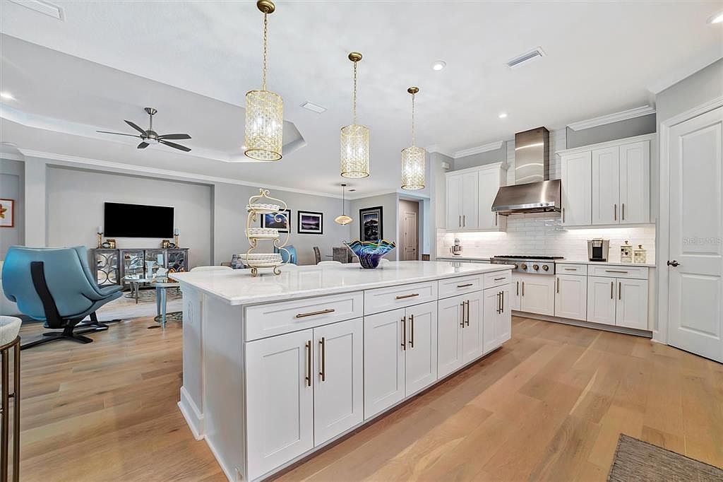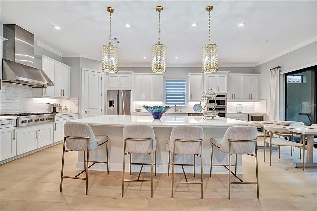 Florida luxury living at its finest! This stunning 3 bed/3 bath home is located on a conservation lot with a fenced back yard in the desirable community of Esplanade at Azario Lake offering a blend of comfort, style and luxury. This beautiful Palazzio model is situated in a tranquil neighborhood with easy access to the area’s vibrant amenities, making it ideal for seeking both convenience and serene living. This well-maintained gated community boasts a spacious, open-concept layout that is perfect for both family living and entertainment. As you enter the home, you are welcomed into a bright and airy foyer with soaring ceiling, large hurricane impact sliders and an abundance of natural light. The modern kitchen is a chef’s dream with top-of-the-line appliances, an extensive quartz island, gas cook top, walk-in pantry, and an abundance of storage making it ideal for meal preparation and entertainment. The home includes a luxurious master suite with a huge walk-in closet and en-suite bathroom with an amazing shower. All rooms are designed with high-end finishes, offering both functionality and style. The den offers additional space with flexible options such as an office or creative space for hobbies. The home also includes a high-end water treatment system and all lighting was upgraded after closing. The home’s extended lanai provides a perfect space for relaxation and entertainment. The lanai is plumbed for an outdoor kitchen and wired for TV making it ideal for outdoor activities and enjoying Florida’s beautiful weather. The backyard is perfect for adding a pool. Living in Esplanade at Azario Lake offers residents access to world-class amenities such as golf, pickleball, tennis, Bahama bar, resort style pool, and a culinary arts building offering on-site world class dining. This home is not just a place to live, but an exceptional lifestyle to experience.
