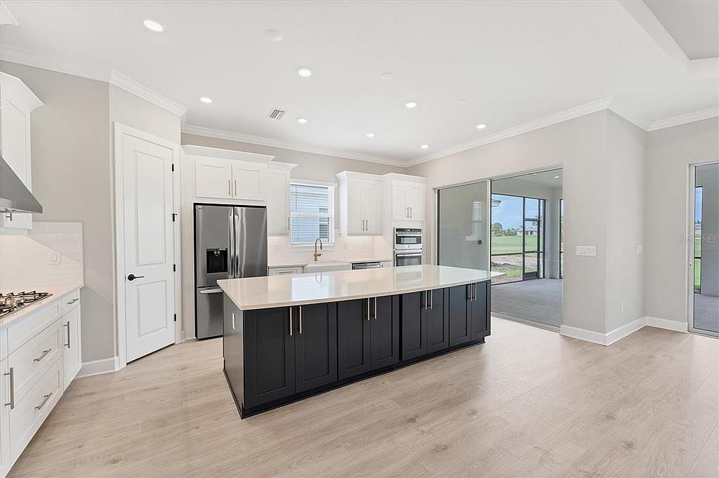 One or more photo(s) has been virtually staged. **GOLF-INCLUSIVE Luxury Home on the 10th Hole in Esplanade at Azario Lakewood Ranch** Live the Florida lifestyle in this beautifully upgraded Lazio model, ideally positioned on the 10th hole in the highly sought after, gated golf community of Esplanade at Azario. With golf membership included and just a short stroll to fabulous amenities, this home offers resort-style living at its finest. Enjoy wine tastings, cooking classes, fine dining, a state-of-the-art fitness center, and a luxurious spa — all within your own community. Whether you’re savoring poolside bites or elegant meals overlooking the fairway, Azario offers a lifestyle like no other. From the moment you arrive, the coastal elevation and glass front door set the tone for the light, bright interior. Inside the home, you’ll find 10-foot ceilings, 8-foot doors, tray ceilings, crown molding, and wide-plank light oak flooring throughout. The home offers 3 spacious bedrooms, each with its own en suite bathroom, plus a versatile den perfect for a home office or media room. The gourmet kitchen is a chef’s dream, featuring quartz countertops, an apron-front sink, GE gas cooktop and wall oven, under-cabinet lighting, and extended cabinetry under the island for added storage. The open-concept layout seamlessly connects the kitchen, dining, and living areas—ideal for both entertaining and everyday comfort. Two sets of sliding glass doors open onto the expanded covered lanai, blending indoor and outdoor living and showcasing sweeping views of the golf course. The lanai is prepped with gas, electric, and plumbing, making it easy to design your dream pool and outdoor kitchen. The primary suite is privately tucked away at the rear of the home, with tranquil golf course views. The luxurious en suite bathroom features dual vanities, a large walk-in shower, upgraded lighting, and designer finishes. At the front of the home, two additional guest suites offer full baths and total privacy, perfect for visitors. Located in the heart of Lakewood Ranch, you’ll be minutes from world-class shopping, dining, “A”-rated schools, miles of walking trails, and the sparkling Gulf Coast beaches. Don't hesitate, book your showing today!