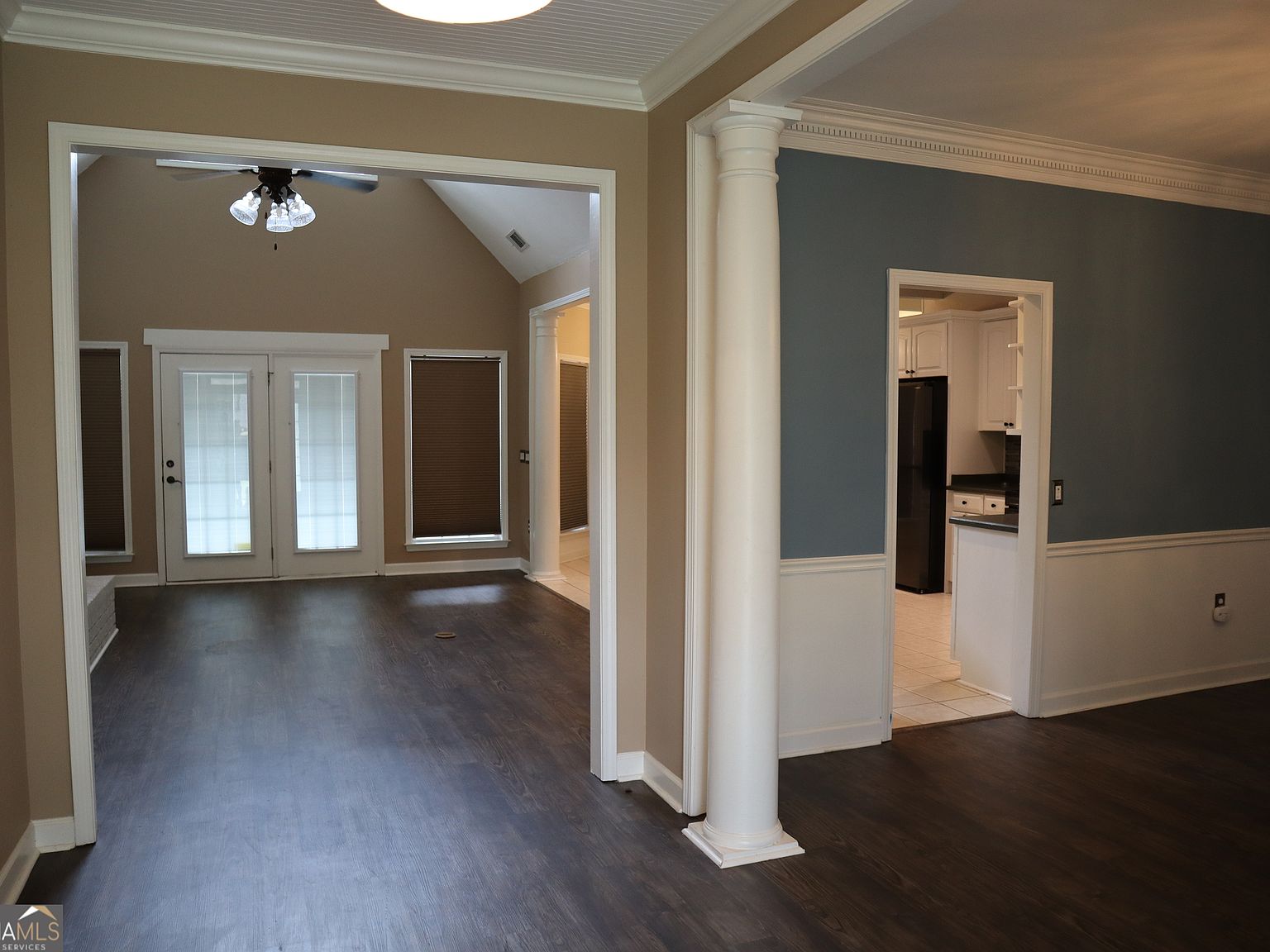 Welcome to luxurious golf course living at 1317 Kermit Drive, a stunning 4-bedroom, 2.5-bathroom brick home located on the 5th fairway of the award-winning Georgia Southern Golf Course. Nestled on a spacious 0.69-acre cul-de-sac lot in the tranquil Meadow Lakes Plantation subdivision, this property offers privacy and beautiful views with low vehicle traffic. The neighborhood is in a great location, close enough to enjoy Statesboro's amenities and the vibrancy of Georgia Southern University, but far enough away to maintain a quiet atmosphere. Entertain guests or relax by the cozy gas log fireplace in the welcoming great room, which features built-in cabinetry and an abundance of natural light. Enjoy cooking in the family-friendly kitchen, complete with custom cabinetry, solid surface countertops, a tile backsplash, and a bright bayed breakfast area. A separate formal dining room offers an elegant space for hosting dinner parties and holiday gatherings. The main-level owner's suite features a vaulted ceiling, a walk-in closet, and a spa-like tiled bath with a jetted tub and separate tiled glass shower. Throughout the home, custom touches like crown molding, bead board wainscotting, and arched transom windows elevate the space. Durable LVP and tile flooring cover the entire lower level, providing both beauty and function.
