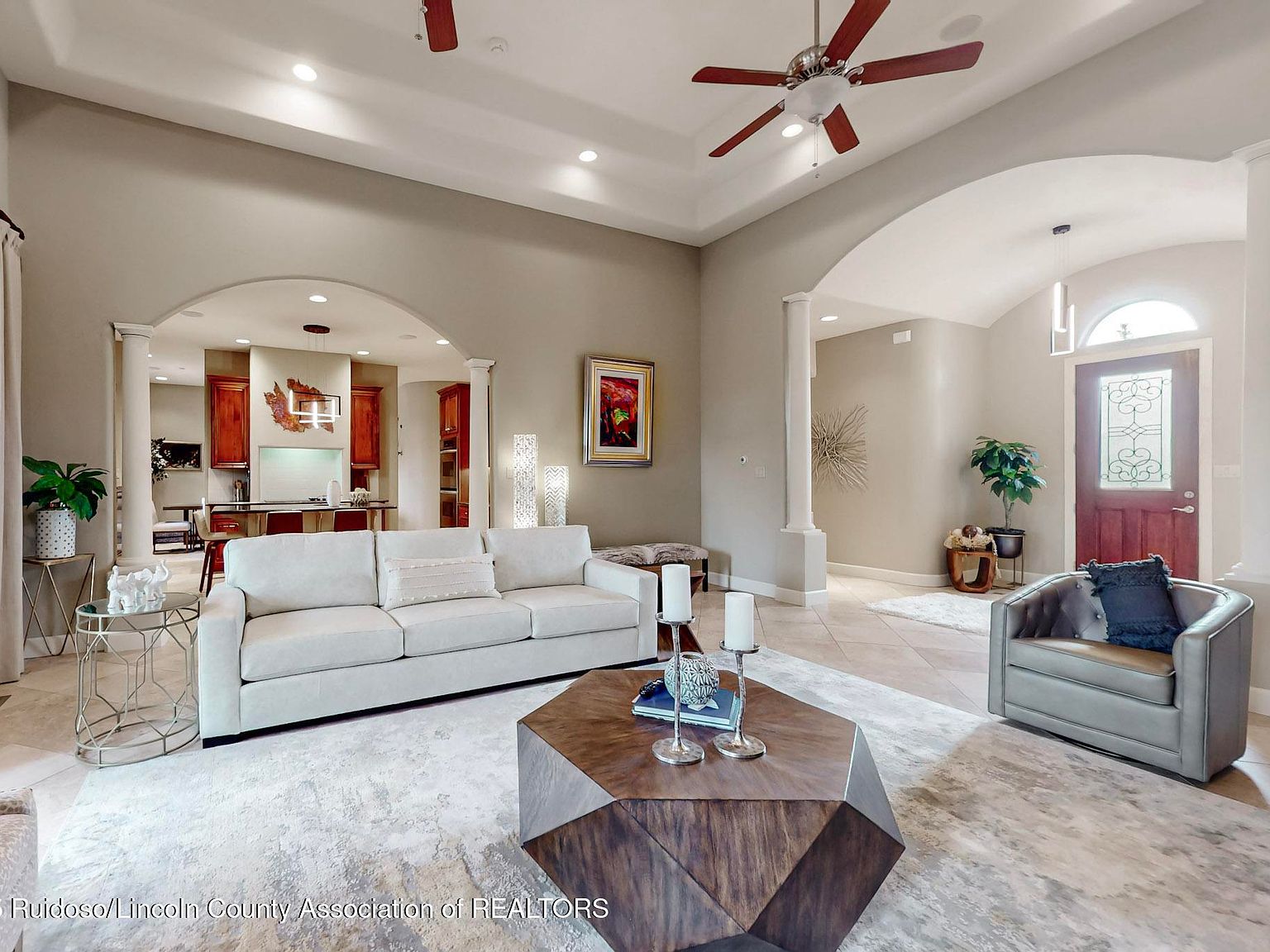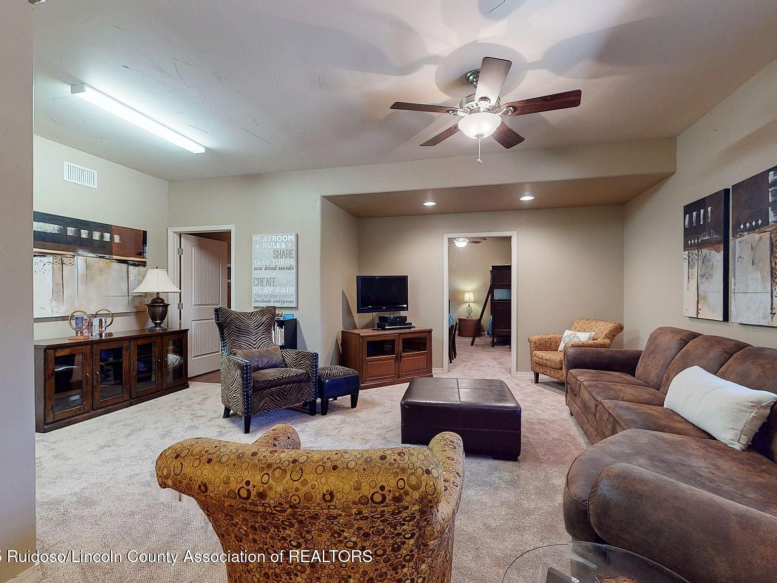 Very nice home with Golf membership, close to Alto Club and on #6 Fairway. Level Access, 3 car garage. Fully furnished, Fireplaces in LR, back patio and Master BR. In floor heat and forced air and A/C. Small courtyard on front and very nice covered back deck with fireplace, that is protected from the wind. House is 4 Bedrooms, Seller is using Office as 5th Bedroom.