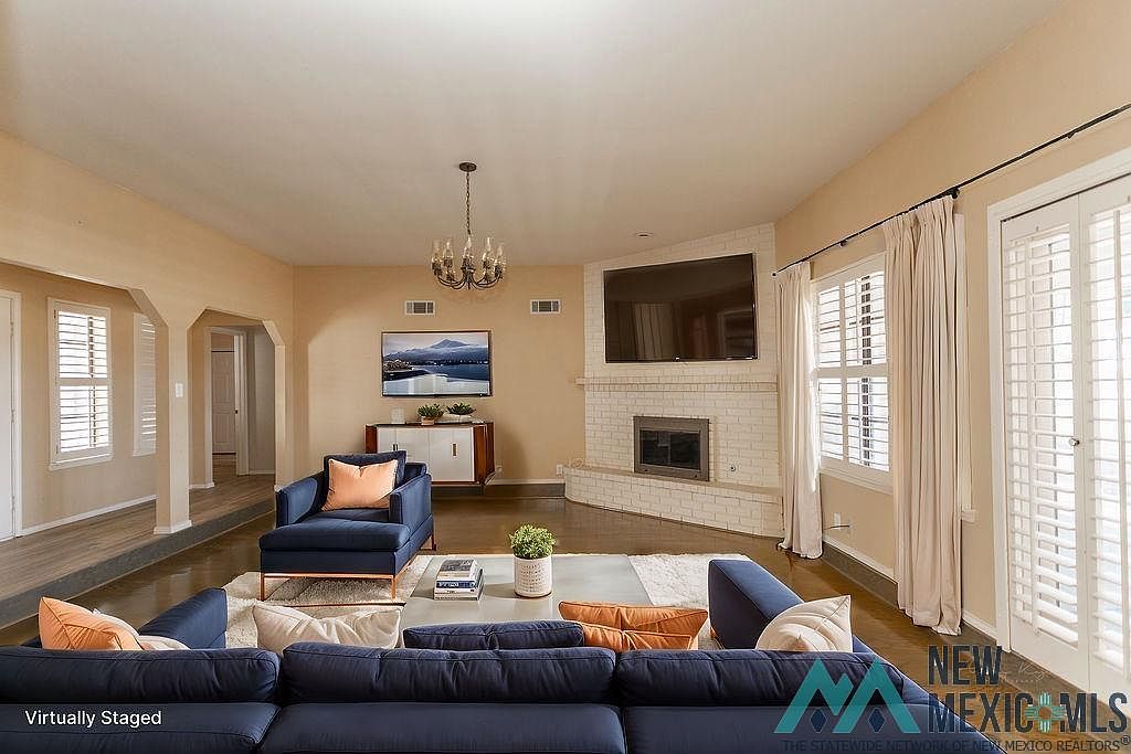 This home is a diamond in the highly sought, Country Club subdivision, overlooking the Riverside Country Club golf course. This updated home features new flooring, updated bathrooms (3.5) and two relaxing outdoor spaces. You can choose from your gated front courtyard or covered back patio to enjoy the sunshine New Mexico has to offer. Inside you'll find a kitchen with an island, a primary suite with a fireplace and vanity area with a sink in the walk-in closet. The flooring in this home is spectacular. Also featuring a bonus room and half bath off the patio for guests, rec room, office...the possibilities are endless. This bonus room is approximately 100 +/- square feet and not included in square footage. Virtually staged images have been used to demonstrate the potential of this home. With acceptable offer and upon a successful closing - seller is offering $3,000 towards buyers closing costs!