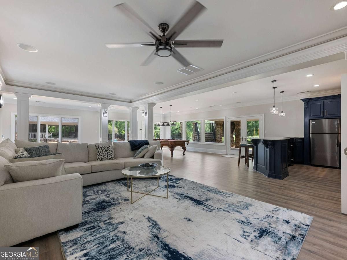 This exceptional estate offers a unique blend of luxury, privacy, and convenience, nestled within the prestigious Chateau Elan community in Braselton, Georgia. Situated on nearly 4 acres, the property boasts expansive golf course views and is just a short stroll from the renowned Chateau Elan Resort, Winery, and Spa. Property Highlights: Grand Living Spaces: The ranch-style home features a welcoming front porch and leaded glass double entry doors that open to an expansive Grand Room with beamed vaulted ceilings, a double-sided stone fireplace, and ample space for dining and entertainment. Gourmet Kitchen & Keeping Room: A spacious kitchen and breakfast room with large windows offer stunning views, complemented by a fireside Keeping Room for cozy gatherings. Owner's Suite: The main level includes a generous Owner's Suite, providing comfort and privacy. Finished Terrace Level: The lower level features three secondary bedrooms, multiple baths, a large entertainment area with a bar, billiards, and media viewing space, all with direct access to the pool area. Outdoor Oasis: The property includes a pool, pool house with a wet bar and full bath, vegetable and herb garden, fruit tree orchard, and a total of six garages. Community Amenities: Living in Chateau Elan extends beyond the home, offering a vibrant community with numerous amenities: Sports Club: Optional membership provides access to a 12,000 sq ft facility featuring a Junior Olympic-sized outdoor pool, kiddie pool, snack bar (seasonal), tennis courts, indoor fitness facilities, fitness classes, indoor gymnasium, indoor walking track, and outdoor sports fields. Tennis leagues, personal training, pickleball, and swim teams are also available. Golf Courses: Golf enthusiasts can enjoy three 18-hole courses and a par-3 course. The private Legends course requires a separate membership. Winery and Dining: Adjacent to the Chateau Elan Resort, Winery, and Spa, residents have access to multiple on-site restaurants, nightlife, and year-round special events. Connectivity: The community is golf cart accessible and connected via the Braselton Life Path, linking residents to other neighborhoods, restaurants, shopping, parks, and the Northeast Georgia Medical Center. Recreational Facilities: The Chateau Elan Racquet Club offers tennis and pickleball courts, while the Sports Club includes indoor basketball facilities. The estate is conveniently located near Interstate 85, providing easy access to Atlanta's metro offerings. Within 30 minutes, residents can reach Lake Lanier and the University of Georgia in Athens, with the North Georgia Mountains just an hour away. This property seamlessly combines luxurious living with the charm and amenities of the Chateau Elan community, offering an unparalleled lifestyle in the heart of North Georgia.