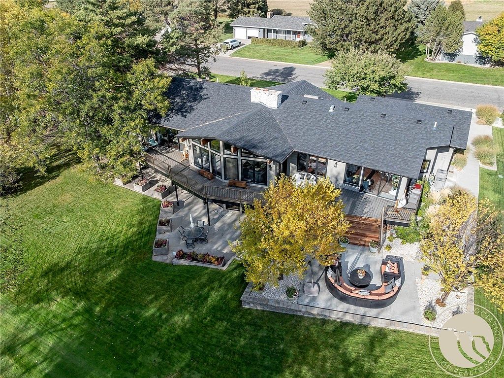 Located on the 10th hole of the Yellowstone Country Club Golf Course, this stunning home blends timeless design with modern luxury. Inside, European white oak herringbone and bamboo hardwoods pair with vaulted ceilings, timber beams, and floor-to-ceiling windows showcasing sweeping golf course views. The newly landscaped yard and an expansive south-facing deck, rebuilt in 2025 and accessible from the kitchen, family room, and primary, offer the ideal setting for sunsets and entertaining. Featuring 5 bedrooms and 4.5 renovated baths with quartz or marble countertops, heated towel racks, and designer finishes, the main level includes two bedroom suites, one with dual baths and closets. The walk-out basement boasts a large family room, workout area, and 3 spacious bedrooms, two with direct golf course access. Info deemed reliable but not guaranteed. Buyer/buyer agent to verify.