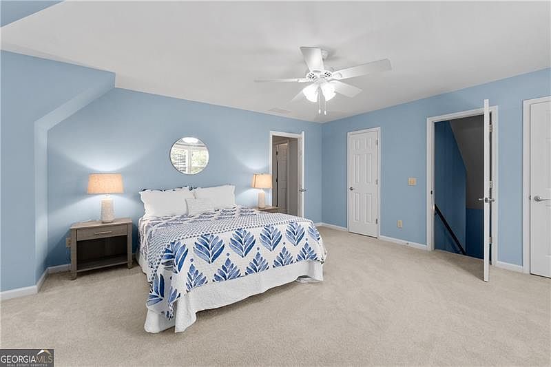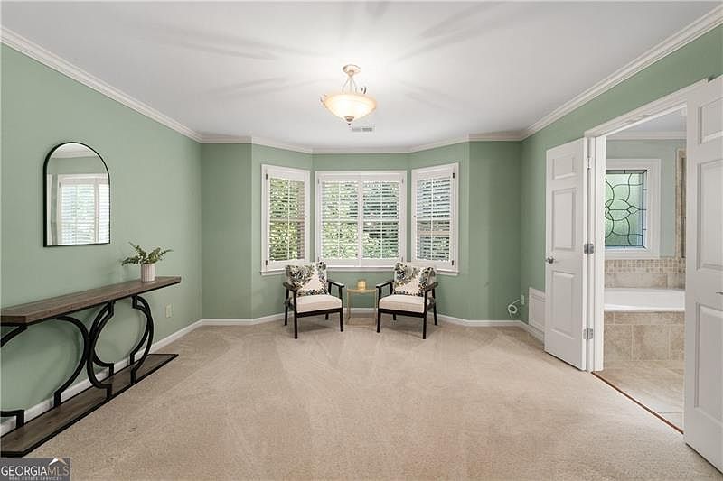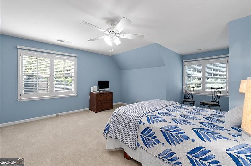 AMAZING GOLF COURSE/POND VIEWS AND 5400+ SQ FEET with CORPS of ENGINEERS property as a backdrop! Enjoy the privacy the golf course and Corps property provide along with a tranquil cul de sac location! Close to the main pools and amenity area! This home is LARGER than the rest! Plus an almost ONE ACRE LOT!* One owner and meticulously maintained!!* High quality newer windows and doors!* Real hardwood floors!* Plantation shutters for privacy and bay windows provide light!* Owner's retreat features a spacious sitting room/dressing area! En suite bath features high quality wood cabinets, double vanity, tiled shower, soaking tub, frameless glass shower, separate water closet, and roomy walk-in closet!* Two more large bedrooms up!* Extra large laundry room with utility sink!* Ample closet space on every level!* Main floor also includes a private guest bedroom and bath! PLUS a half bath for guests!* Vaulted great room features a gas log fireplace, french doors to deck, and a cheerful sunroom with tiled floor!* The kitchen boasts warm stained cabinets, granite counters, stainless appliances, pantry, breakfast bar and convenient island!* Energy efficient/low maintenance windows and doors throughout!* Front and rear stairs!* Central vacuum!* Sprinkler system!* Solid wood interior doors!* Easy care synthetic deck boards!* Terrace level includes a HUGE family room with fireplace, walk-in storage closets, bedroom and full bath, a massive workshop/flex zone plus a private covered deck!* Additional storage in full-height sub-basement room!* Fully fenced rear yard!* Stucco exterior has been maintained with care!* Walk to the desirable Eagle Watch amenities - golf course, pools, tennis and pickleball courts, playground, clubhouse!* Just minutes to Downtown Woodstock!* Walk to shopping, restaurants, ballpark, library, and the Greenprints Trails!* Desirable Bascomb Elem, Booth Middle and Etowah High!*