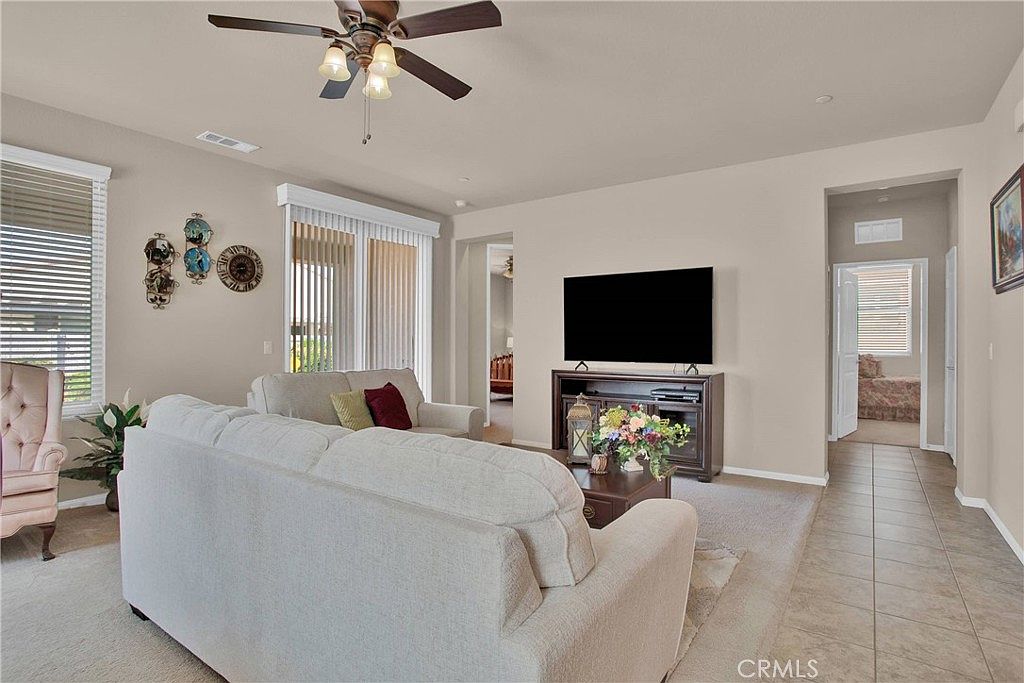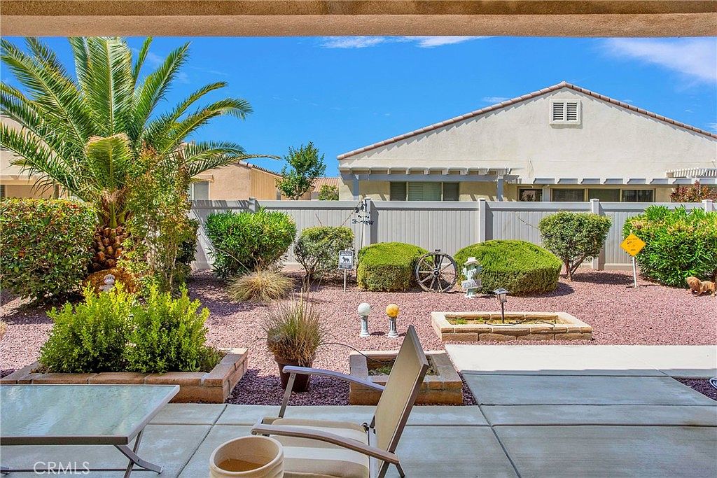 Come see this charming 2-bedroom, 2-bath home, located in the premier golf course retirement community of Sun City by Del Webb! This beautifully maintained residence offers an open floor plan and shows like a model home. Enjoy pristine tile flooring throughout the main living areas, plush carpet in the bedrooms, sleek granite countertops, and stainless steel appliances in the spacious kitchen. White plantation shutters add elegance and style, while the immaculate landscaping—both front and back—creates a lush desert oasis. Whether you're relaxing in the private backyard or enjoying community amenities, this home is the perfect blend of comfort and sophistication. Nestled in the heart of an exclusive neighborhood, it’s ready for you to move in and enjoy the lifestyle you’ve been dreaming of!