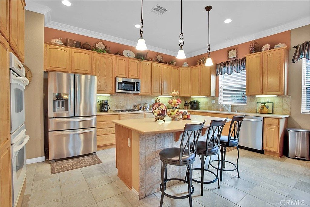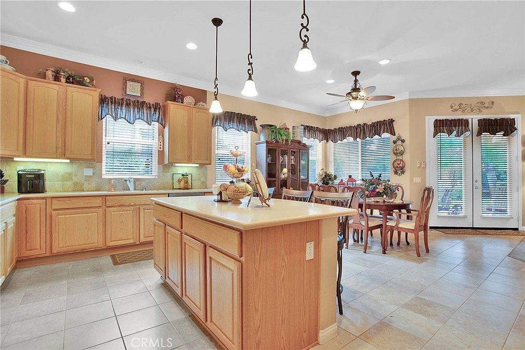 This beautifully upgraded 2,167 sq. ft. home in the 55+ Del Webb community has all the comfort, charm, and thoughtful touches you didn’t know you needed—until now. With 2 spacious bedrooms, an office (perfect for “working” or hiding from your to-do list), and 3 bathrooms, there’s room for everything and everyone. The kitchen brings both style and function, featuring pendant lighting, a chic backsplash, under-cabinet lights, pull-out shelves, a Lazy Susan, and fixtures that make you feel like a gourmet chef—even if dinner is takeout. Ceiling fans with remote controls are installed in every room, so you can adjust the breeze without ever leaving the couch. There's surround sound in the living room for movie nights, upgraded dimmer switches for setting the mood, and a covered patio made for relaxing. The front and backyard are beautifully landscaped with privacy in mind, and the sprinkler and drip system help keep everything thriving—without breaking a sweat.