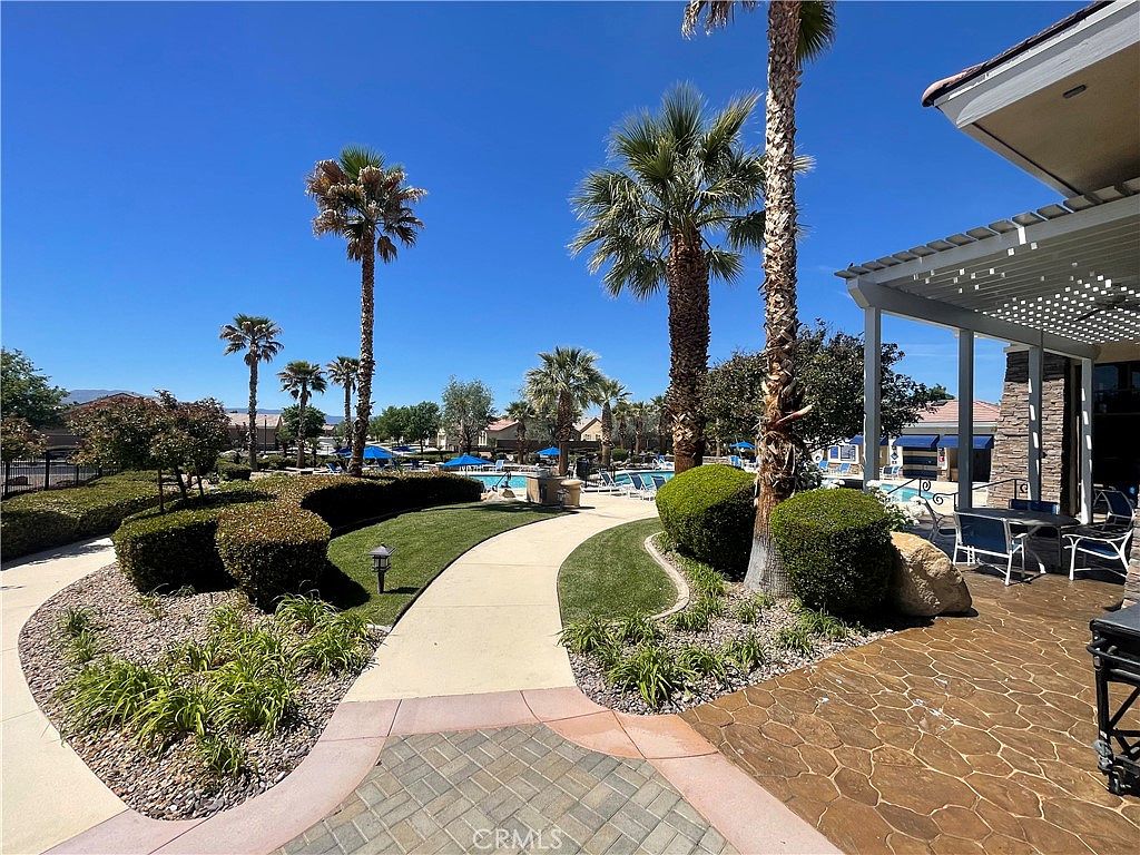 Welcome to 19365 Galloping Hill Dr. Located in one of Apple Valley’s most desirable 55+ gated communities, where resort-style living is right outside your front door. This spacious 2-bedroom, 2.5-bathroom home with a separate office/bedroom featuring 2,167 sq ft of thoughtfully designed living space with a peaceful, back patio, including a low maintenance alumiwood patio cover with above ground spa. Inside, you’ll find tasteful upgrades throughout, including modern wood look low maintenance laminate flooring, elegant baseboards, crown molding, and a wonderful open floor plan. Enjoy manicured easy care landscaping in both the front and back yards, perfect for relaxing or entertaining. The home also features a 2-car garage plus a separate space for your golf cart — ideal for enjoying the on-site golf course and nearby clubhouse. Just a short stroll away, residents have access to a wealth of HOA amenities including tennis and pickleball courts, a sparkling indoor and outdoor pool, and an inviting clubhouse includes resort style amenities. With well-maintained surroundings and a quiet, secure atmosphere, this 55+ community offers the perfect blend of luxury, comfort, and convenience. Don’t miss your chance to make this gate guarded home your own.