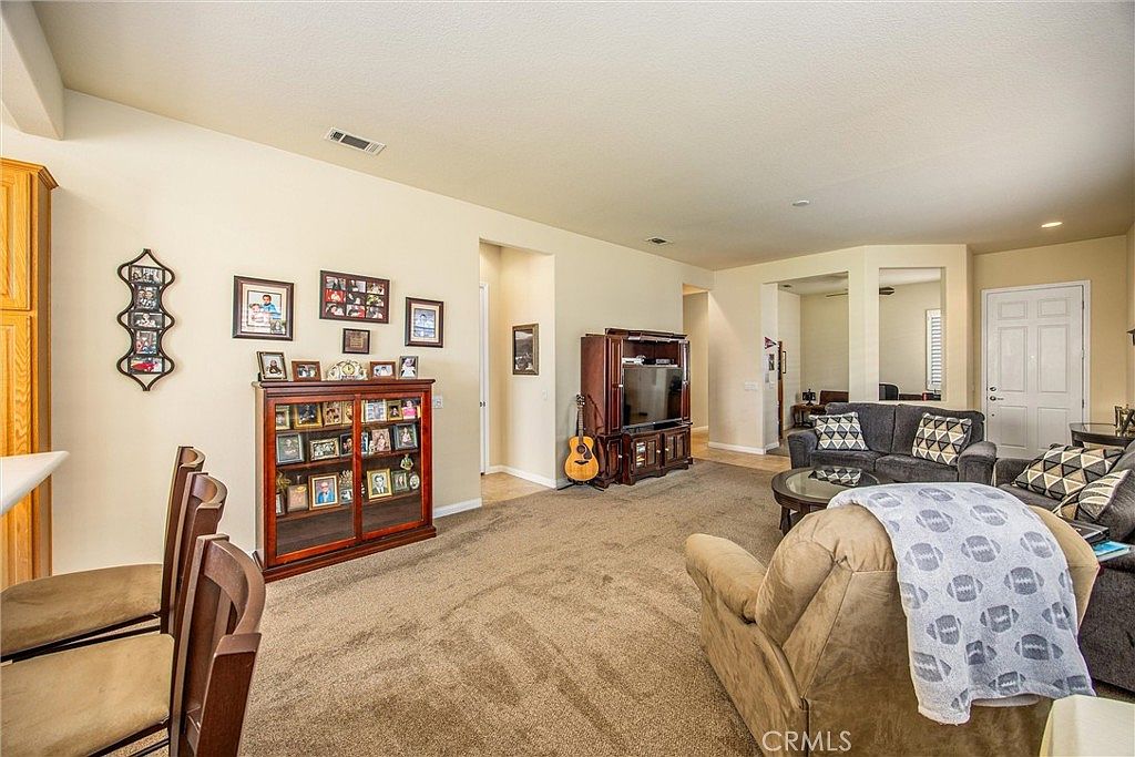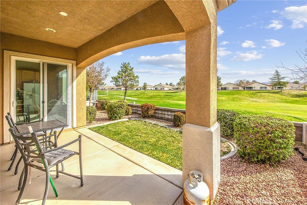Nestled right on the golf course, the private back patio offers stunning views. The kitchen provides a picture-perfect view of the greens while offering plenty of space for cooking and entertaining. Newer carpet adds to the home's comfort and style. This beautifully landscaped home features a rock design that not only enhances the curb appeal but provides a serene, low maintenance and water conserving yard. The attached 2-car garage ensures convenience and ample storage.