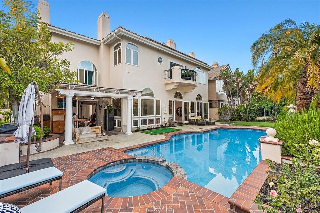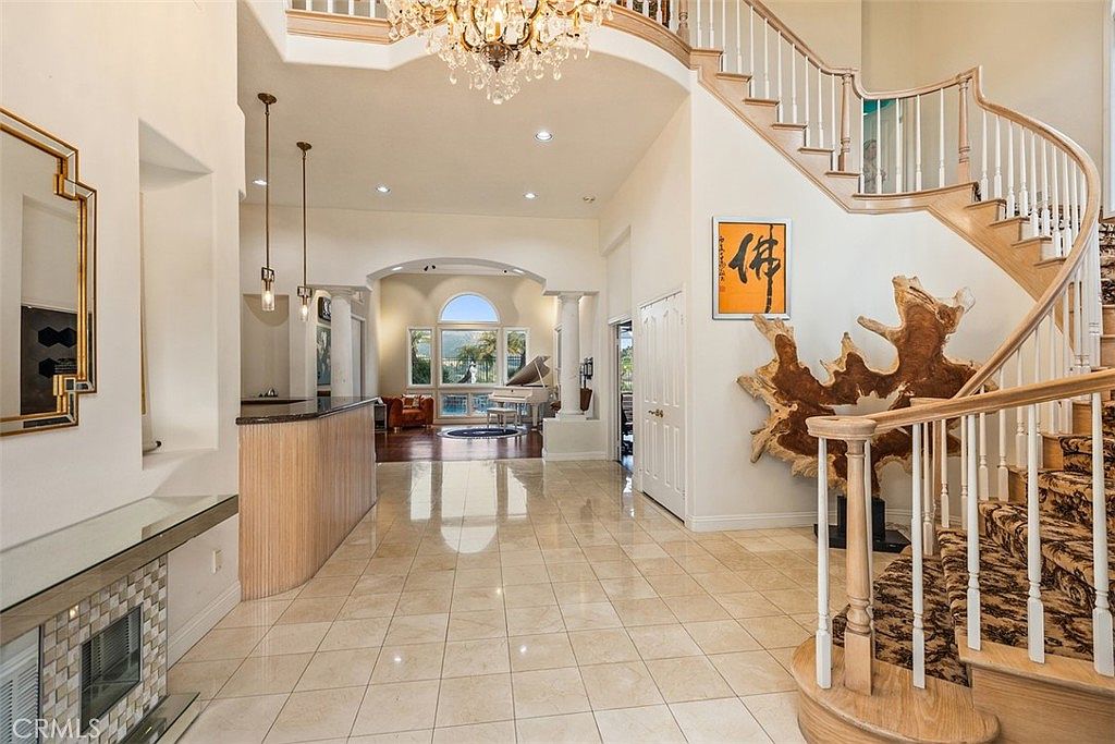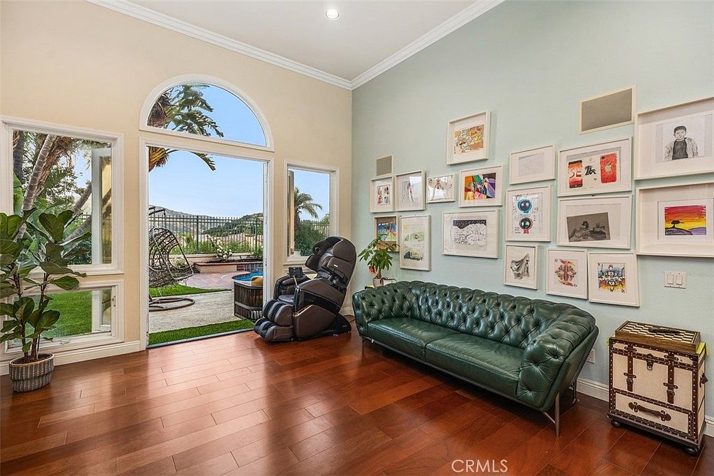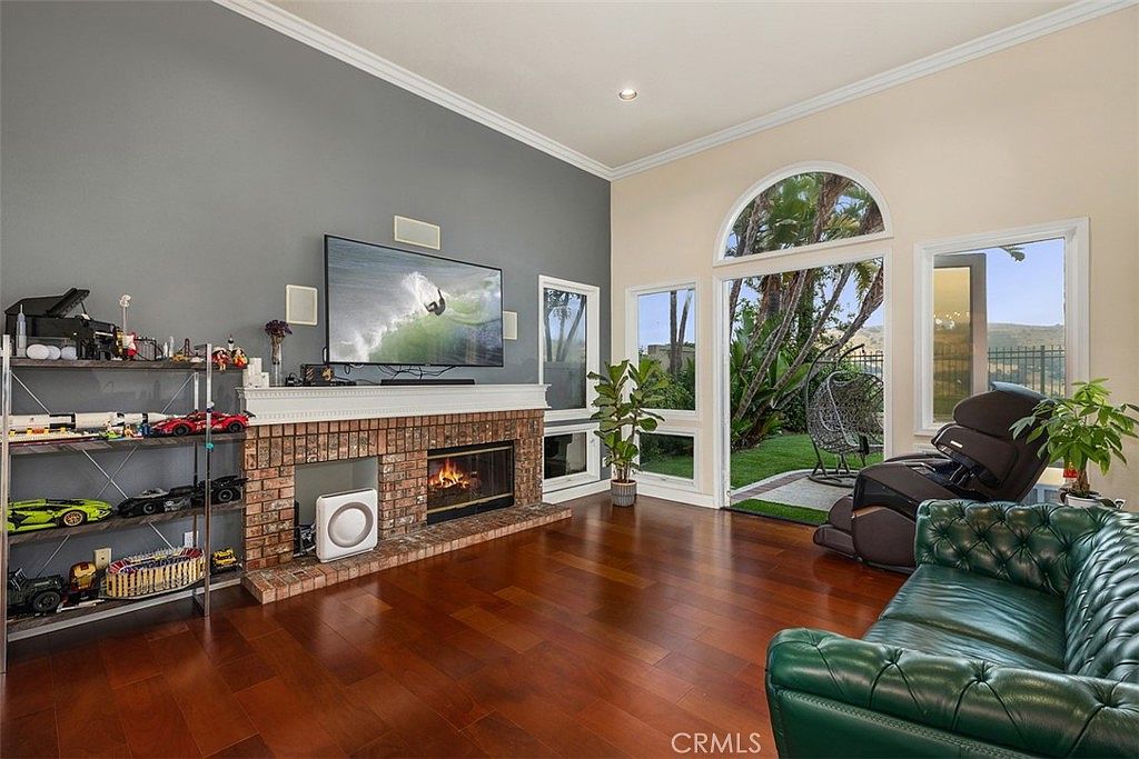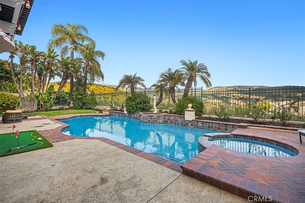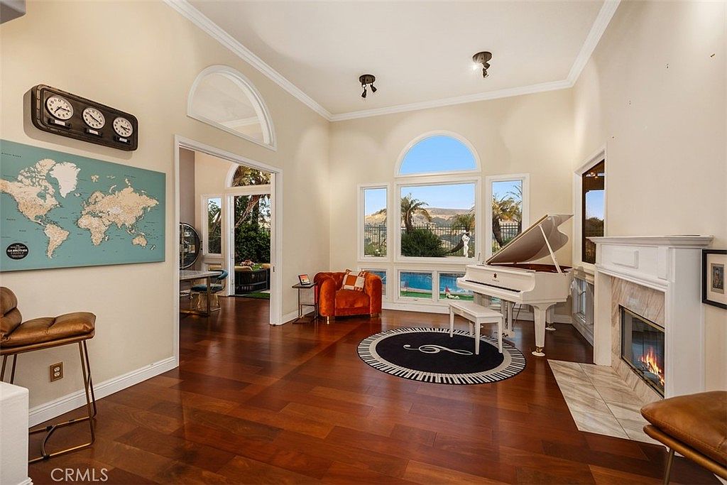 Welcome to 6 Sawmill, a luxurious home in the gated community of Dove Canyon. Enjoy breathtaking panoramic views of the golf course and mountains from the backyard and the primary suite. This home features 6 bedrooms and 4.5 bathrooms, including a main-level guest suite currently without a closet, with an en-suite bathroom. Upon entering, you are greeted by a grand foyer with soaring ceilings. The open floor plan connects to the formal living room, family room with a fireplace, and dining room with picturesque views. Entertain with ease using the built-in wet bar. The upgraded gourmet kitchen is a chef’s dream, equipped with stainless steel appliances, granite countertops, a Wolf gas cooktop, and views of the mountains. Upstairs, the expansive primary suite offers a sanctuary with its double-sided fireplace, private balcony overlooking the Saddleback Mountains, and a luxurious spa bathroom. The upper level also features four additional bedrooms, two sharing a convenient Jack-and-Jill bathroom. One of the versatile bedrooms upstairs is currently used as an office and has a loft space above the bedroom. Step outside into an entertainer's paradise! This backyard boasts a sparkling pool with panoramic mountain views, a convenient built-in BBQ, and a low-maintenance turf grass area, perfect for gatherings. For energy efficiency, enjoy leased Tesla Solar panels. **Recent updates and upgrades include** a newer water heater, newer swimming pool equipment, RH-brand lighting fixtures, and fresh wall paint, ensuring the home is move-in ready and beautifully maintained. All light fixtures have been replaced and RH brand crystal chandeliers have been chosen for the dining hall and some rooms.*** Located within a prestigious 24-hour guard-gated community, and as a resident of Dove Canyon, you’ll enjoy access to a Jr. Olympic pool, tennis courts, pickleball court, sport court, playground, and scenic trails with access to hiking, biking and horse trails. You will also have the option to join Dove Canyon Golf Club, a Jack Nicklaus Signature design with dining, wine room, gym and more.