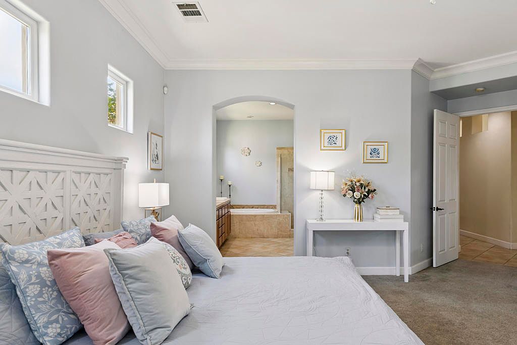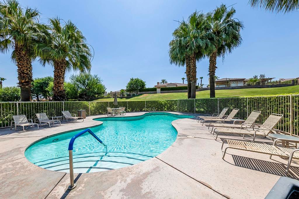 Exceptional and beautiful home located in gated Bellissimo, a nice community of 51 newer homes inside the prestigious guard-gated of Bermuda Dunes Country Club. This stunning home 3BR-3.5BA features an open floor plan designed with high ceilings and plenty of windows to illuminate with natural light. The delightful gourmet kitchen has a nice island, slab granite counters, gas cooktop, newer rangehood, and stainless fridge. Ample great room for entertaining with easy access to indoor & outdoor living. The spacious and bright master suite boast an slider door to rear patio and views. The primary bath has a large tub, a separate shower, dual vanity, travertine counters, and a large nicely organized walk-in closet. The two other bedrooms have their own bathroom. Large laundry room with cabinetry, two car garage with large space to park your truck, plus golf cart garage with separate entrance. This home has been updated with Newer Garage Door, Newer AC unit included HVAC, Newer Fridge, and Newer pipes in the kitchen. HOA for Bellissimo includes community pool & spa, landscaping front & rear yard more private and useful for your pet or doggie! Two private gates, and greenbelt picnic area. This home is connected to sewer, low electric bills with IID, cable TV, internet with Spectrum plus 24-hour guard gated security. This Gem is step to community pool for Bellissimo homeowners only. Do not miss to enjoy the Resort-style living at BELLISSIMO! CASH OFFERS ARE WELCOME!