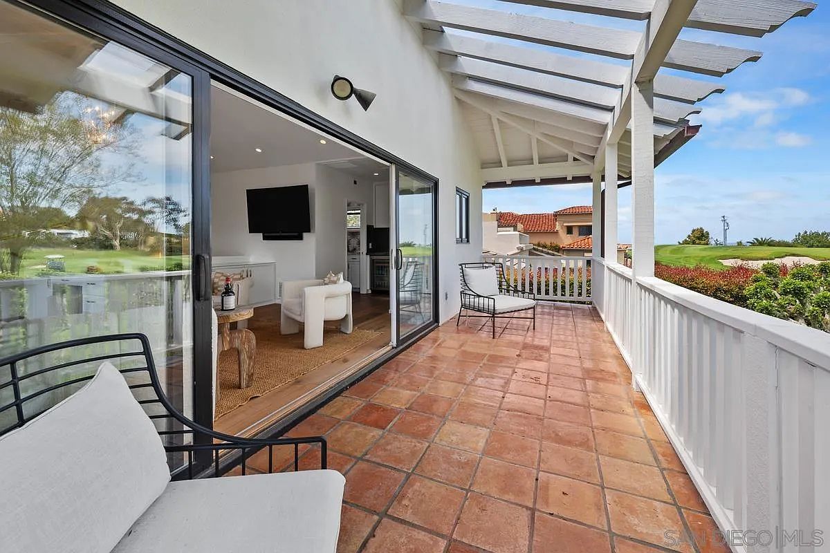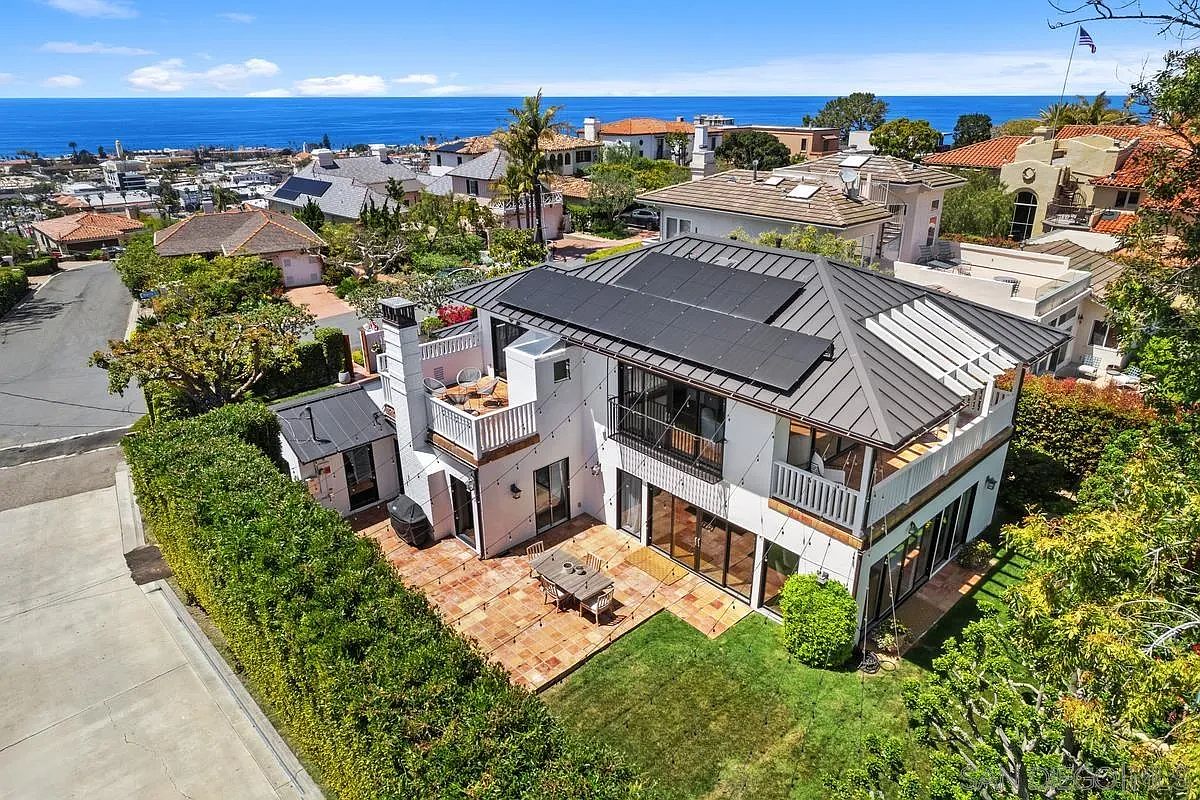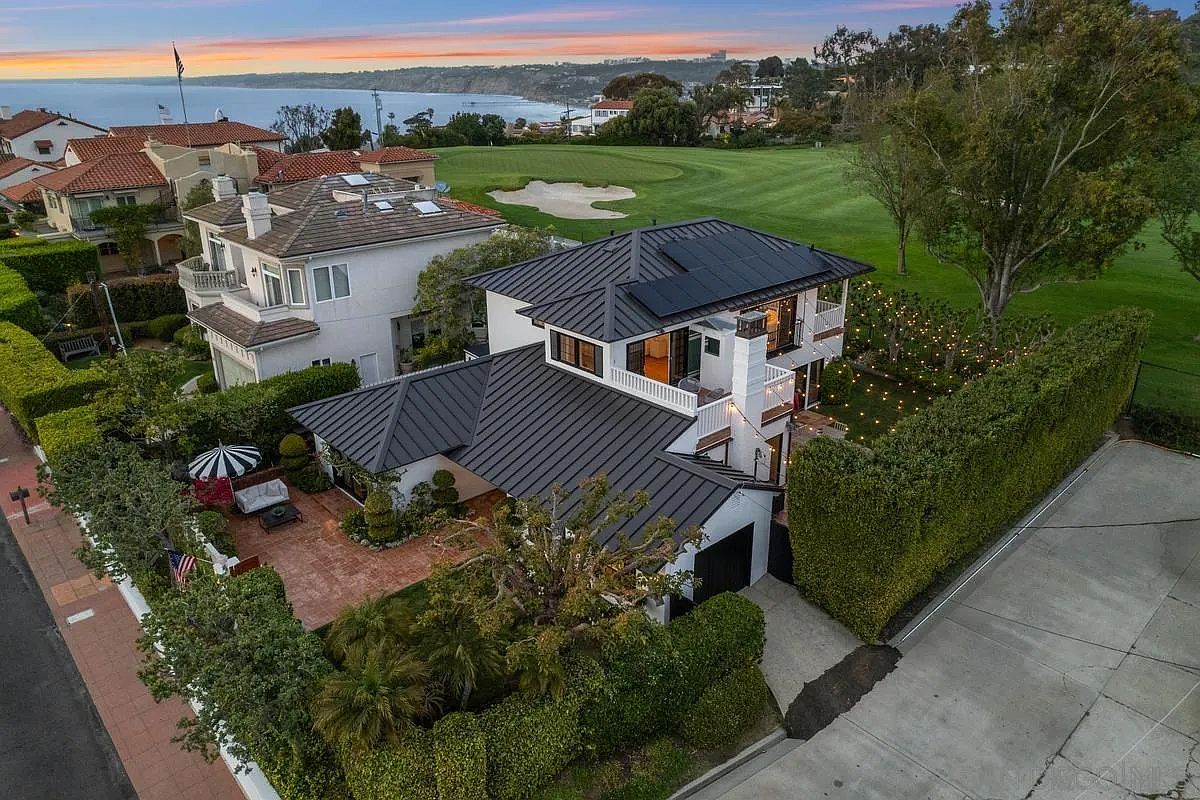 Perfectly positioned on a spacious corner lot near the village, 7505 Pepita way offers privacy, beautiful views, and easy living. This gated and hedged home sits right on the manicured La Jolla Country Club, with sliding doors and walls of glass that capture stunning golf course, hillside, and ocean views. Open, light-filled living spaces flow easily to outdoor decks, patios, and a grassy yard — perfect for entertaining or relaxing. Inside, there’s a formal living room, a large great room off the kitchen with a big island, and two generous bedrooms on the main floor, all with recently updated bathrooms. Upstairs, a private retreat includes a kitchenette, a sitting area with soaring ceilings, and a deck with ocean views and an outdoor shower. The primary suite features an updated bathroom and more amazing views. Extras include a bonus room from the converted garage, central air, lots of storage, wide plank hardwood floors, solar panels, and a new standing seam roof. This turnkey home combines comfort, style, and a prime La Jolla location.