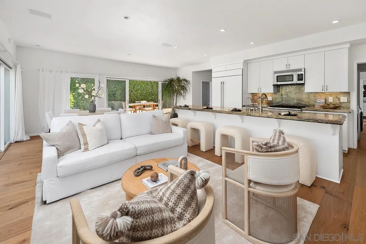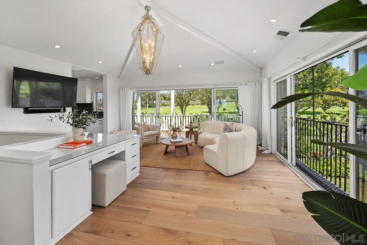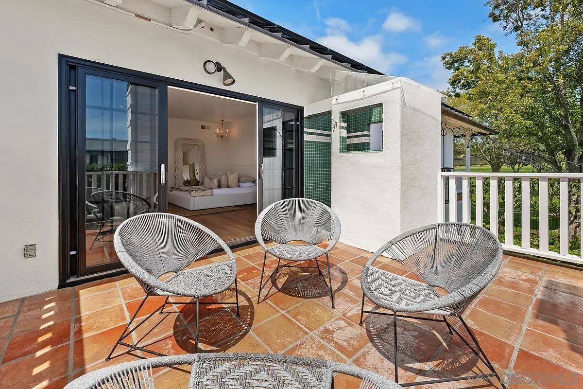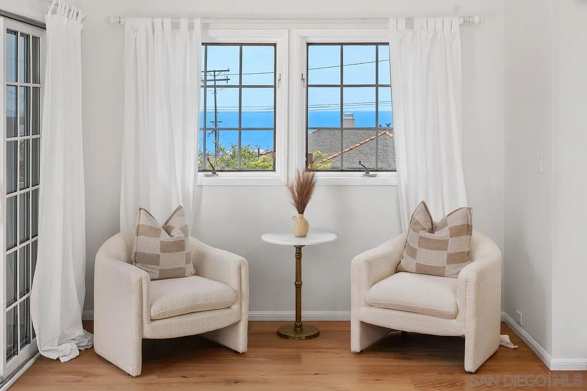 Perfectly positioned on a spacious corner lot near the village, 7505 Pepita way offers privacy, beautiful views, and easy living. This gated and hedged home sits right on the manicured La Jolla Country Club, with sliding doors and walls of glass that capture stunning golf course, hillside, and ocean views. Open, light-filled living spaces flow easily to outdoor decks, patios, and a grassy yard — perfect for entertaining or relaxing. Inside, there’s a formal living room, a large great room off the kitchen with a big island, and two generous bedrooms on the main floor, all with recently updated bathrooms. Upstairs, a private retreat includes a kitchenette, a sitting area with soaring ceilings, and a deck with ocean views and an outdoor shower. The primary suite features an updated bathroom and more amazing views. Extras include a bonus room from the converted garage, central air, lots of storage, wide plank hardwood floors, solar panels, and a new standing seam roof. This turnkey home combines comfort, style, and a prime La Jolla location.
