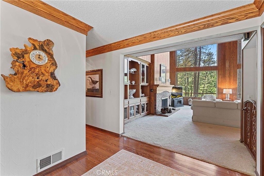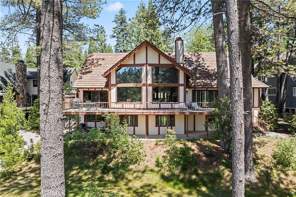 Welcome to this Beautiful and Charming Golf Course Frontage Home! This beautifully maintained 5-bedroom, 5-bathroom residence offers level entry, breathtaking golf course views, and direct course access—making it a true golfer’s paradise! Nestled in a prime location near the Lake Arrowhead Country Club, this property blends classic charm with thoughtful design details throughout. Warm wood accents, stonework, and oversized casings complement the abundance of natural light, creating a cozy yet elegant atmosphere. The main family room features vaulted, beamed ceilings and serene lake views, setting the tone for comfort and relaxation from the moment you step inside. The main level includes a spacious kitchen with adjoining dining area, a deep 2-car garage, and two generous primary en-suites. Step out onto the rear deck to soak in the unobstructed golf course views—great for morning coffee or evening gatherings. Upstairs, you'll find three additional bedrooms and a secondary living room with panoramic views of the lake fountain and #2 green—wonderful for hosting family and guests. The lower level boasts a large game room, another bedroom, a cozy living area, and a bonus room packed with entertainment options. There's also a fenced dog run and lower patio area, offering more space to enjoy outdoor living. Plenty of extra parking. Landscaped. Whether you're looking for a full-time residence or a luxurious retreat, this home offers the perfect blend of comfort, access, and the golfing lifestyle. With its premier golf course frontage and proximity to Lake Arrowhead’s best amenities, this is a rare opportunity not to be missed!