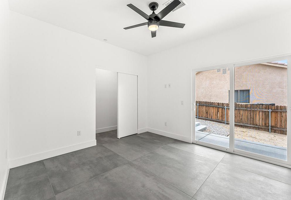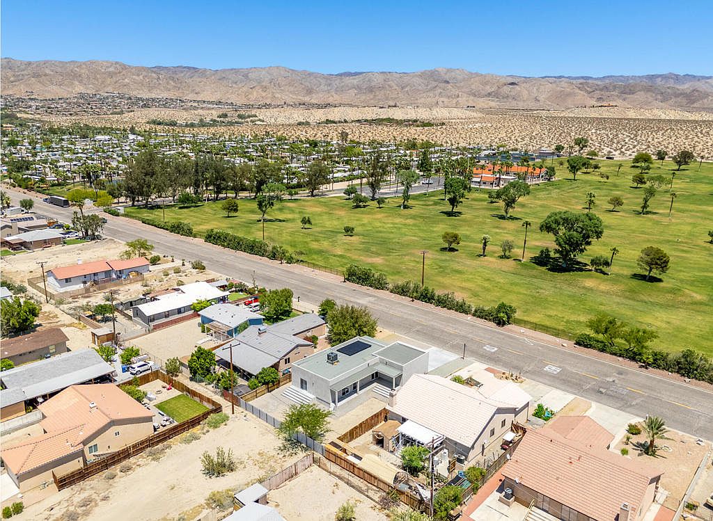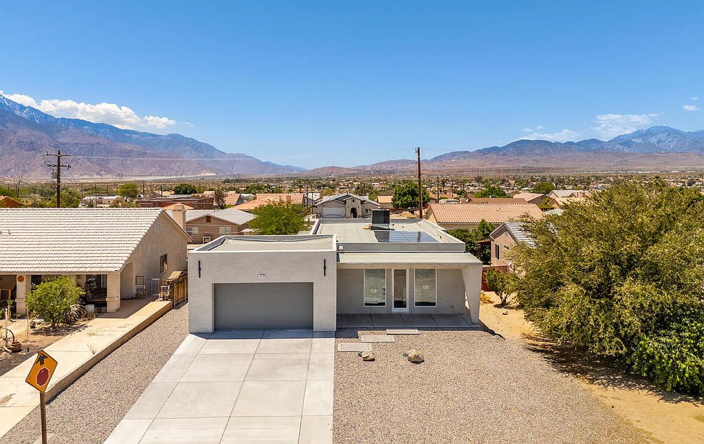 Motivated Seller Fully Owned Solar No HOA Golf Course & Mountain Views STR (Short Term Rental)-Friendly ZoningPresenting an exceptional opportunity to own a 2025 contemporary residence that masterfully combines modern efficiency, refined design, and investment potential. Set in a prime location at the entrance of Desert Hot Springs, this newly built, all-electric home offers a rare blend of privacy, style, and sustainability--just minutes from Palm Springs and the I-10 freeway.Enjoy the benefits of NO HOA fees, a fully owned solar system, and premium energy-efficient construction, all thoughtfully positioned directly across from a golf course with no front-facing neighbors. With its location in unincorporated Riverside County, the property may offer increased flexibility for short-term rental use (buyer to verify)--appealing to both full-time residents and investors seeking income-generating opportunities.Inside, the home showcases a sleek, open-concept layout anchored by large-format tile flooring throughout. The designer kitchen features flat-panel cabinetry, an oversized waterfall quartz island, stainless steel appliances, and a walk-in pantry--perfect for everyday living or entertaining.Each of the three bedrooms offers direct outdoor access through sliding glass doors that frame unobstructed views of the surrounding mountains, creating a seamless connection between indoor comfort and natural beauty. The bathrooms are finished with frameless glass walk-in showers and floating vanities, evoking a clean, spa-like aesthetic.The backyard delivers both functionality and design, with poured concrete steps and expansive hardscaping--ideal for outdoor gatherings or future enhancements. A wide driveway and a fully finished two-car garage complete the offering.This is a thoughtfully crafted, move-in-ready home in a scenic and STR-eligible area of the Coachella Valley. With architectural style, energy independence, and income potential, this property checks all the right boxes.Contact us today to schedule your private showing.