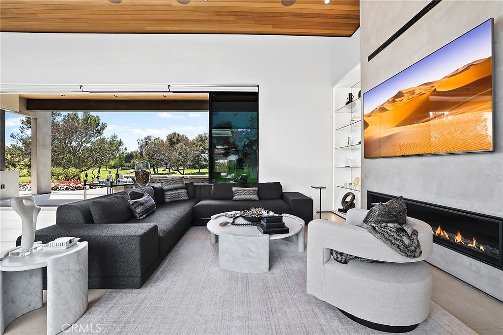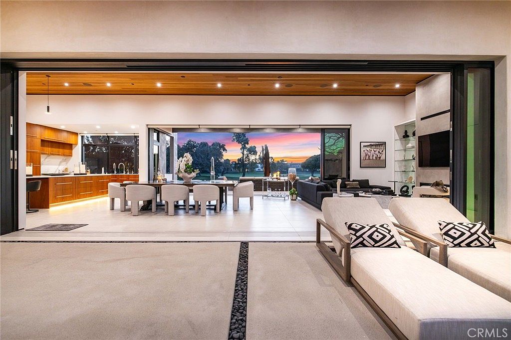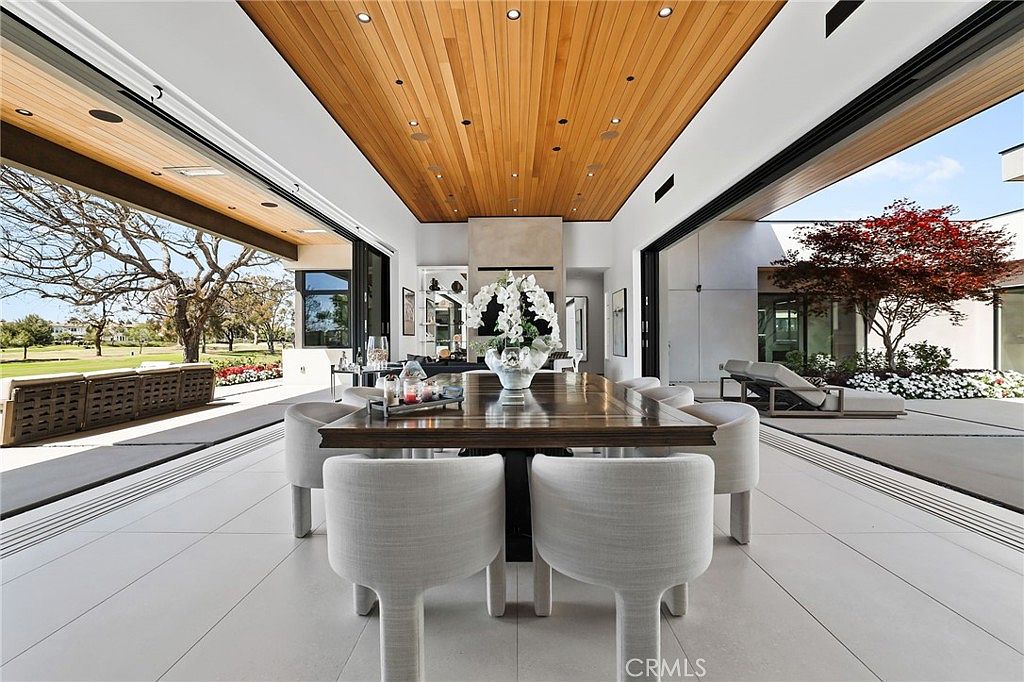 From 14-foot ceilings in the great room, expansive 30-foot sliding glass walls, and a central courtyard that invites natural light, peaceful water sounds, to golf course views into the heart of the home. Every inch of this residence was touched by artisans—from the hand-crafted walnut kitchen cabinets with continuous floor-to-ceiling grain, to the seamless integration of nature and architecture that turns every window into a framed work of art.
