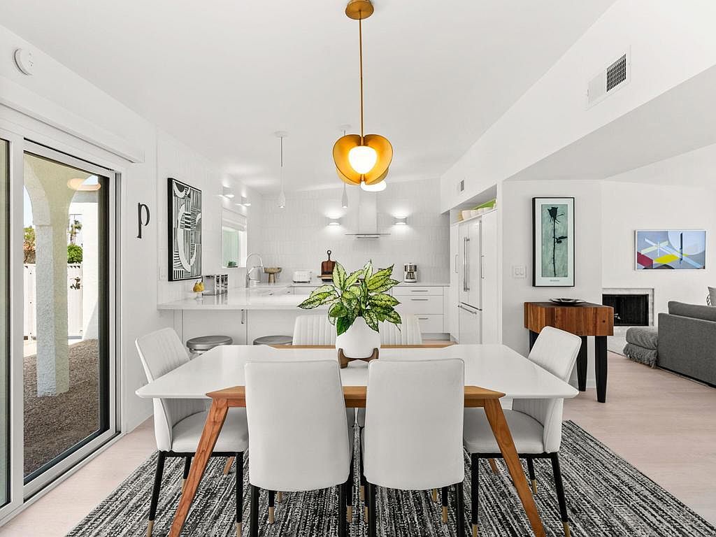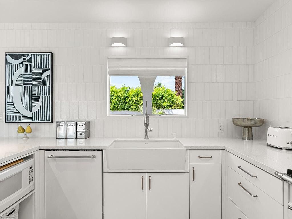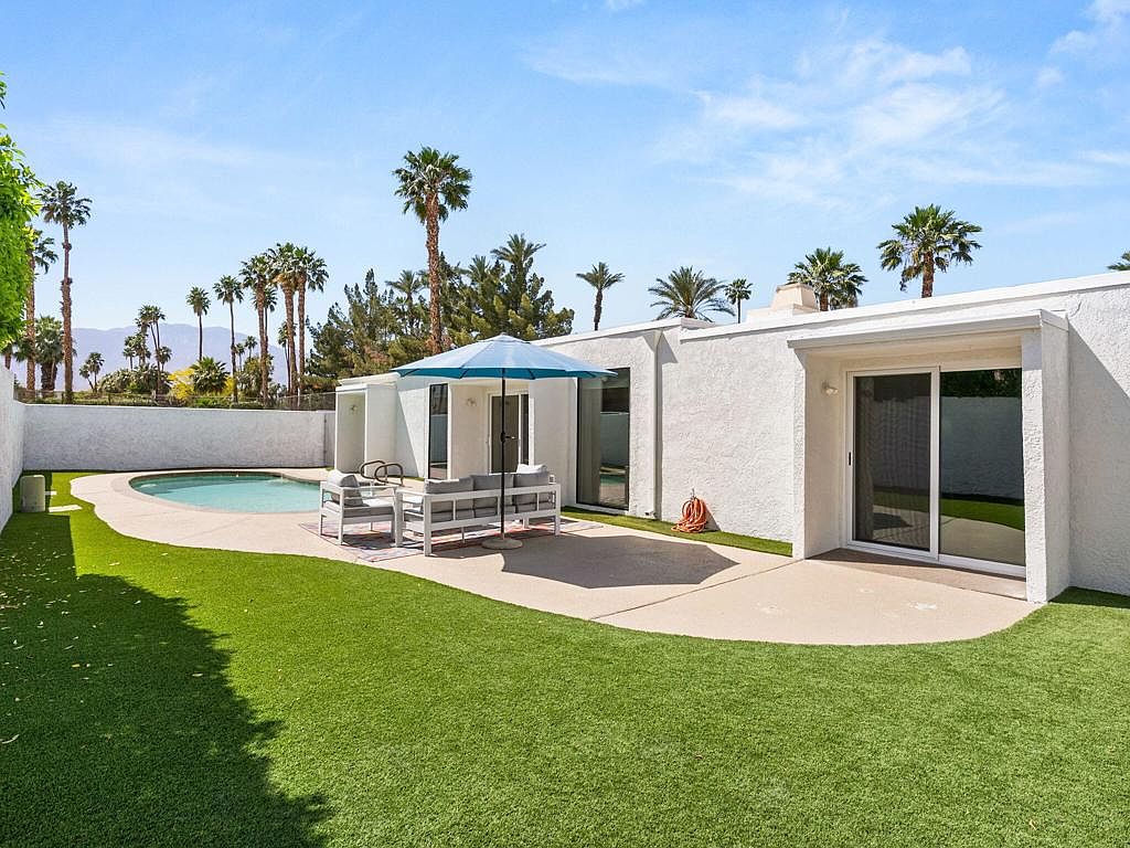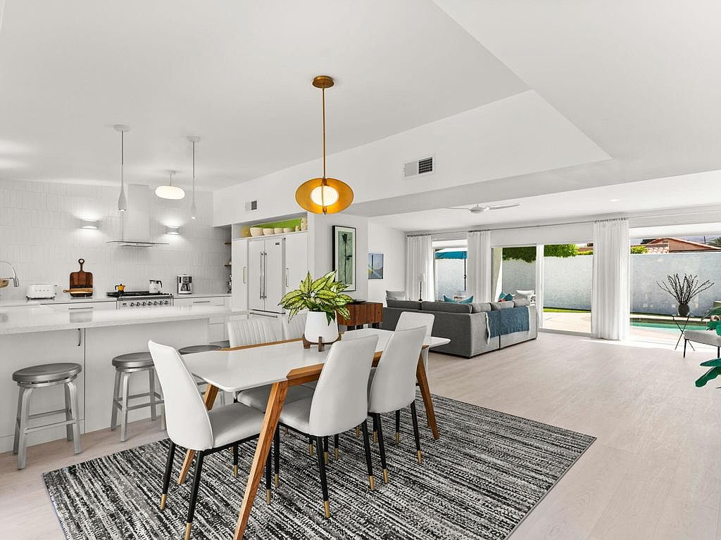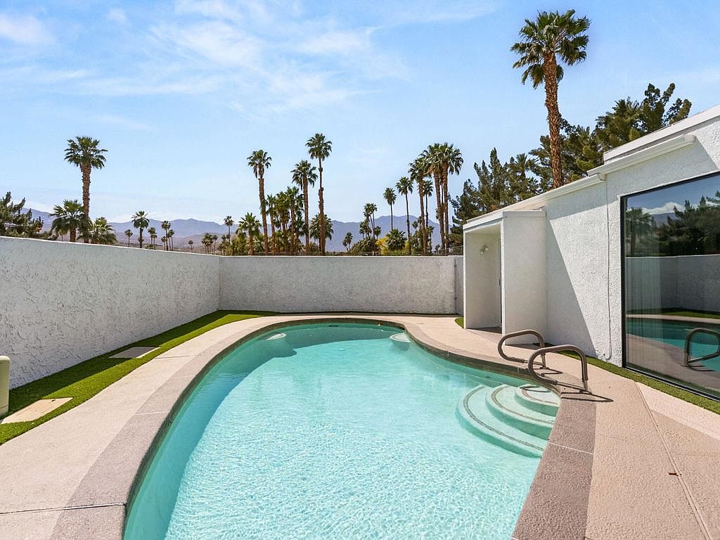 This south-facing, Mid-Century Modern-inspired home in the coveted Tamarisk area of Rancho Mirage has been impeccably maintained and thoughtfully upgraded. Since taking ownership, the current owners have completed a series of enhancements: a full kitchen remodel and reconfiguration featuring high-end Italian appliances, new quartz countertops, new cabinetry, and decorative tiled walls; installation of gorgeous new flooring throughout; upgraded interior lighting with most fixtures on dimmers; installation of five double-paned sliding glass doors along with multiple new window treatments; a new electrical panel; redesign of all bathrooms with new vanities, toilets, showers, fixtures, and exhaust fans, and fresh interior and exterior paint. The residence offers sweeping mountain vistas that can be enjoyed from both inside and out, an open-concept design, abundant natural light, and low-maintenance living with professionally installed desert scape and turf -- ideal for either full-time or seasonal enjoyment. The historic Tamarisk area is celebrated for its notable architecture, relaxed lifestyle, and proximity to Tamarisk Country Club along with a variety of dining and shopping options.