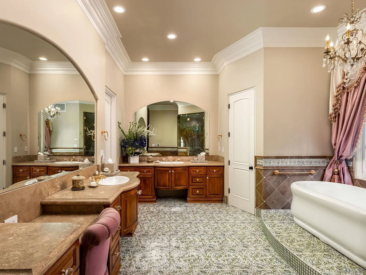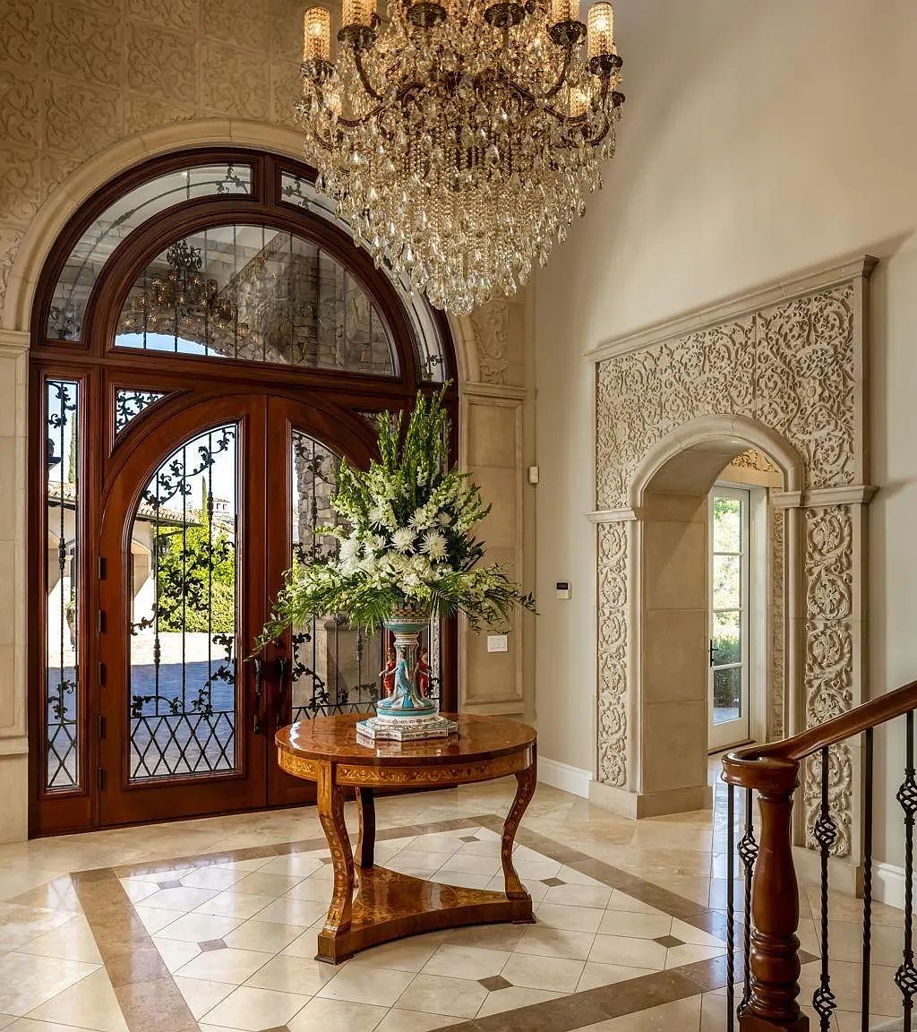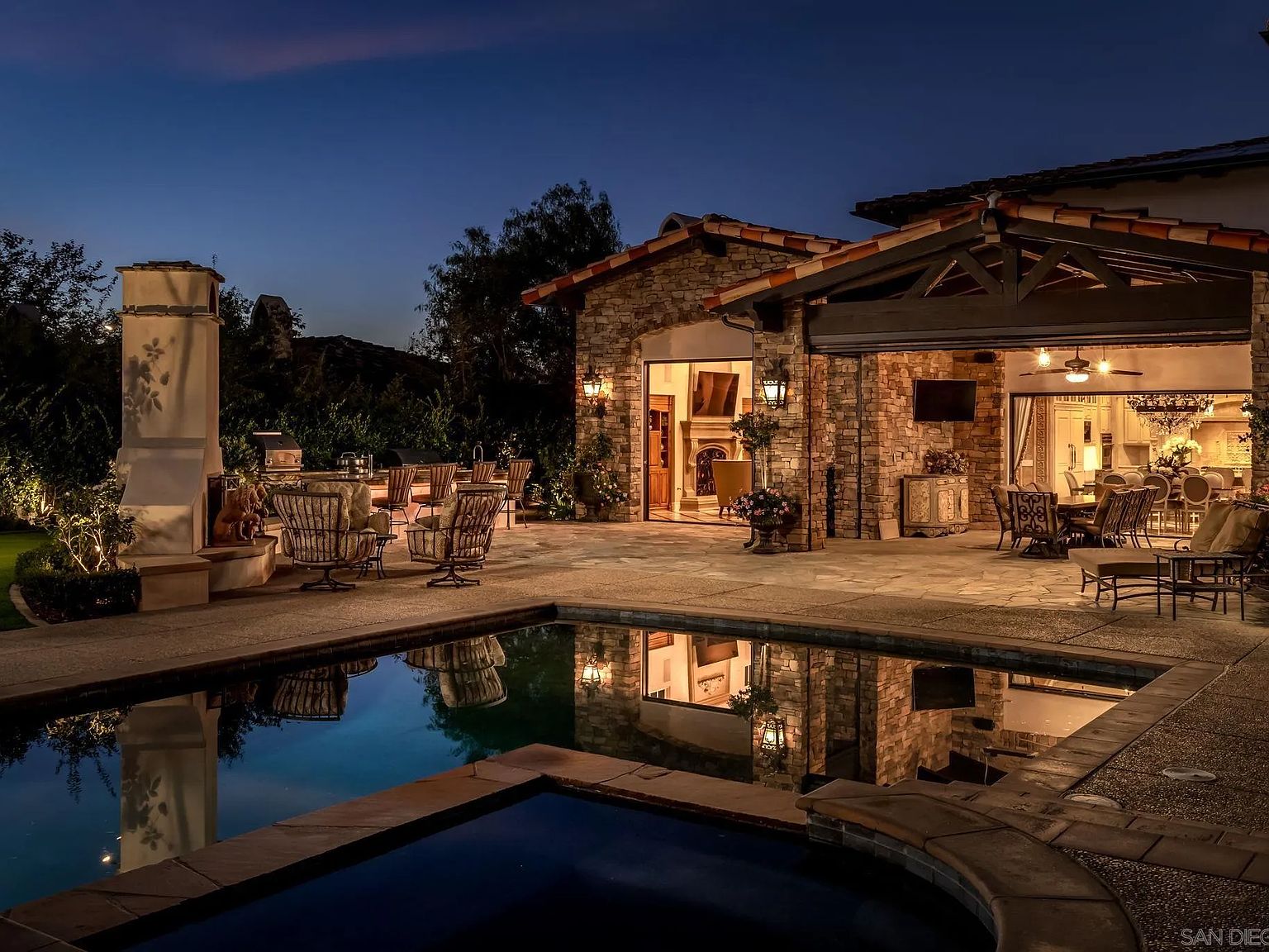 Stunning Estate with Impeccable Upgrades and Timeless Elegance! Hand-cut Italian cobblestone driveway, Venetian stone details, wood in-laid floors, Lacanche 8-burner range, 4 ovens, 2 d/w, and sub-zero frig & freezer. Spiral staircase in bar leads to paneled library w/secret door to cozy guest room. Silk wallpaper, infra-red sauna/steam shower, heated floors, hand-painted Italian tiles, 5 fireplaces, gym, 2 bars, theater and Schonbek & custom chandeliers throughout the home. Roger Rowe Elementary district Exterior is adorned w/Venetian plaster & stone detailing, custom lighting, Koi pond, waterfall, and stunning entry door by Grand Entrances. La Cantina sliding doors open to a large back yard w/putting green, fireplace, pool, spa, 2 firepits, full outdoor kitchen, courtyards, dry sauna, mature fruit trees, herb garden & rooftop solar. Front yard expanded to provide additional landscaping, parking & a beautiful Guest House w/custom Grand Entrances door, La Cornue range, sub-zero frig/freezer, laundry & add'l 2.5 car garage.
