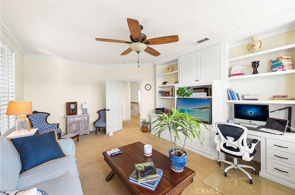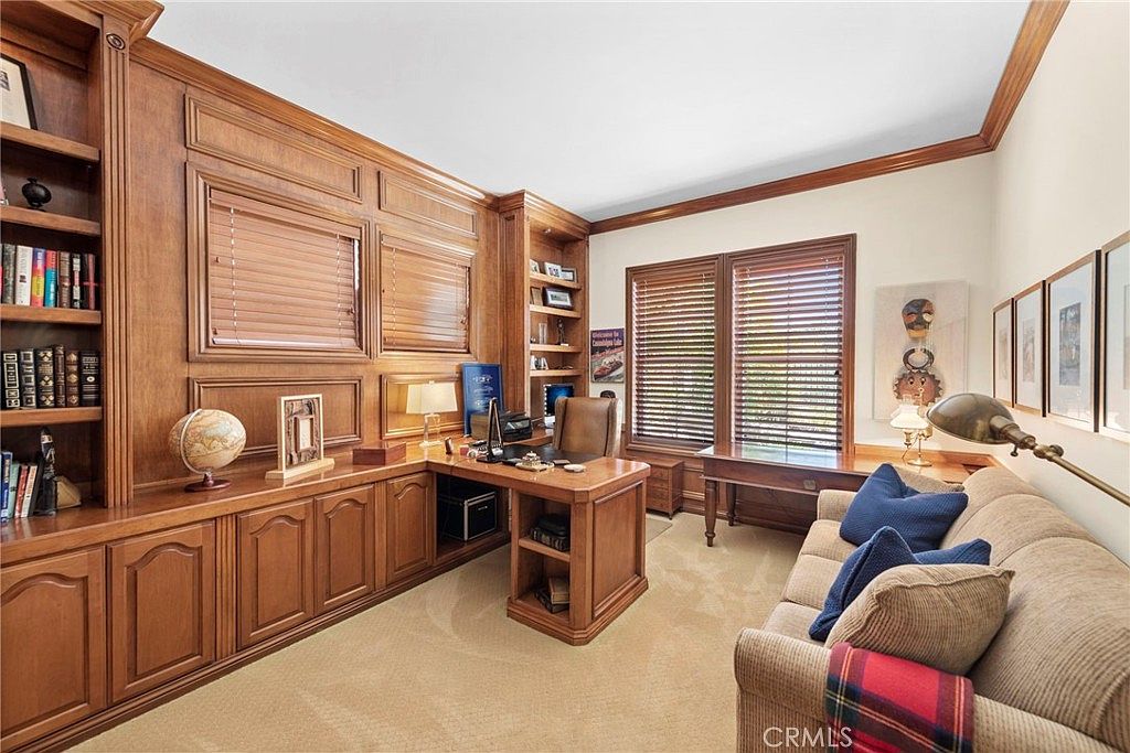Tucked within the rolling hills of Coto de Caza, 58 Downfield is a timeless 5-bedroom, 4-bath executive home with approximately 3,455 sq. ft. of thoughtfully designed living space—where every room tells a story of craftsmanship, comfort, and California elegance. From the moment you enter, custom woodwork, wide-plank flooring, and sunlit spaces invite you into a home that balances warmth and sophistication. The chef’s kitchen, outfitted with GE Monogram appliances, quartz countertops, a walk-in pantry, beverage cooler, and wine fridge, flows effortlessly into the heart of the home, where gatherings unfold beside a distinctive two-sided see-through fireplace connecting the formal dining room and family room. The main floor features a versatile bedroom currently styled as a private home office—perfect for today’s flexible lifestyle. Upstairs, a spacious bonus room with built-ins offers additional sleeping space or flex use, while the detached casita provides a fifth private bedroom option—ideal for guests, hobbies, or multigenerational living. The primary bedroom suite serves as a tranquil retreat with an updated en-suite bath, and the beautifully landscaped backyard beckons with a stylish pool, spa, firepit, built-in BBQ, mature lemon trees, and a tree-lined lot for privacy. Additional upgrades include a generous laundry room with sink, invisible screens, designer window treatments, a 3-car garage with epoxy floors and upgraded opener, and recent mechanical improvements including a new water heater and pool pump motor. Located in one of Orange County’s most coveted guard-gated communities—with access to golf, equestrian facilities, scenic trails, and award-winning schools—this is more than a home; it’s a lifestyle waiting to be embraced.