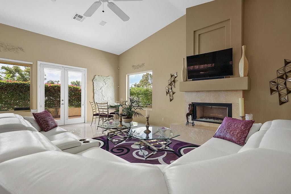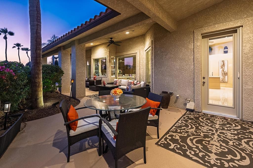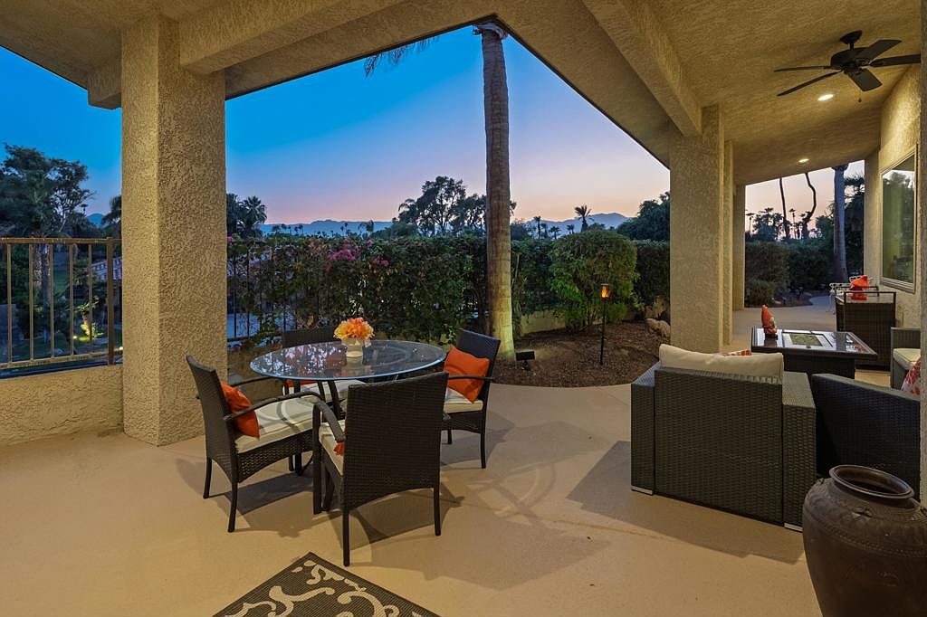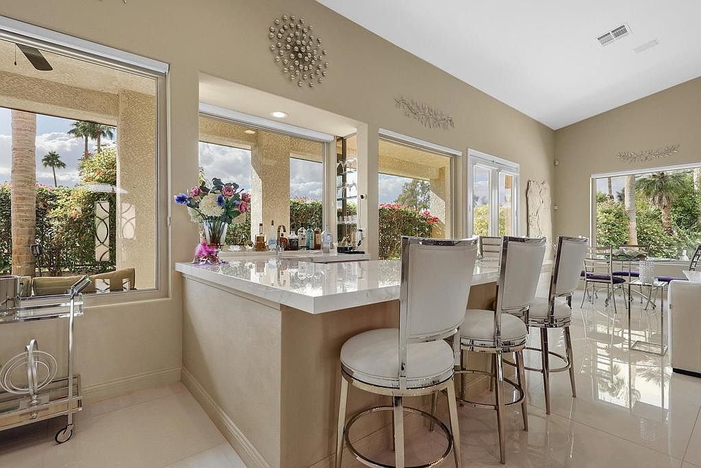 SELLER FINANCING 4.75% INTEREST This hidden gem is situated in Castle Harbour, an exclusive enclave of just 28 custom homes within the prestigious Bermuda Dunes Golf & Country Club. This remarkable 4-bedroom, 3.5-bath, 3,978 sq. ft. residence blends timeless elegance with modern sophistication. Double-gated for maximum privacy and security, the property showcases sweeping mountain views and is presented in pristine, move-in ready condition following an extensive, high-end remodel.Step inside to find a bright, open floor plan featuring top-of-the-line 32 inch porcelain tile flooring, designer porcelain countertops, and Low-E windows that frame the stunning surroundings while enhancing energy efficiency. The chef's kitchen has been fully updated with new plumbing, electrical, and premium white appliances, complemented by an ice maker and wine cooler in the entertainer's wet bar.The primary suite is a true retreat, boasting new carpet, a spacious walk-in closet, and a mini-split A/C unit for personalized comfort. All bathrooms are beautifully appointed, and additional upgrades include LED recessed lighting, a new water heater, epoxy-coated garage flooring, and built-in laundry room cabinetry with slide-out drawers.Outdoor living is equally impressive with refinished Kool Decking, a built-in BBQ island, fresh exterior paint, and a newly resurfaced pool and spa with updated pump motor.This home offers the ultimate in desert luxury living, combining the privacy of a boutique community with the amenities of a world-class country club.Offered in impeccable condition - ready for you to move in and start enjoying the Bermuda Dunes Country Club lifestyle. Beautifully appointed with designer furnishings, included per inventory