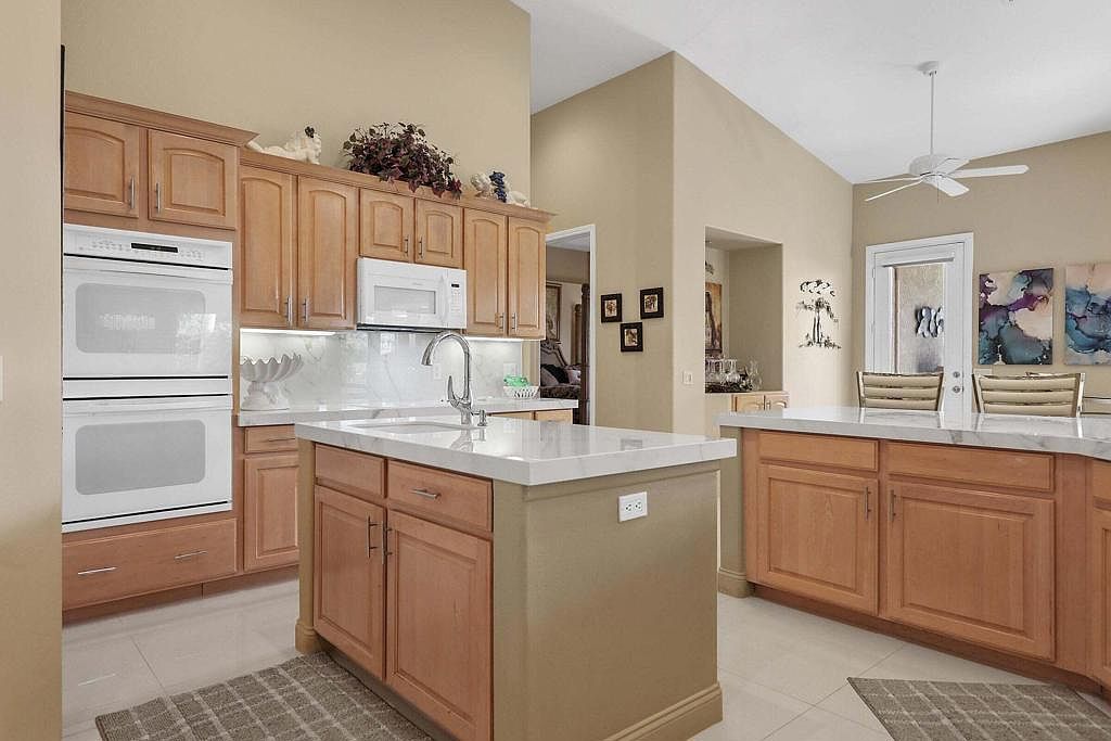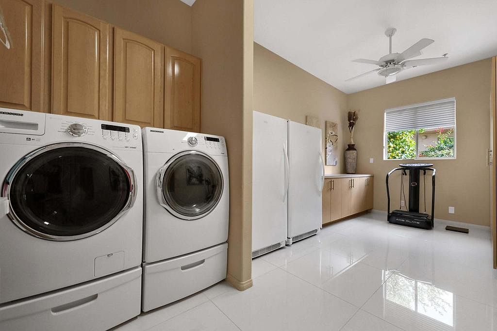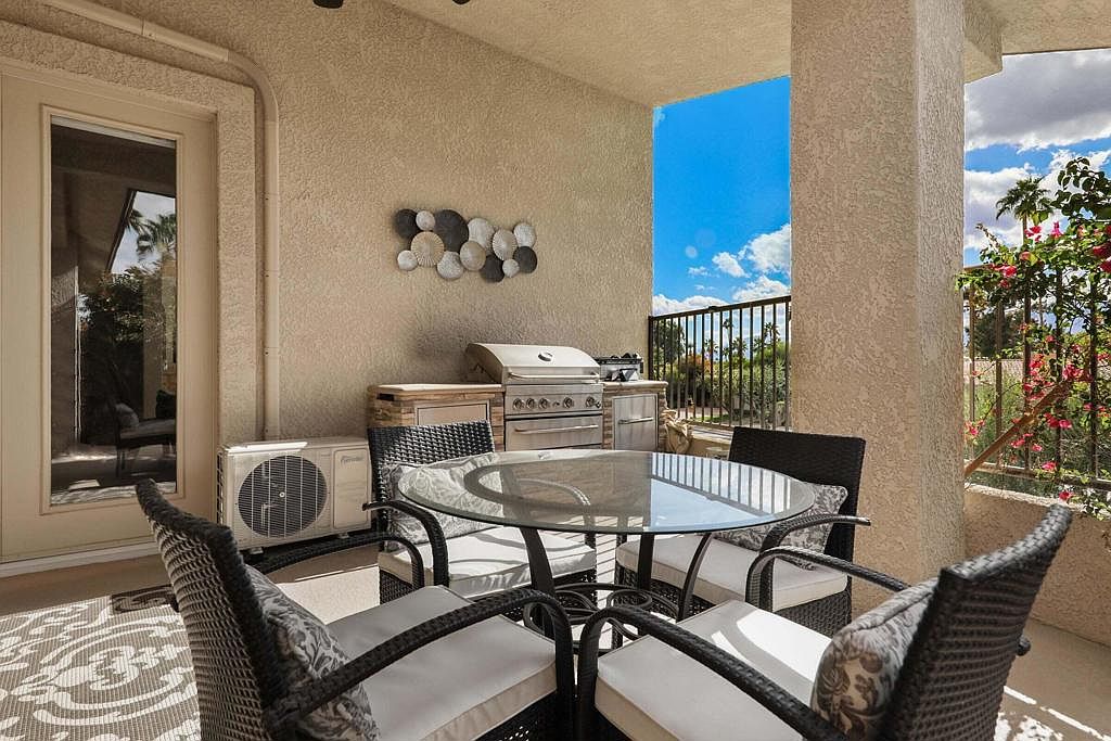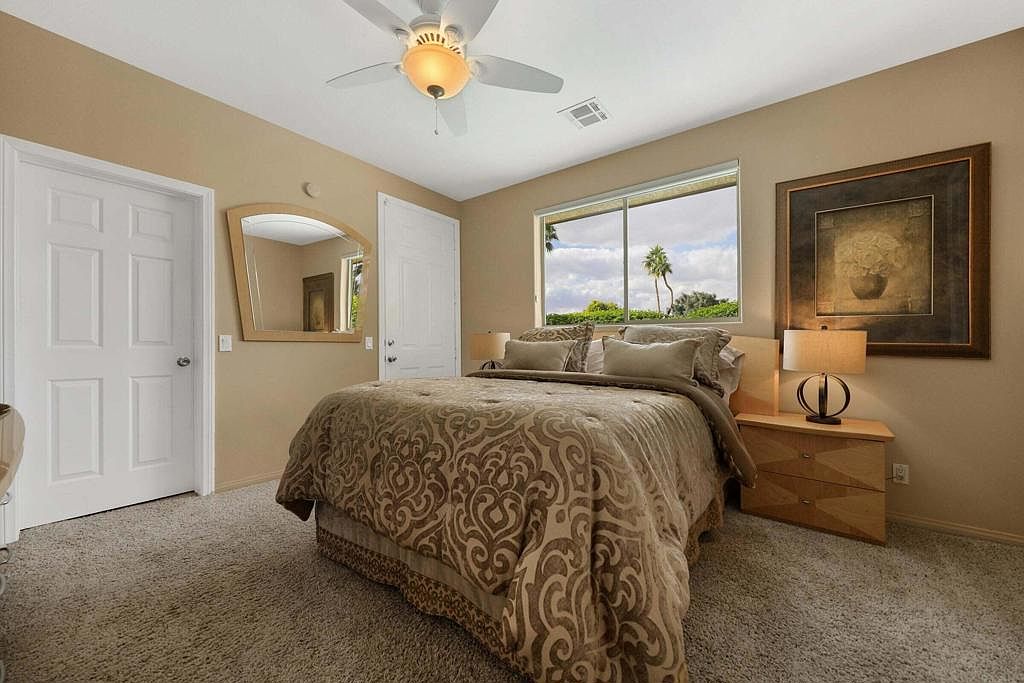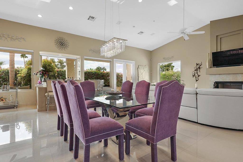 SELLER FINANCING 4.75% INTEREST This hidden gem is situated in Castle Harbour, an exclusive enclave of just 28 custom homes within the prestigious Bermuda Dunes Golf & Country Club. This remarkable 4-bedroom, 3.5-bath, 3,978 sq. ft. residence blends timeless elegance with modern sophistication. Double-gated for maximum privacy and security, the property showcases sweeping mountain views and is presented in pristine, move-in ready condition following an extensive, high-end remodel.Step inside to find a bright, open floor plan featuring top-of-the-line 32 inch porcelain tile flooring, designer porcelain countertops, and Low-E windows that frame the stunning surroundings while enhancing energy efficiency. The chef's kitchen has been fully updated with new plumbing, electrical, and premium white appliances, complemented by an ice maker and wine cooler in the entertainer's wet bar.The primary suite is a true retreat, boasting new carpet, a spacious walk-in closet, and a mini-split A/C unit for personalized comfort. All bathrooms are beautifully appointed, and additional upgrades include LED recessed lighting, a new water heater, epoxy-coated garage flooring, and built-in laundry room cabinetry with slide-out drawers.Outdoor living is equally impressive with refinished Kool Decking, a built-in BBQ island, fresh exterior paint, and a newly resurfaced pool and spa with updated pump motor.This home offers the ultimate in desert luxury living, combining the privacy of a boutique community with the amenities of a world-class country club.Offered in impeccable condition - ready for you to move in and start enjoying the Bermuda Dunes Country Club lifestyle. Beautifully appointed with designer furnishings, included per inventory