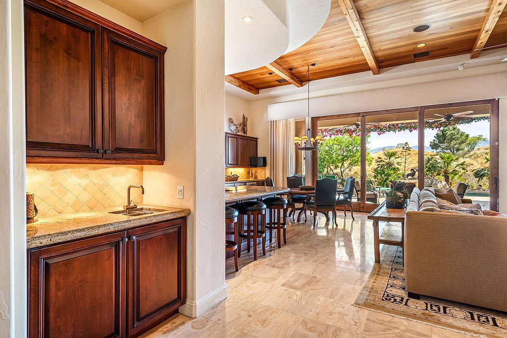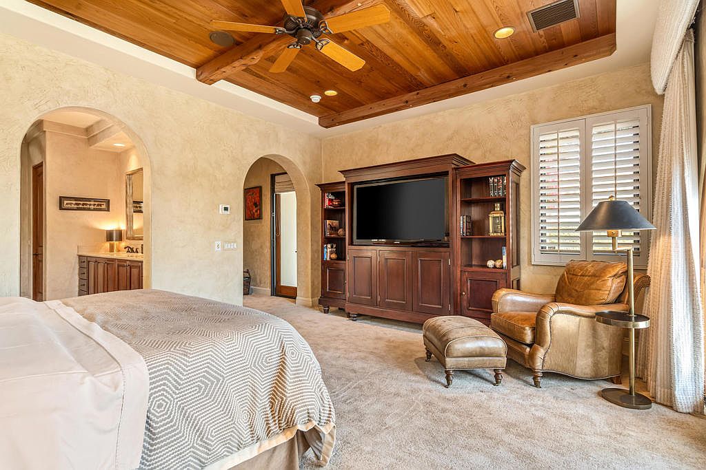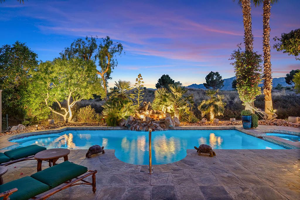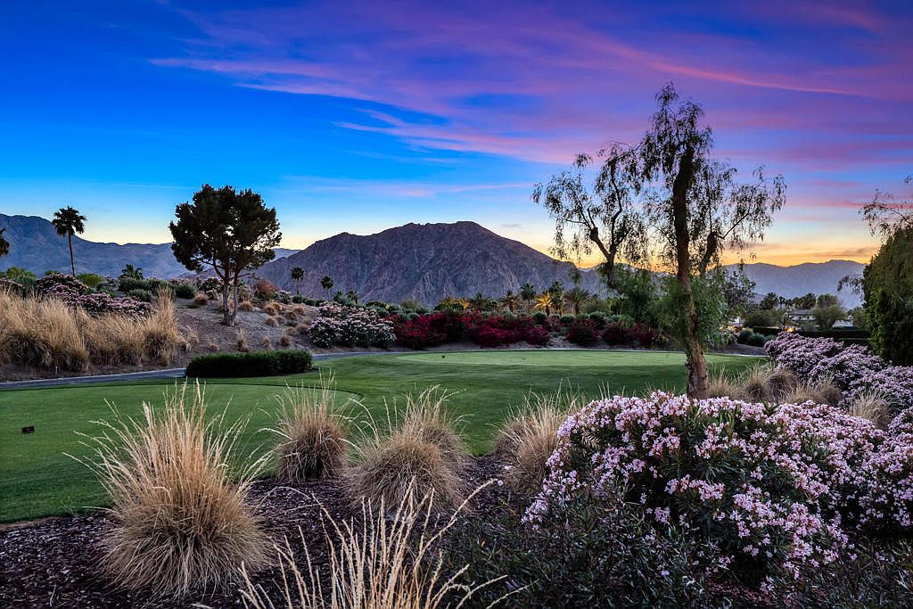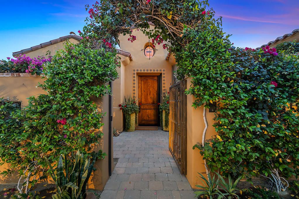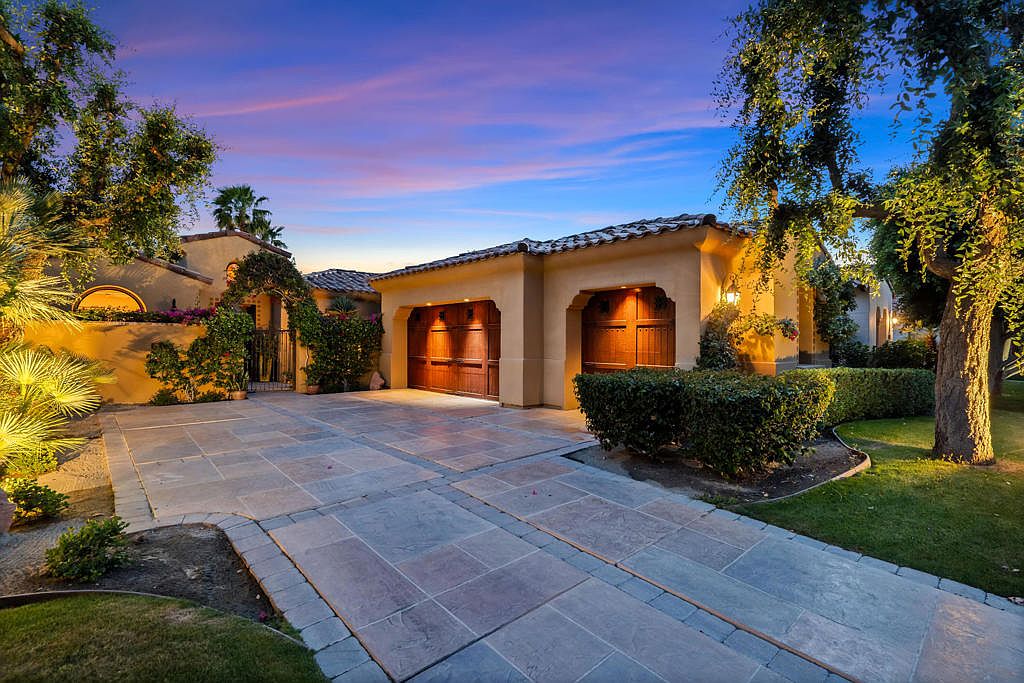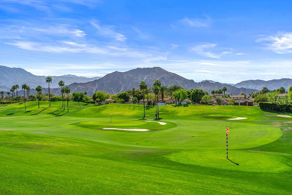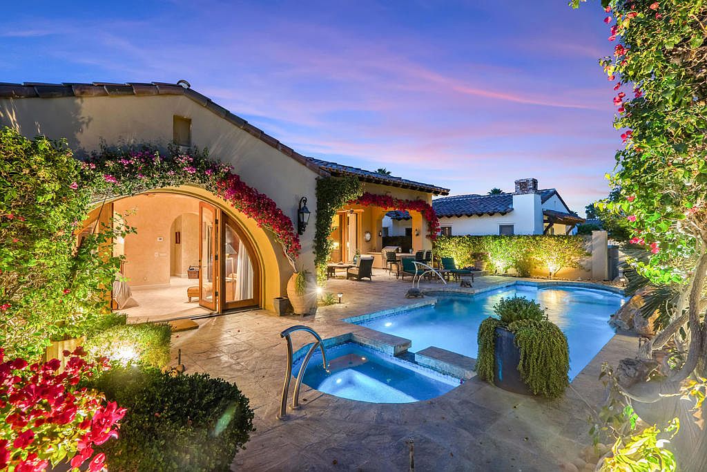 Desert Golf Lifestyle Living at Its Finest in Your Private Oasis at The HideawayDiscover the ultimate in desert luxury with this exceptional Plan 2 Villa offering 2,900 sq ft of refined living within the prestigious, guard-gated Hideaway Golf Club--an exclusive enclave celebrated for its world-class golf, privacy, and architectural sophistication. Perfectly situated just steps from the driving range and putting green, this is a rare opportunity to own one of the best-priced grand homes in the community. The lush desert landscaping enhances privacy and creates a serene, secluded retreat. Tastefully updated and professionally maintained, the home overlooks the 5th Hole of the Clive Clark Golf Course with sweeping mountain and fairway views. Featuring 3 bedrooms and 3.5 baths plus a dedicated den/office, this thoughtfully designed residence blends luxury and comfort. The oversized chef's kitchen impresses with Wolf commercial-grade appliances, Sub-Zero refrigerator, wine fridge, granite countertops, and custom cabinetry. Step through a charming courtyard into a dramatic open-concept living space highlighted by polished wood plank, peg-and-beam artisan ceilings, hand-carved architectural doors, a limestone-surround fireplace, and a built-in media center. Expansive 14' Fleetwood sliding doors open to a newly renovated pebble-finish pool and spa with waterfall fountain and a outdoor kitchen--ideal for entertaining beneath the desert stars. Exquisite finishes include limestone, marble, and stone flooring, designer carpet in the bedrooms, and meticulous craftsmanship throughout. The luxurious primary suite offers direct pool and spa access, creating a true resort-style experience. Complete with a 2-car garage plus golf cart parking and offered fully furnished, this one-of-a-kind Villa is the epitome of desert golf lifestyle living--where timeless elegance meets breathtaking views in your own private oasis.