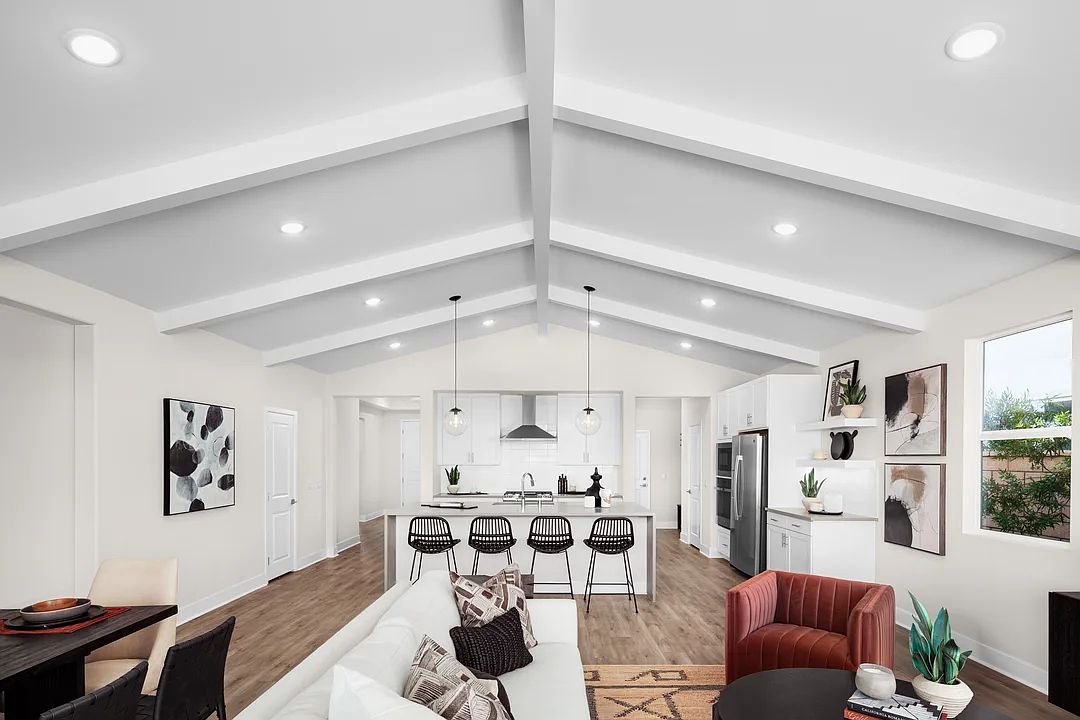 Modern, open-concept great room and dining area.