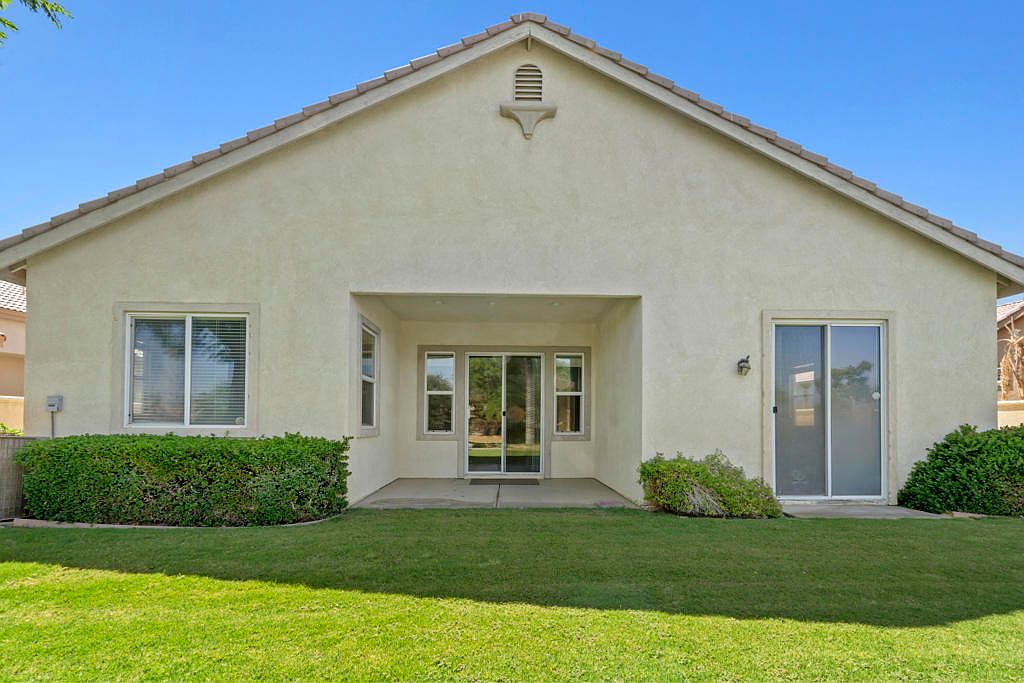 Beautiful golf course home with detached casita within the gated community of Indian Palms Country Club. Granite counters, open floor plan, large kitchen. 3 bedrooms plus den/4th bedroom - very accomodating for guests. True master suite includes large bath with oval tub and separate walk-in shower. It has 8' interior doors, 10' ceilings, and 16' entry ceiling. Casita has a private entrance and full bath. Low HOA dues include landscape and guard gated access. There are 3 pools, tennis and pickleball courts, bocce ball court, gym, and classes offered at the clubhouse. Enjoy the polo grounds, Coachella Music Festival, and Stagecoach just blocks away. Newly carpeted and ready to make this home your own.