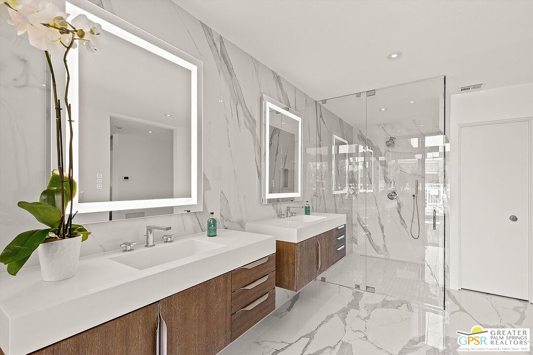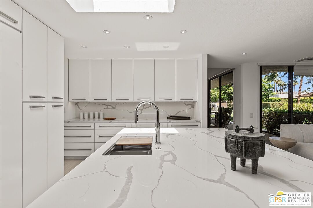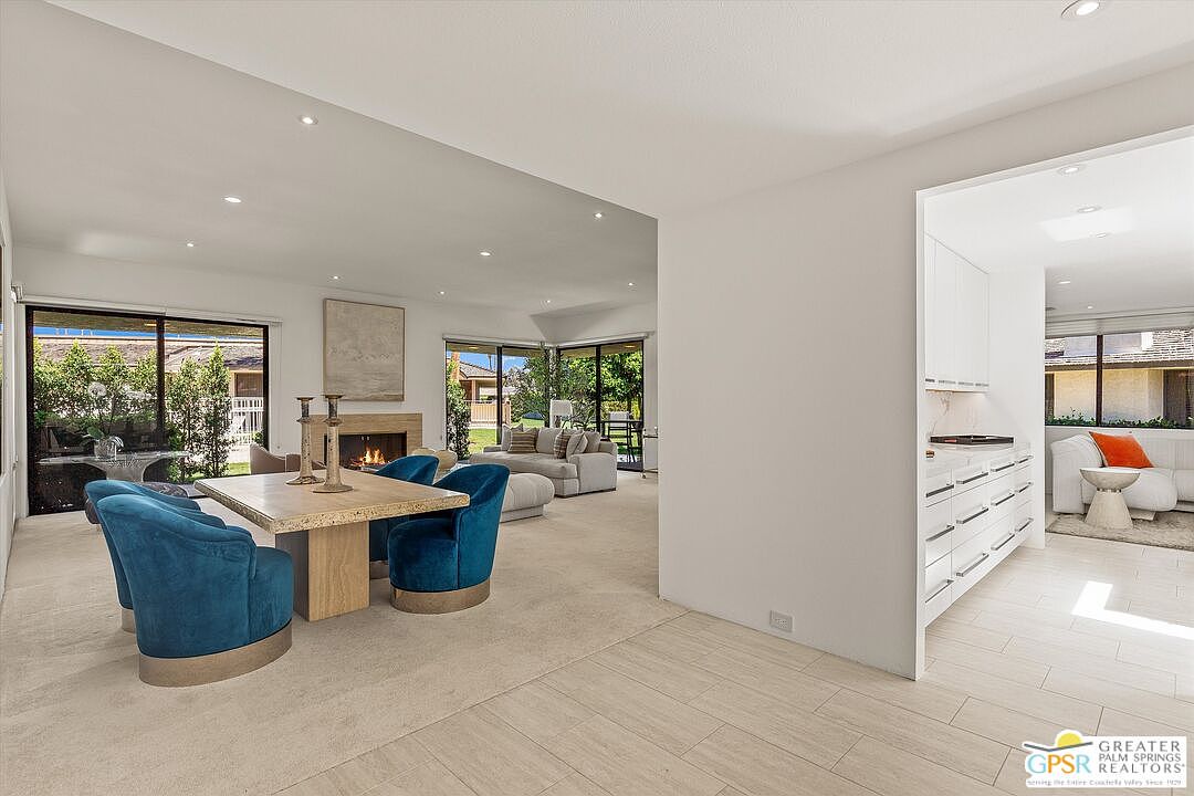 Thoughtfully remodeled, READY NOW to occupy and enjoy in time for season! Perfect for a truly carefree lifestyle in this highly upgraded low-maintenance residence with highly desirable details that exudes luxury and refinement. Nestled within the tranquil inner sanctuary of The Springs Country Club away from traffic, this highly sought after Shaughnessy THREE-Suite floor plan offers truly sophisticated living. This meticulously remodeled 2,950-square-foot residence is a haven of modern comfort and style. Savor mountain vistas from your prime cul-de-sac location near the spectacular 48,000 sf Clubhouse renovated in 2021. The living room, with welcoming marble fireplace and expansive ten-foot ceilings has an adjacent full wall wet bar creates an atmosphere perfect for entertaining. The gourmet kitchen with lounge and center skylit breakfast Island is a culinary enthusiast's delight, showcasing high-end Fisher & Paykel appliances: a 30-inch column refrigerator and freezer, a five-burner stove with griddle and dual ovens, and a dual-drawer dishwasher. Solid quartz countertops and backsplashes lend an air of elegance. Plus, the residence features Kohler's top-tier fixtures throughout. The principal primary bathroom is a highlight, with custom quartz sinks, a freestanding Kohler Garden tub, and an electronic bidet. Enjoy separated dual primary suites plus a guest suite/media room/home office just off the foyer. All bathrooms are equipped with adjustable LED lighting, anti-fog mirrors, and Hunter Douglas shades for added privacy. All bedrooms comfortably accommodate king-sized beds. Completing this exceptional desert residence is an oversized three-car garage with storage. This is a rare opportunity to own this truly remarkable home. Private outdoor living awaits you in the Tuscan-inspired 20x25 courtyard, ideal for sunbathing, a safe haven for pets or a future spa/pool. Maximize your budget with the adjacent HOA-maintained pool/spa, a valuable amenity included at no duplicated extra costs of maintenance, cleaning or heating expenses. Schedule your private viewing today and begin your journey home. NOTE: Frosted doors and spa/pool-deck shown in courtyard were digitally added to show future owner expansion options if desired. The monthly HOA fee includes: 24/7 guard gated community, roof maintenance (flat section last done in 2021), exterior painting every 6 years, wi-fi internet, Two DVR boxes with HBO & Showtime, social events, 9 tennis courts, 12 pickleball, 2 bocce ball, golfing, swimming and fitness center with 46 community saltwater pools and spas, 5 Lap pools! Plus, use of the Clubhouse and Oasis Cafe.