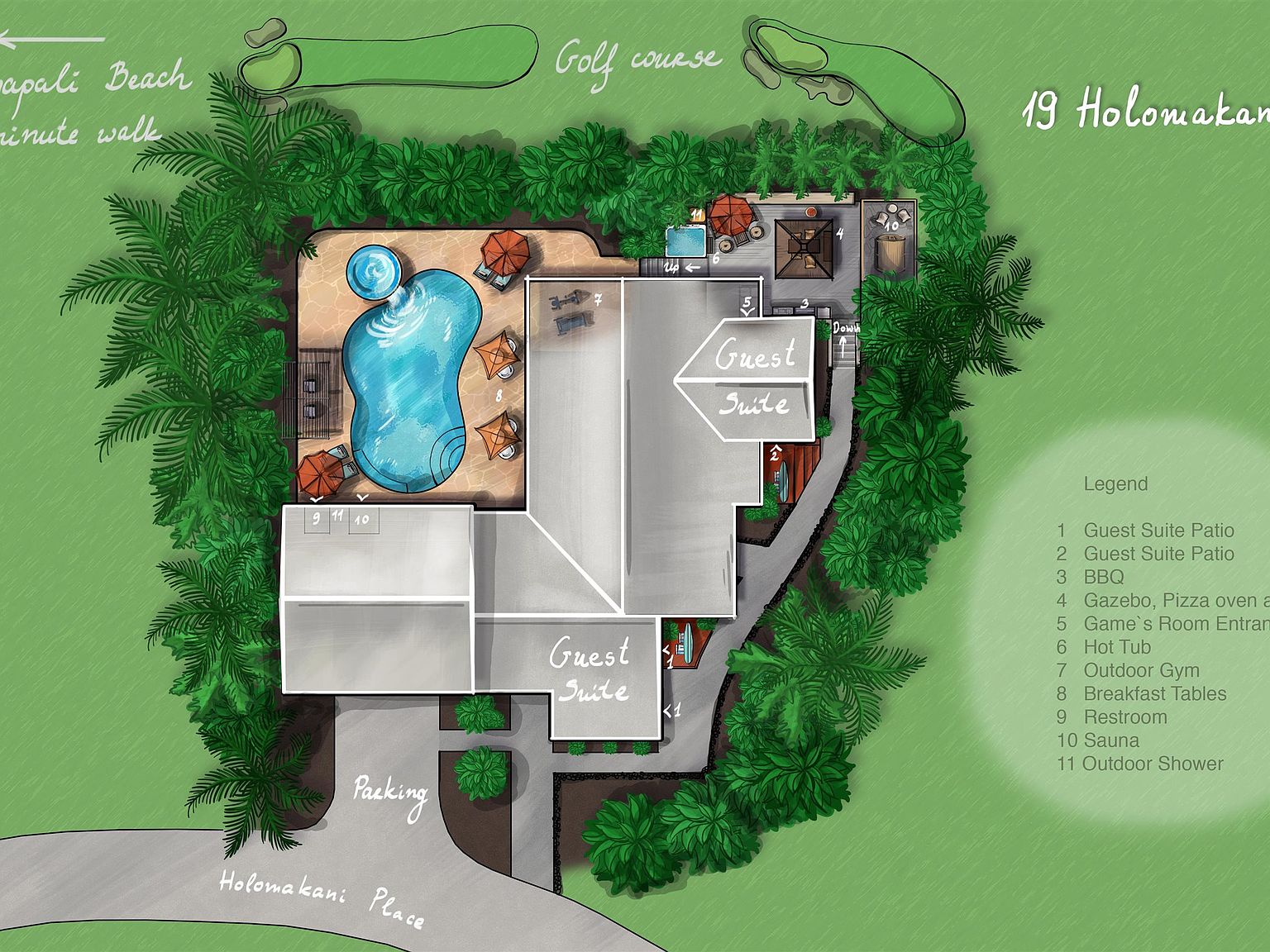 Rarely available, Holomakani Place is an exclusive, serene cul-de-sac tucked along lush island fairways and mere moments from the world-renowned Ka’anapali Beach. With only nine residences on this tranquil, private street, properties here rarely come to market. Situated on the 14th hole of the iconic Ka'anapali Golf Course, this 6-bedroom, 5-bathroom estate showcases over 4,000 square feet of luxurious living space and breathtaking views of the neighboring islands. Meticulously crafted and recently expanded, this home seamlessly blends modern sophistication with island inspired elegance. Enjoy ultimate relaxation in one of three spacious primary en-suites—two of which are conveniently located on the main floor with private entrances, offering secluded retreats for in-laws or visiting guests. Vaulted ceilings, refined finishes, and abundant natural light create an airy and inviting atmosphere throughout. Step outside and into your own private resort! This property features an impressive array of amenities, including: a 45,000-gallon heated and tiled swimming pool, three hot tubs and two saunas, two outdoor showers, a games room featuring a billiards table and arcade, as well as an expansive entertainment deck with gazebo, firepit, and fully equipped alfresco kitchen for sunset dinners and weekend BBQs. This energy-efficient home comes with 68 owned PV solar panels on net metering, a separate solar hot water system, and radiant solar heating for the pool. Enjoy Maui’s stunning sunsets as you drive to the beach in a brand-new 2025 Evolution EV six-passenger luxury golf cart, included as part of the sale! There is also no neighborhood HOA, which is unique in Ka’anapali and offers added freedom and flexibility. Whether you're looking for the perfect full-time residence, a serene second home, or an entertainer’s dream retreat, 19 Holomakani Place offers the best of island living. Opportunities to own on this desirable street are incredibly rare. Schedule your private showing today!
