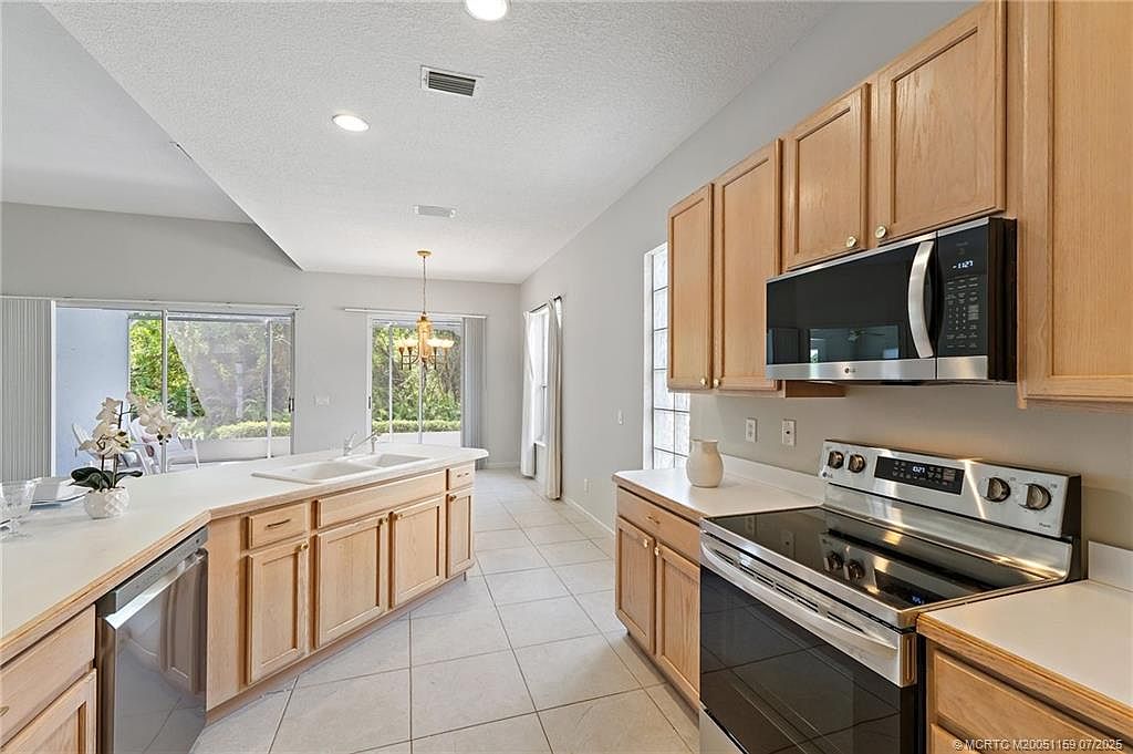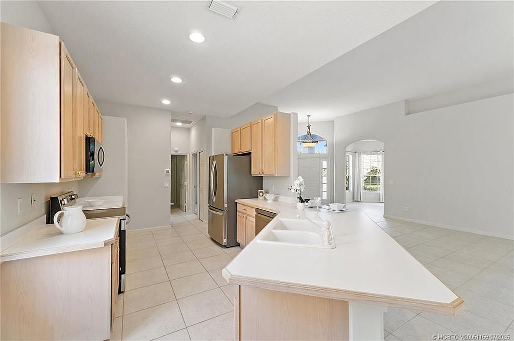 Highly Desirable Jensen Beach Country Club. A Tropical Oasis with Luxurious Amenities: Award winning Golf Course, three Community Pools, Newly Updated Clubhouse, Tennis Courts, Guard Gated Entry & More. Miles of preserve for your walking & biking pleasure. Beautifully appointed 2 Bedroom w/Large Den/3rd Bedroom, 2 Bath, 2 Car Garage. Spacious Split floor plan with volume ceilings, upgraded tile flooring, ceiling fans, recessed lighting & Freshly Painted Interior. Elegant Foyer, Den/Study, Large Great Room perfect for entertaining family & friends, Sunny Kitchen with an abundant of counter-space, BRAND NEW S/S Appliances & Pantry. The Primary Bedroom Suite features: Tray Ceiling, 2 walk in closets & luxurious Bath. Enjoy the evenings & views of the preserve & Golf Course from the tranquil covered & screened lanai. Jensen Beach Country Club is close to everything! beaches, shopping, restaurants + more!