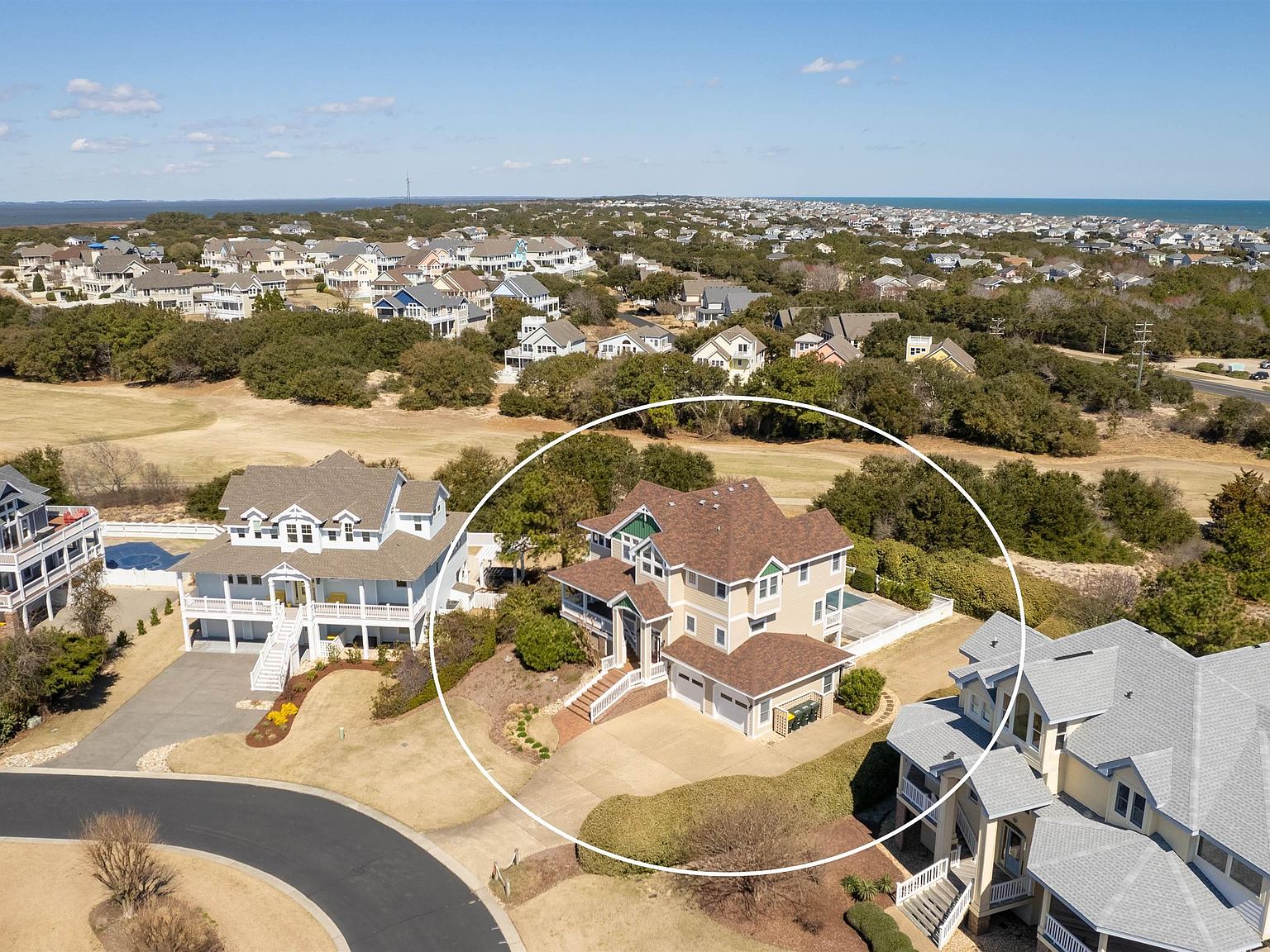 Welcome to your dream home at The Currituck Club! Situated perfectly on the tee box of the 12th hole, this stunning 5-bedroom, 4.5-bathroom property offers unparalleled views of both the lush fairways and the breathtaking Atlantic Ocean. Experience the magic of the morning sunrise from the comfort of your own home, with over 3,300 square feet of thoughtfully designed living space—plenty of room for the entire family to relax and unwind.
