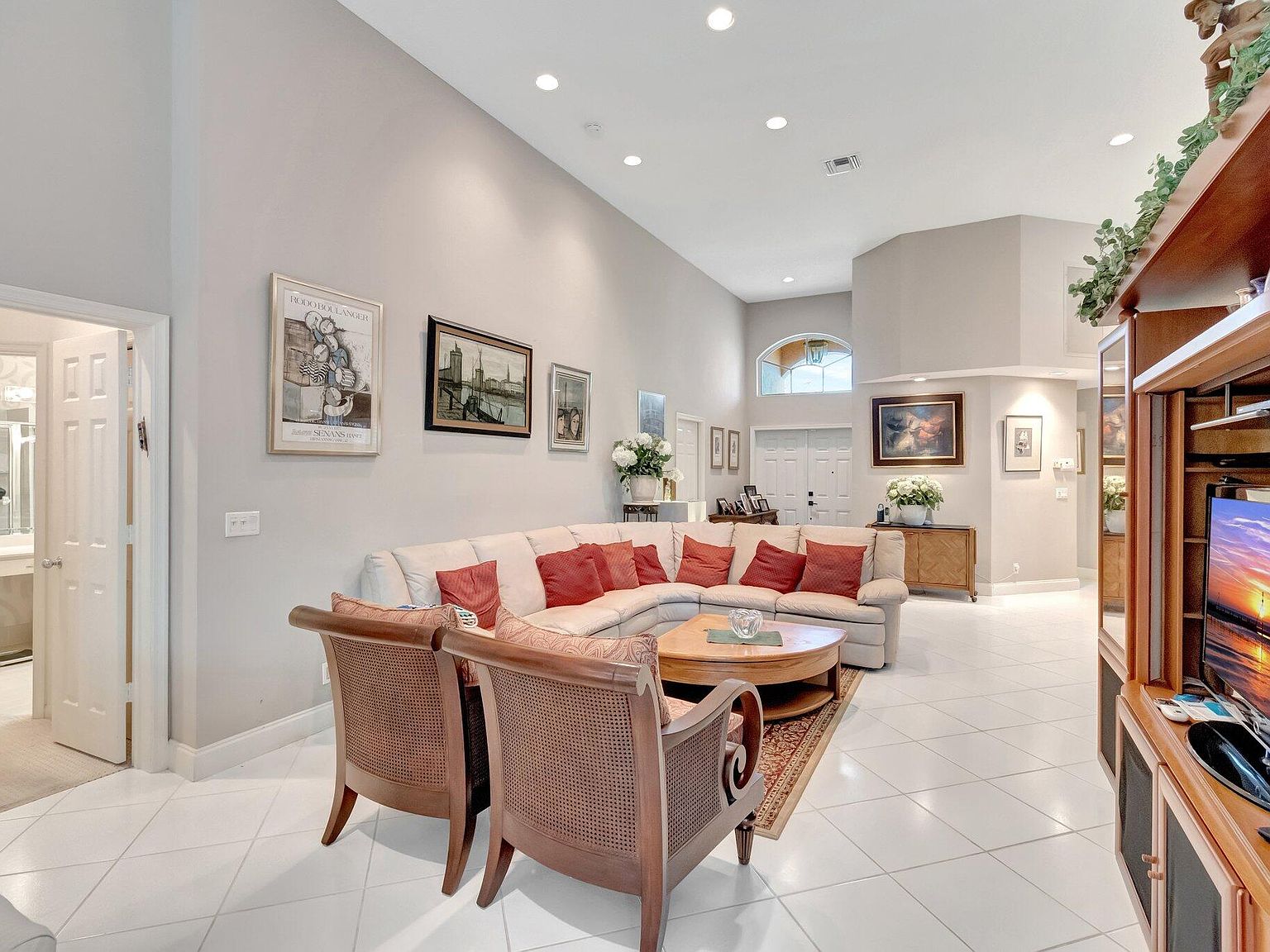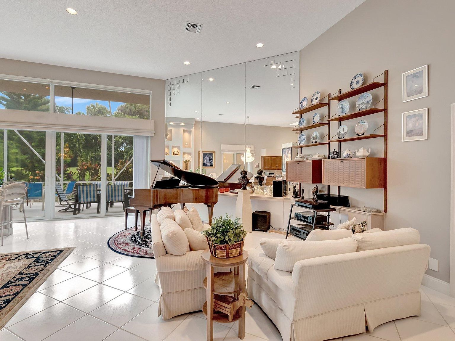 Three bedrooms plus den with three full bath home. Spectacular view of golf course. Impact windows and doors. Light and bright with an open concept floor plan. Screened enclosed patio. Two car garage plus golf cart garage. Long driveway. Extensive lush tropical landscaping .Most of the furniture has now been removed. This community has a beautiful community pool , patio and a clubhouse for socializing and meetings. It is also part of the Indian Spring Country Club community. Joining the Country Club is optional
