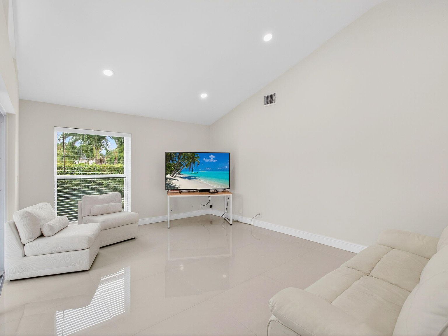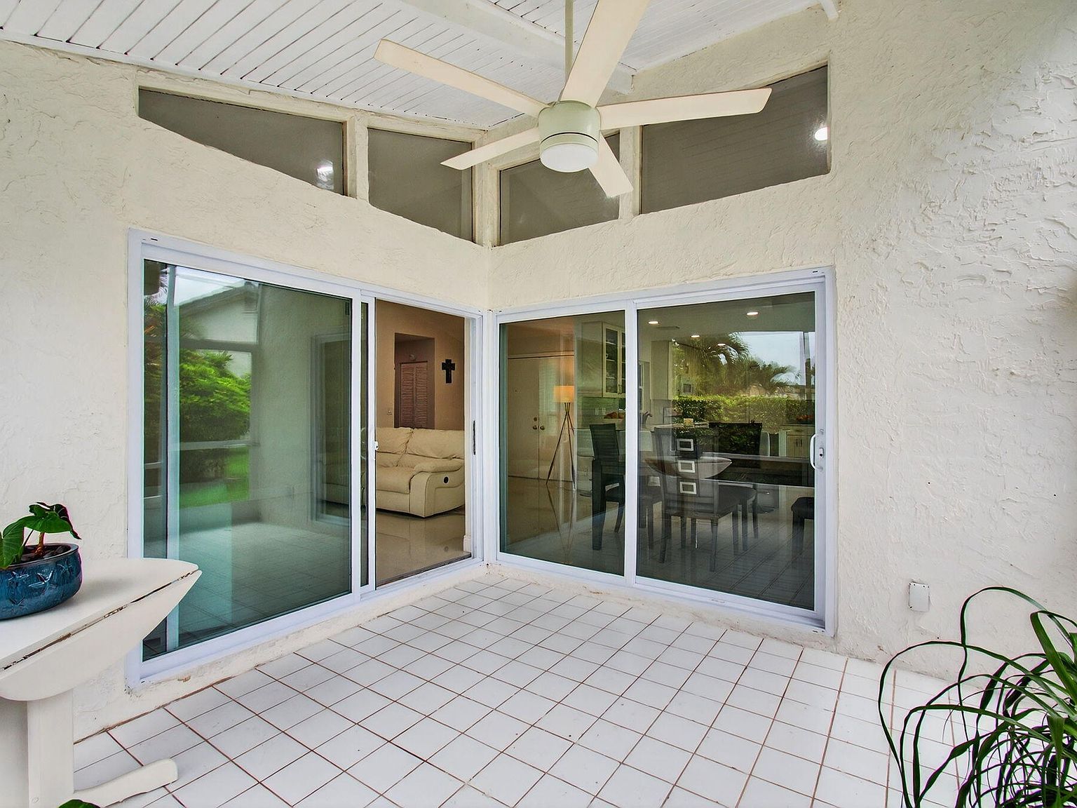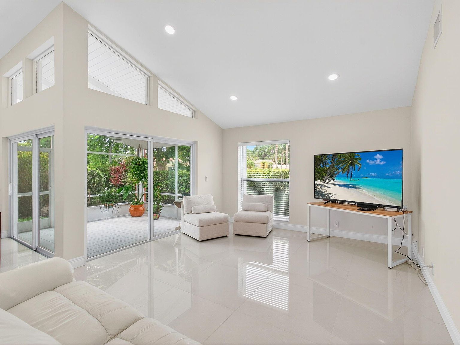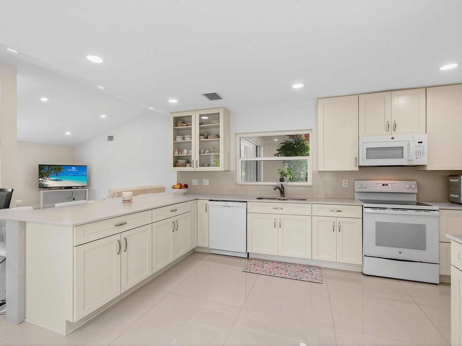 Beautifully renovated home with impact glass windows, new kitchen, new bathrooms, new flooring in the charming section of Indian Spring called ''THE MEWS''. New electric panel, new AC, new appliances. All work completed in the last 3 years. The community has a pool with a screened area or join the Indian Spring Country Club for more amenities.
