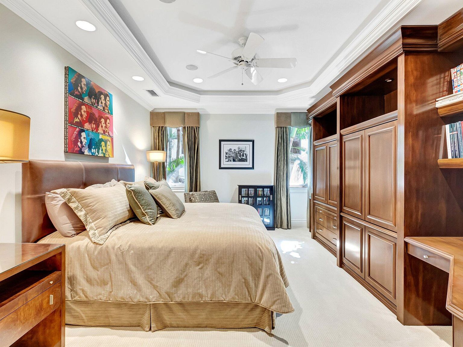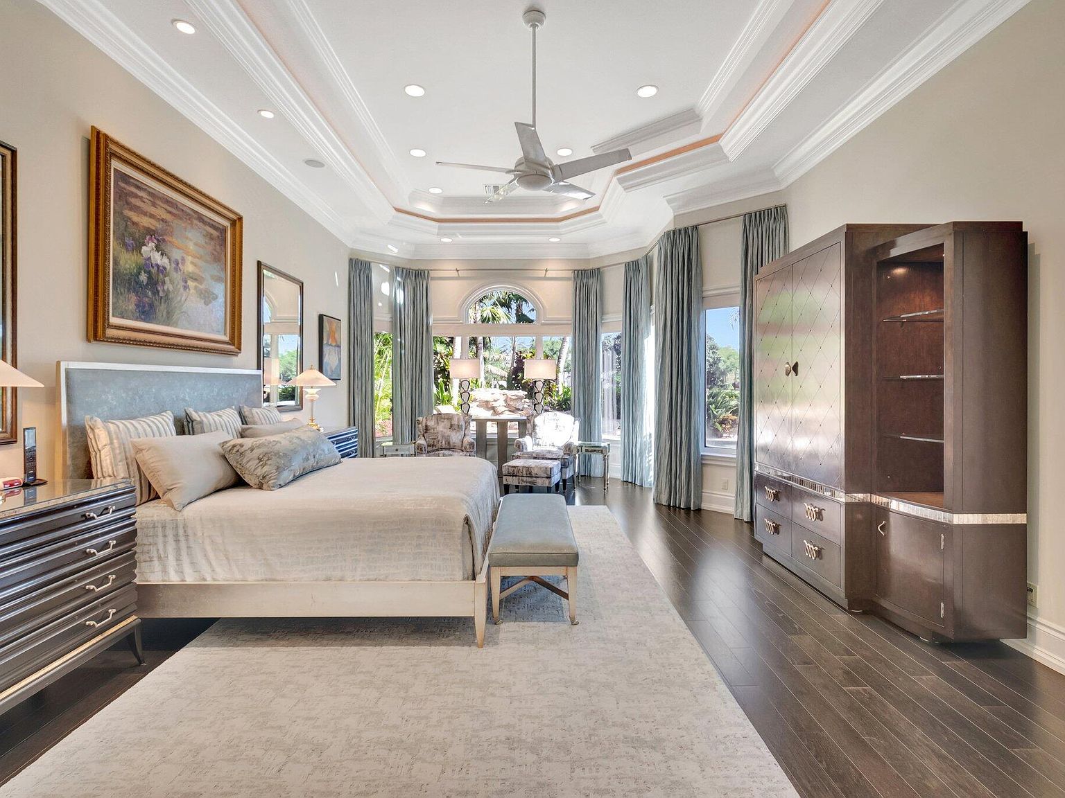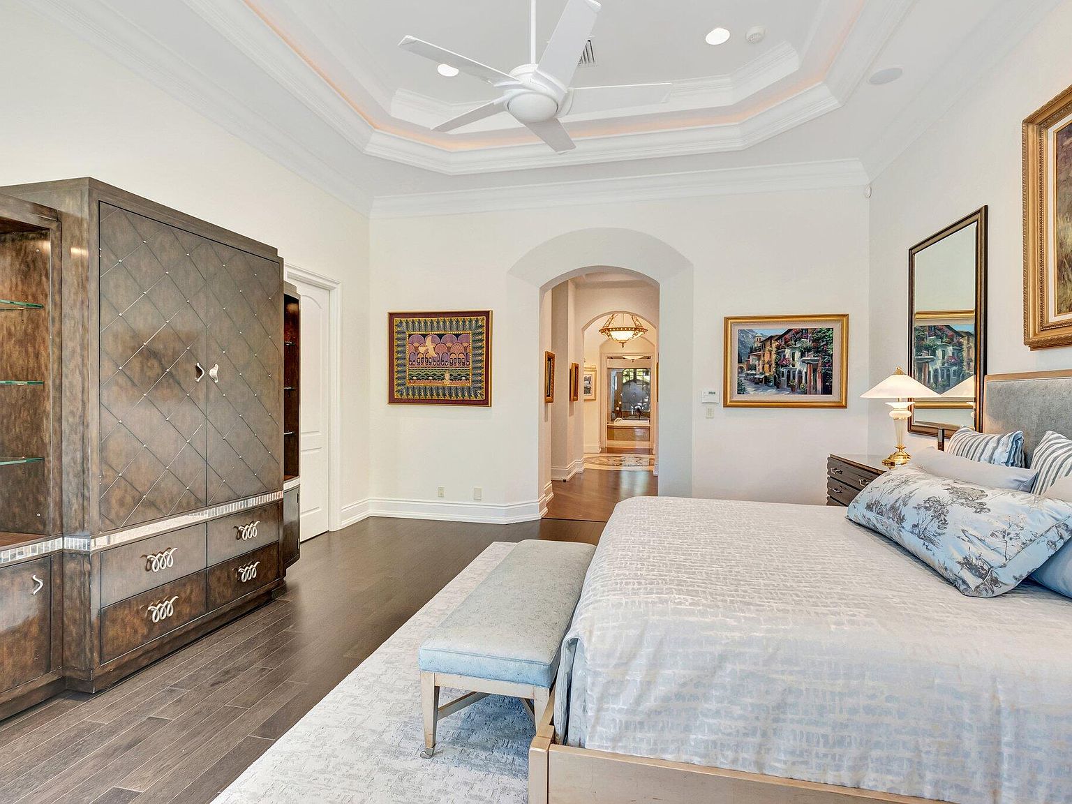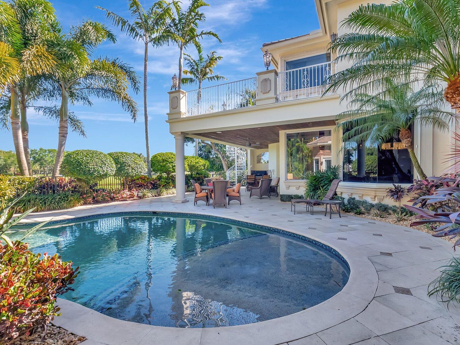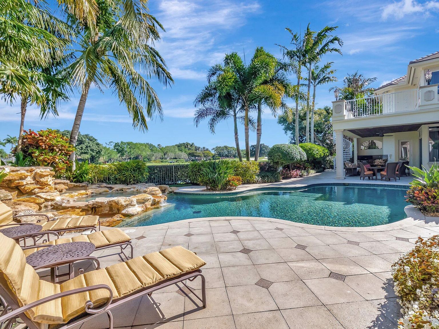 Custom built, luxury estate home with lake and golf course views, and full golf equity membership available, located on one of the best streets in Mizner Country Club! The home features 5 bedrooms + office + loft, elevator, full-house generator, a custom 400-bottle refrigerated wine room, new roof, custom built-ins, high-end upgrades and details throughout, and more! The gourmet kitchen features Wolf double ovens and gas cooktop, Sub Zero fridge, refrigerator & freezer drawers, warming drawers, Miele beverage center, 2 dishwashers, 2 sinks, and walk-in pantry. The huge master suite has a morning bar, custom walk-in closets, 2 W/Cs, and steam shower. All guest bedrooms are ensuite. Outside is a spacious patio with resort-style pool and spa, summer kitchen with built-in BBQ, sink, and fridge, and sprawling lake and golf course views.