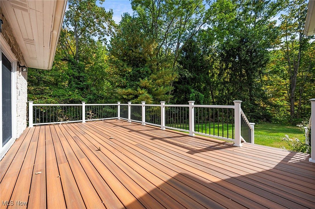 This fully renovated home offers five spacious bedrooms and three full bathrooms, including a private in-law suite with its own kitchen, living area, bedroom, and full bath with a tiled shower. The main kitchen has been completely updated with stainless steel appliances, new cabinetry, modern backsplash, and updated flooring. An open dining area flows seamlessly into a large great room with sliding doors that lead to a brand-new composite deck, perfect for relaxing or entertaining.