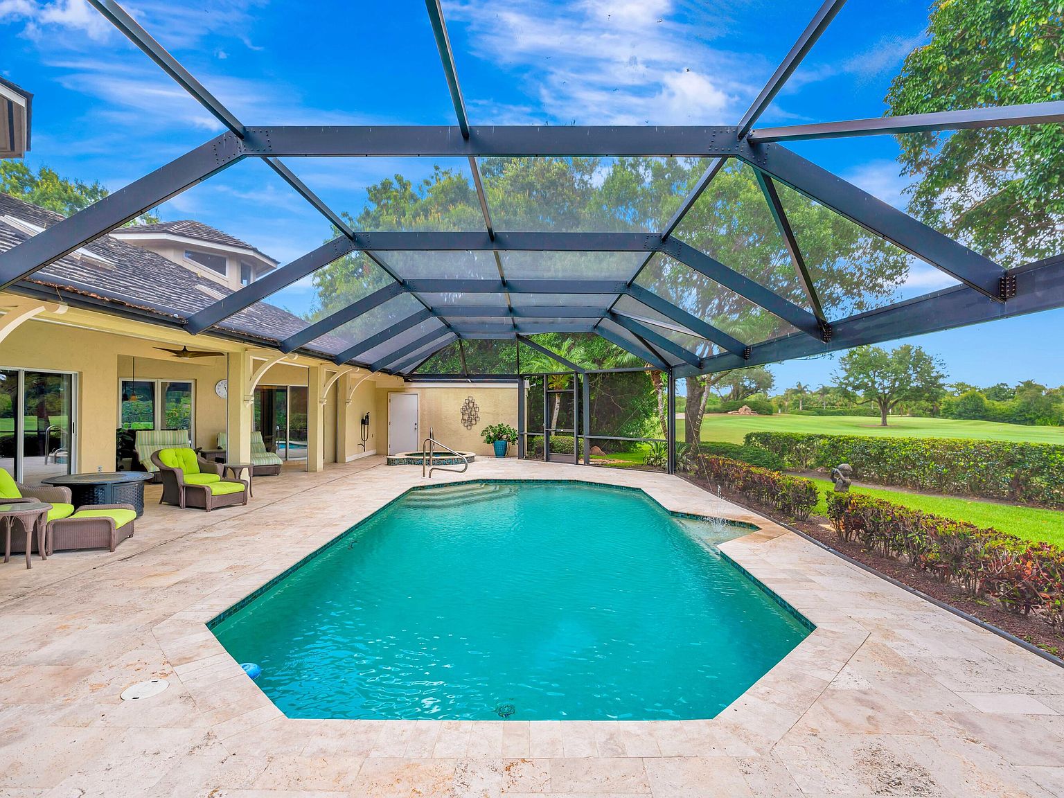 An absolutely unique custom estate, set on over a half-acre of lush, manicured landscaping. This expansive, single-level home features top-quality cabinetry and exquisite finishes throughout. Enjoy the privacy of a screened-in pool and lanai, a large office, and three generously sized bedrooms, each with its own en-suite bath. Perfectly positioned on the tenth fairway of a premier gated community offering golf, tennis, pickleball, boating, bocce, and more. Marina slips are available for rent or purchase. A one-time $30,000 capital contribution is required at closing.