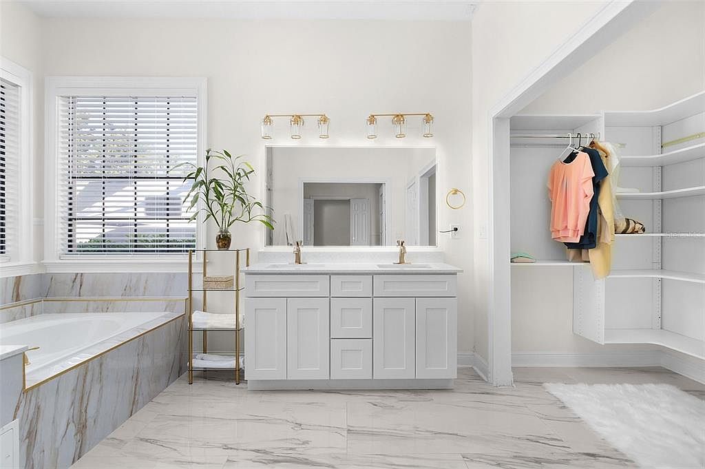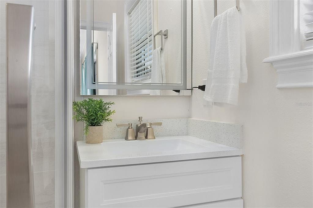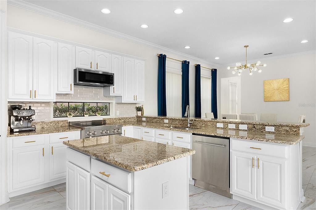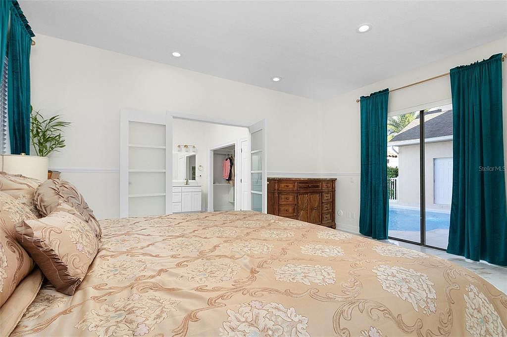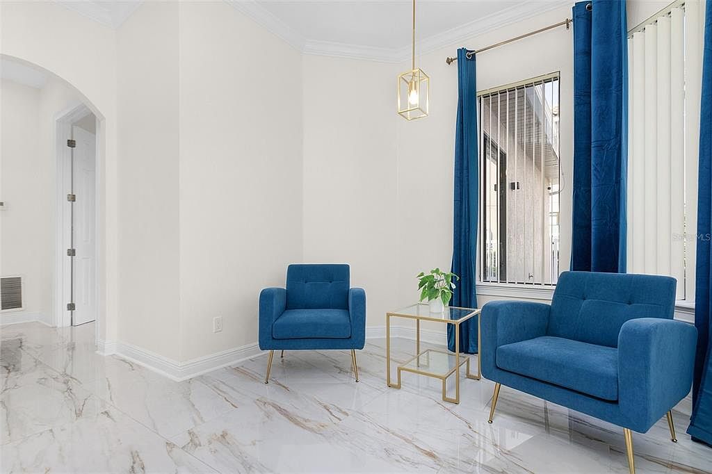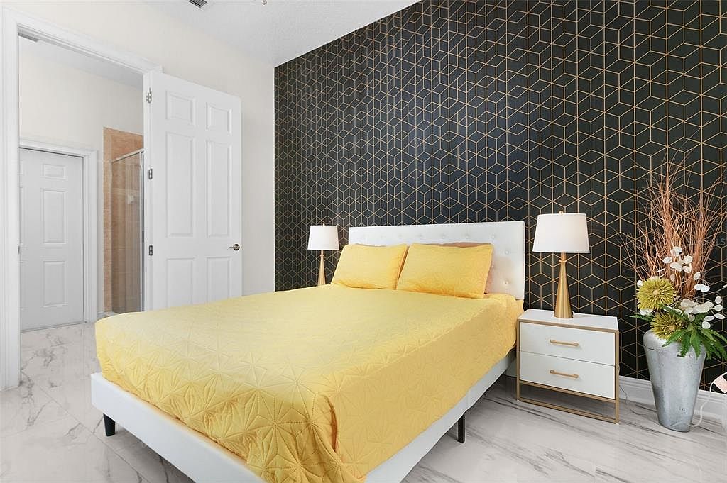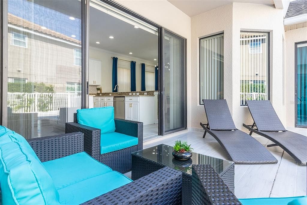 Experience resort-style living in this beautifully updated pool home, ideally situated in the heart of Reunion Resort’s sought-after Homestead neighborhood. Just steps from the community’s many restaurants, pools, and recreational amenities, this residence offers the perfect blend of luxury and comfort. The main level features striking white porcelain tile throughout and centers around a private, heated courtyard pool with desirable south and west exposure. Sunlight fills the spacious interior, highlighting standout features in every room—from the elegant living area with a vibrant electric fireplace, to the modern island kitchen outfitted with premium energy-efficient ZLine appliances, quartz countertops, breakfast bar, and direct pool access via sliding doors. Enjoy meals or entertaining in the stylish dining room with an adjacent sunlit sitting area. The first-floor primary suite is a true retreat, complete with a spa-inspired bath offering a rain shower, soaking tub with ambient lighting, double vanity with quartz finishes, and a custom walk-in closet with built-ins—all accented in soothing gold and white tones. A second en-suite bedroom on the main level also opens to the pool, ideal for guests or multigenerational living. Upstairs, two additional bright and generously sized bedrooms each feature updated en-suite baths, while a versatile loft area currently functions as a gaming lounge but could easily serve as a home office or study. This well-maintained home includes numerous recent updates such as pool resurfacing, a new deck, and a brand-new AC unit. Offered furnished with stylish, brand-new décor (optional), the property is move-in ready—perfect as a primary residence, vacation retreat, or income-producing rental. The HOA covers lawn care, high-speed internet, and HD cable, and residents enjoy access to Reunion’s outstanding amenities including fitness centers, pools, restaurants, and more. Located just 6 miles from Walt Disney World® and about 30 minutes from Orlando International Airport, this home delivers exceptional value in an unbeatable location.