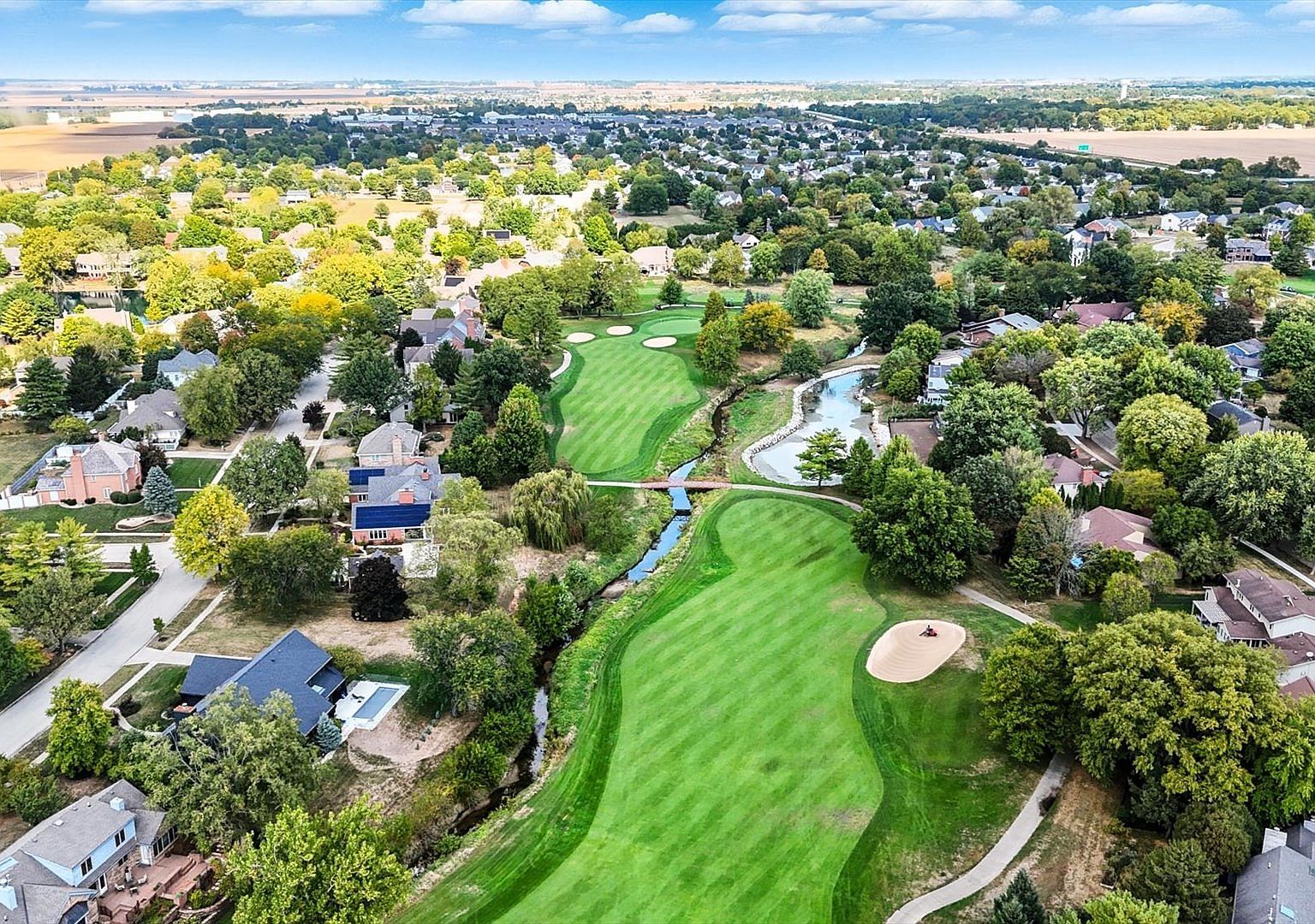 Beautifully positioned near the 15th green of Lincolnshire Fields Country Club's private golf course, this charming home offers the perfect blend of elegance, space, and curb appeal. Guests are welcomed by a circular drive leading into a stately 2-story foyer. The main level boasts a spacious and open kitchen, multiple living areas including a charming sunroom with an additional 197 square feet not included in the measured square footage, a formal dining room, and a flexible office or 5th bedroom. Have multi-generations living together or want a first floor office? This home can accommodate multiple situations. Upstairs, you'll find four generously sized bedrooms including the primary suite, which features an inlet ceiling, walk-in closet, and a spacious bath. Oversized Pella windows throughout the home capture golf course views and bathe the interiors in light. The professionally landscaped backyard with a large patio creates a private outdoor oasis and resembles an English garden. It's private but with stunning golf course views that never disappoint, regardless of the season. Enjoy recent upgrades like a Trane HVAC system (2018), KitchenAid appliances (2024), hardwood and Italian tile floors (2019), fresh interior paint (2020), and exterior paint (2021). Additional features include a 3-car oversized garage, sprinkler system, gas fireplace, and ADT security system with Nest camera.