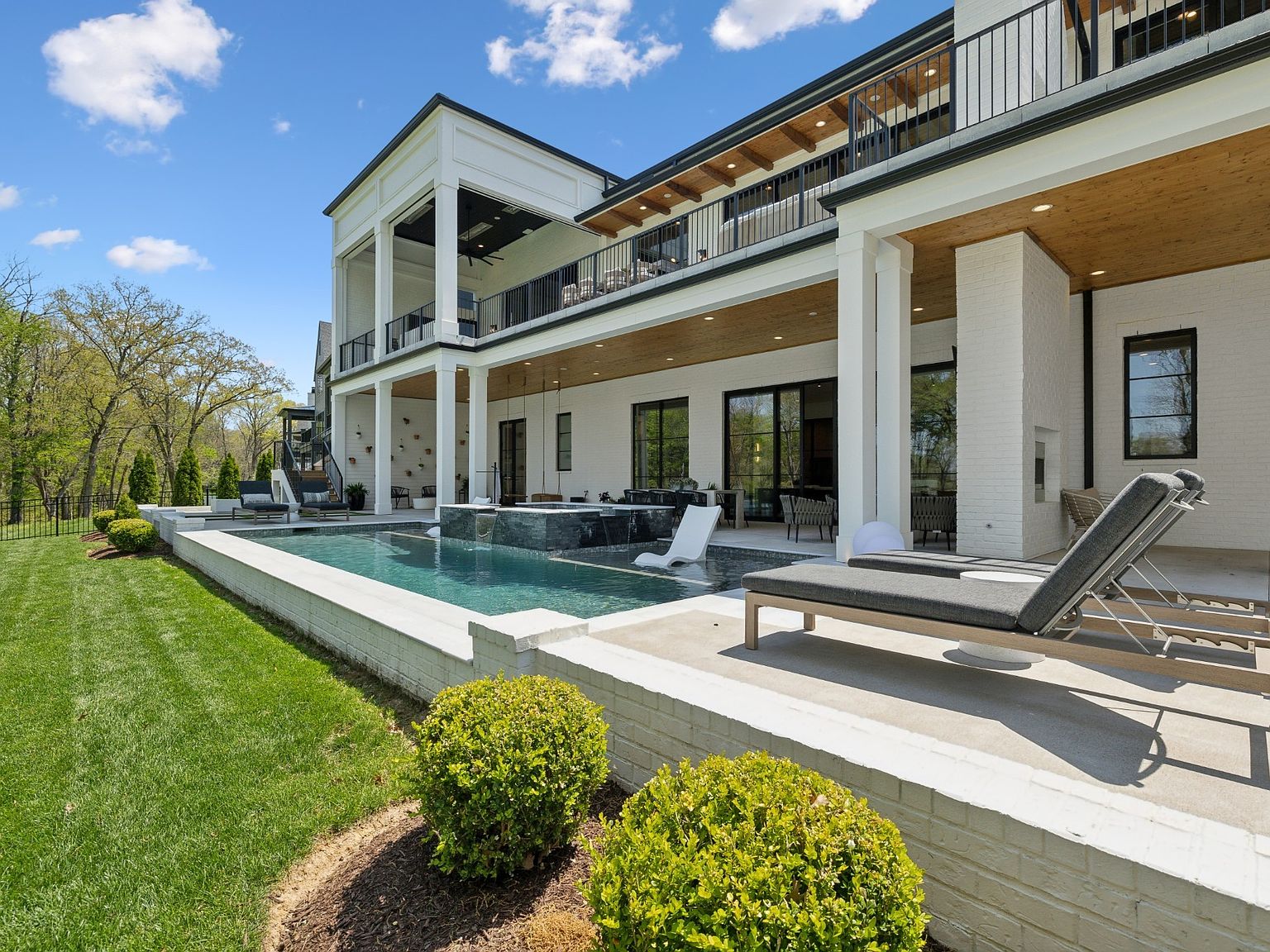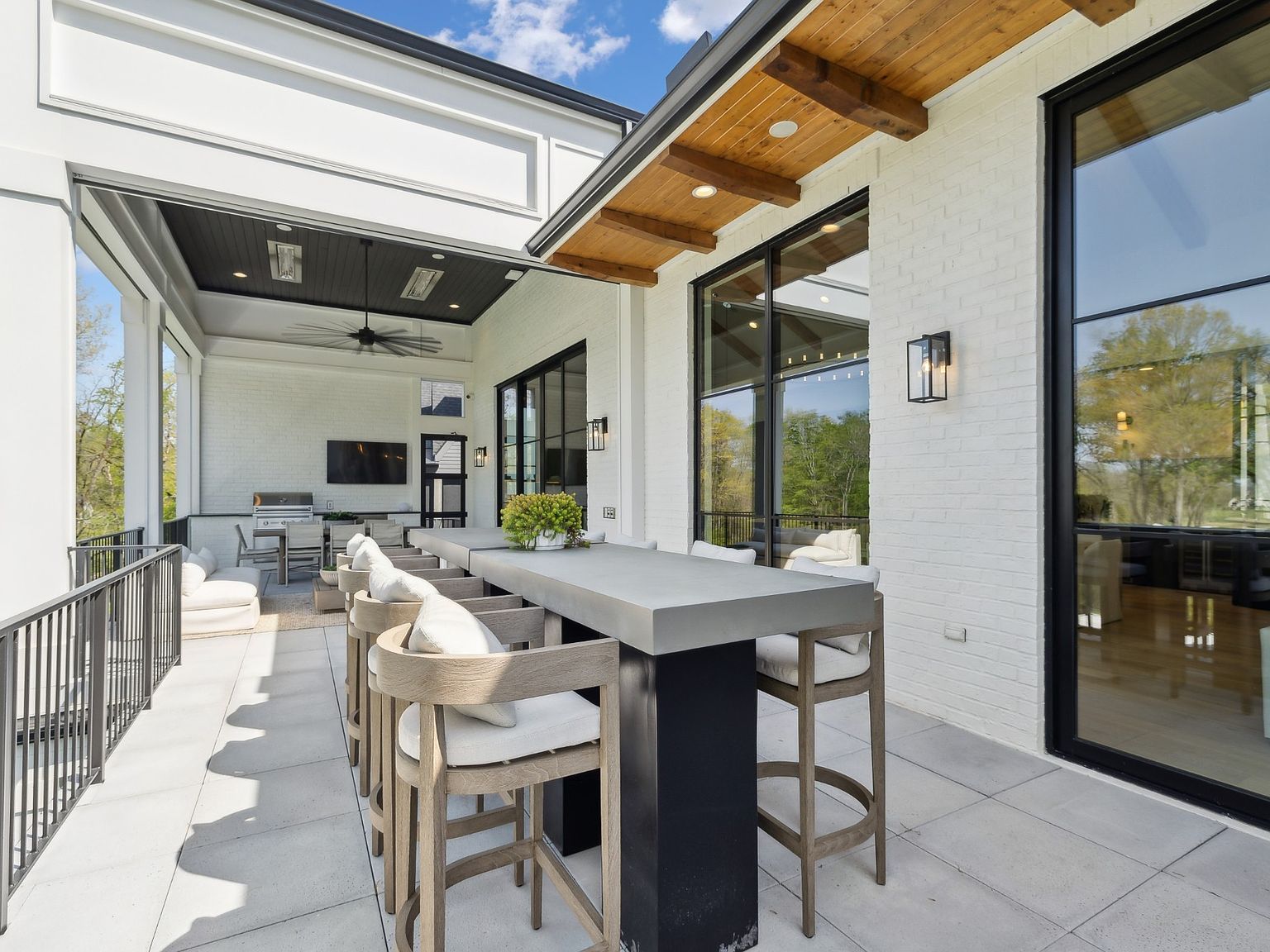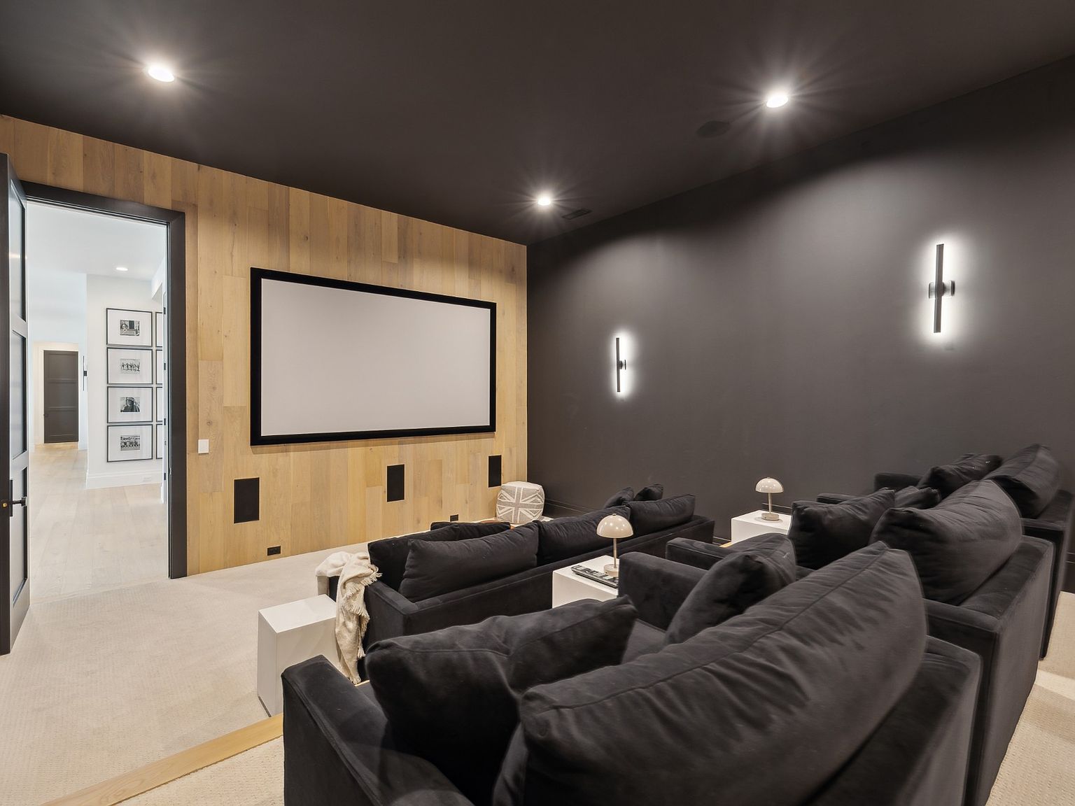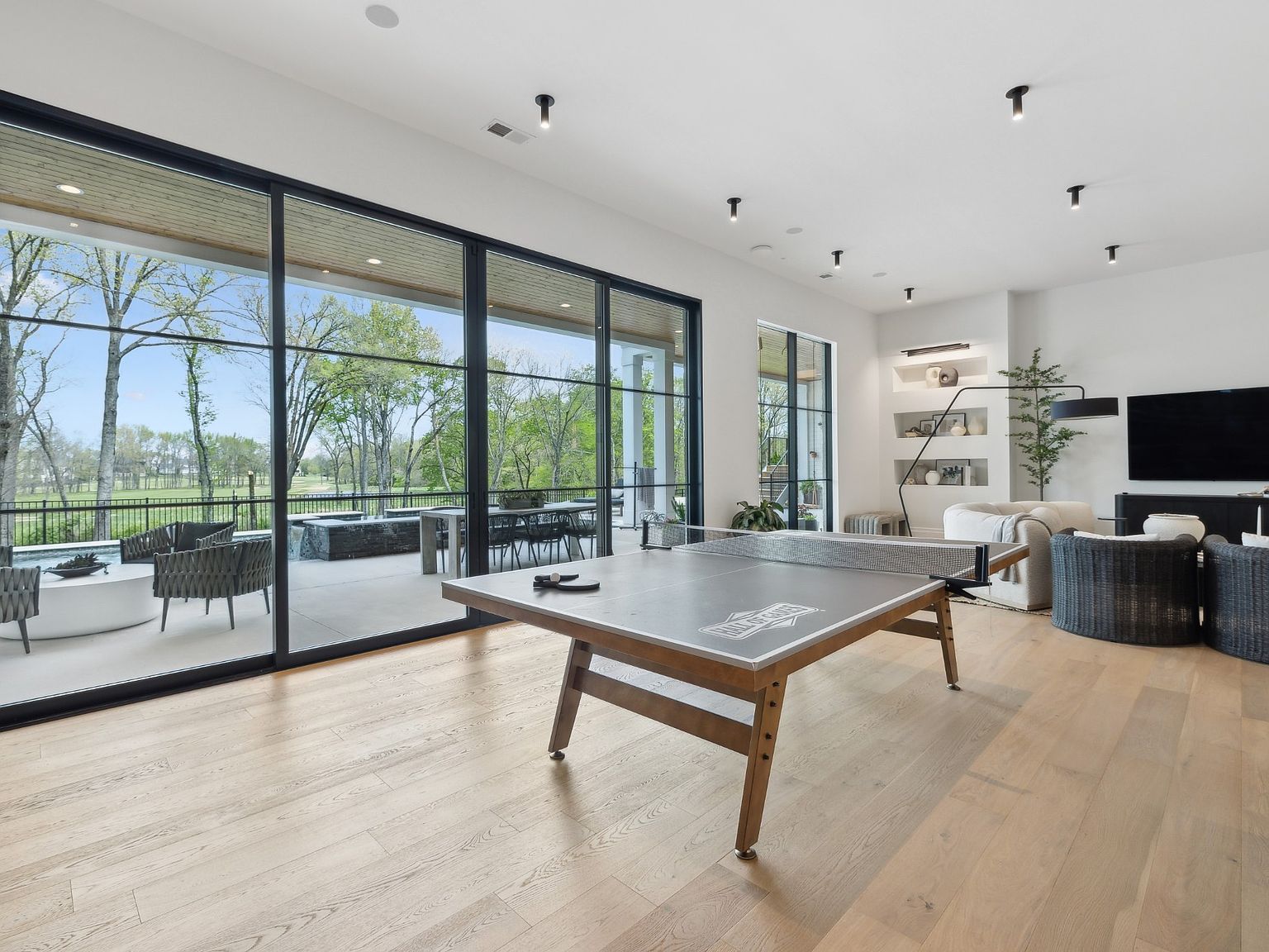 Stunning, one of a kind luxury home perched on the 16th hole with jaw-dropping 180 degree golf course views. This 8950 sq ft, 5 bedroom, 5/1 custom home blends indoor and outdoor living across two floors with total privacy. Step through the front door and be greeted with soaring ceilings and a wall of 11 foot high glass sliding doors that draws you right into the heart of the home. The great room is made for living... cozy up next to the limewash plaster fireplace in the living area or head to the kitchen to make a meal, complete with double islands, a custom banquette and a show-stopping range hood. Mix a cocktail in the sleek metal and glass walled bar. The prep kitchen adds another element to your entertaining with an oven, refrigeration, second dishwasher, tons of cabinets and a full pantry. For a quiet place to work the office, just off the main entry, is framed by glass walls for the perfect mix of style and focus. The primary bedroom is your personal retreat with its own fireplace, private deck and a bathroom that's straight out of a spa, with double vanities and stand alone tub. There are four other specious bedrooms - one on the main floor and three on the lower level - perfect for families and guests. The laundry room has a charming Dutch door and dog wash for your furry friends. The lower level is an entertainer's dream... a massive living area for game nights, ping pong or just relaxing, plus a kitchenette. The media room has four built-in bunks and a projection screen, ideal for movie nights or kid sleepovers. No need for a gym membership either... the glass and metal walled workout space has a water bottle filler and you can unwind in the sauna or steam shower afterward. Outside has more than 1200 sq ft of outdoor living across two floors with a pool, hot tub, doubled sided fireplace, multiple lounge areas, and outdoor kitchen, screened in porch and a games spot with swings. This home has to be seen to be believed!