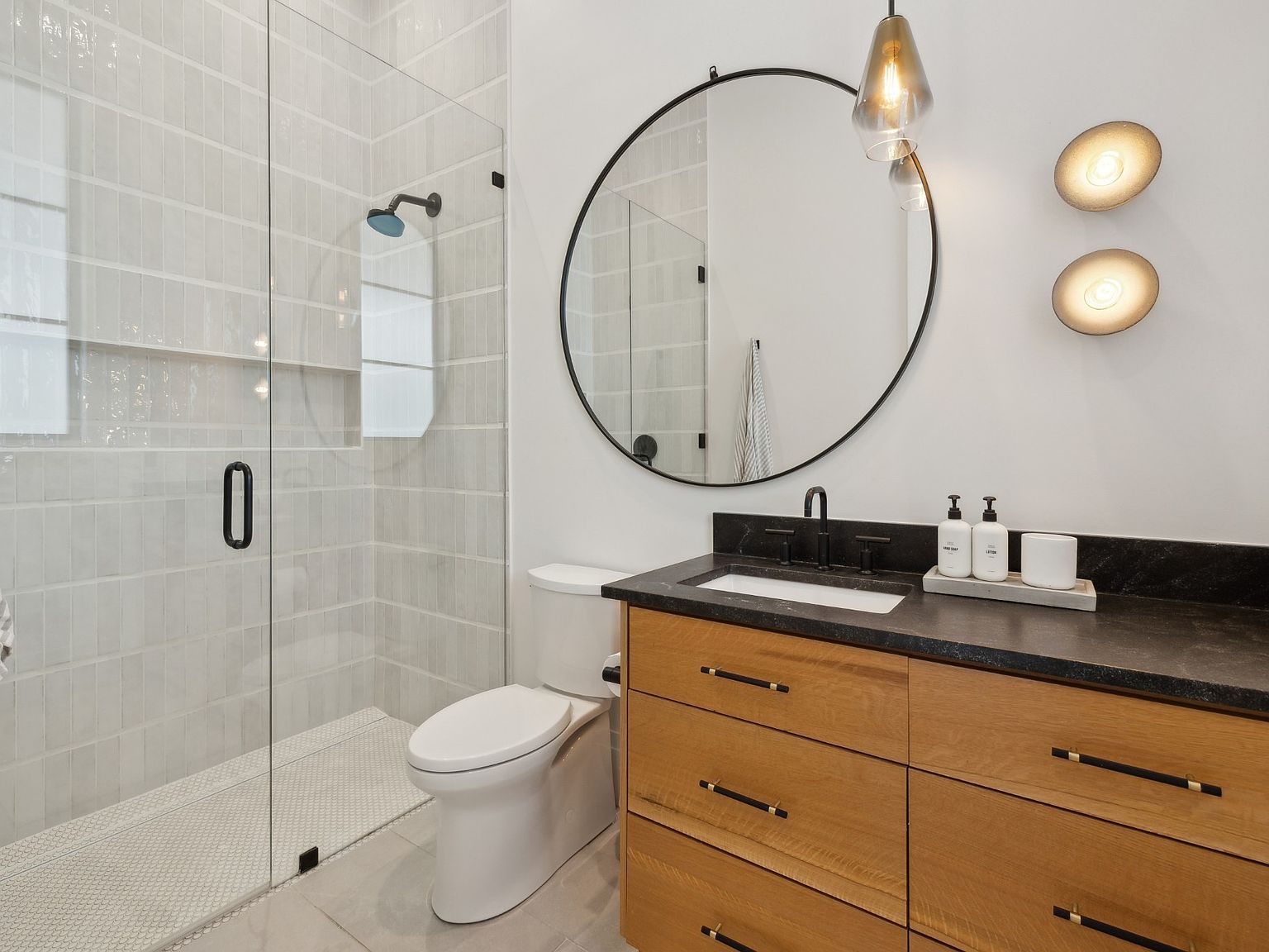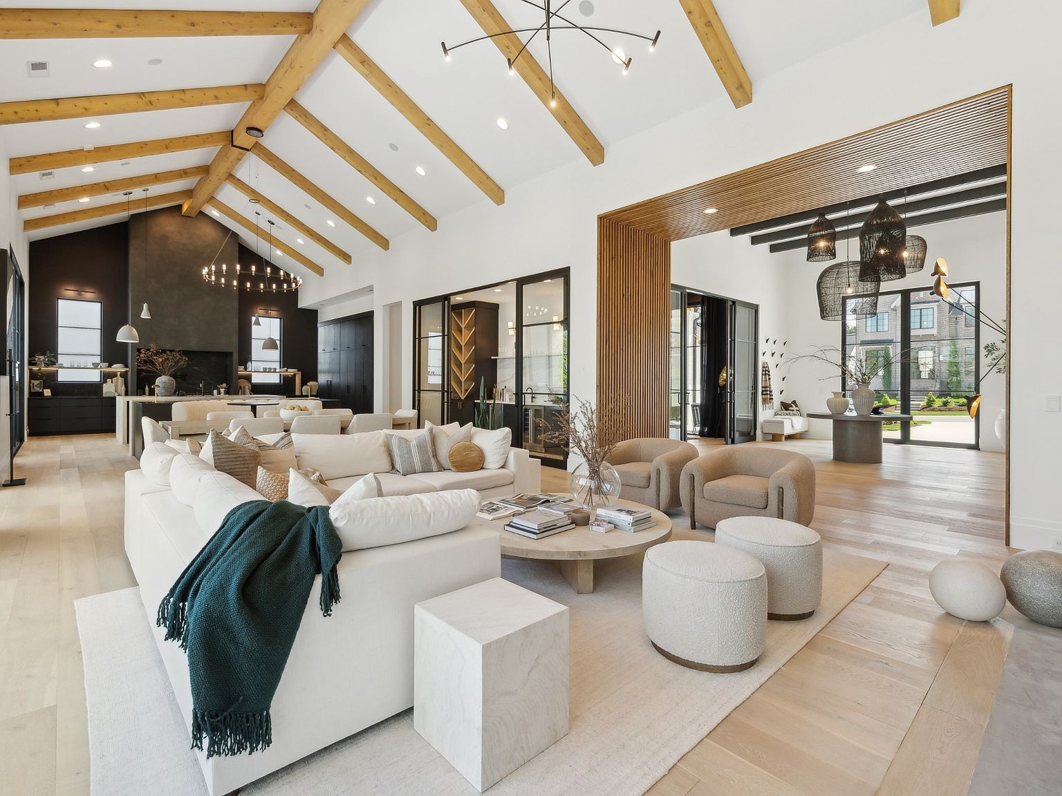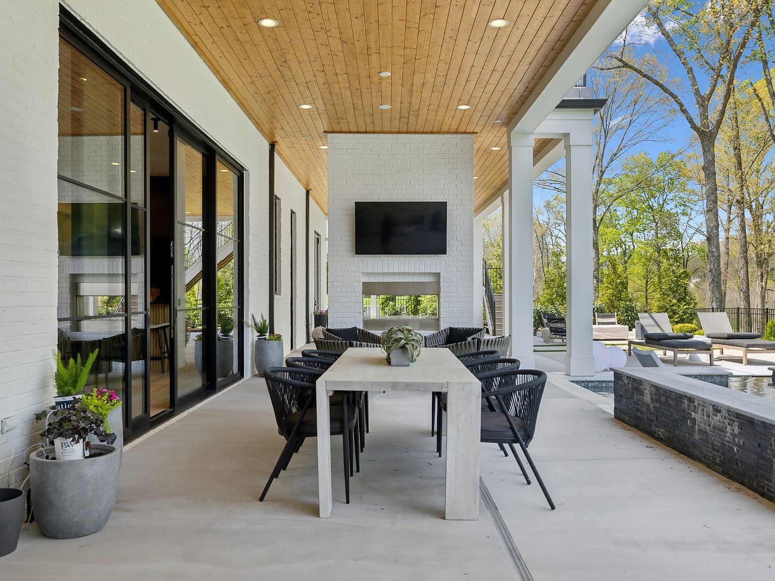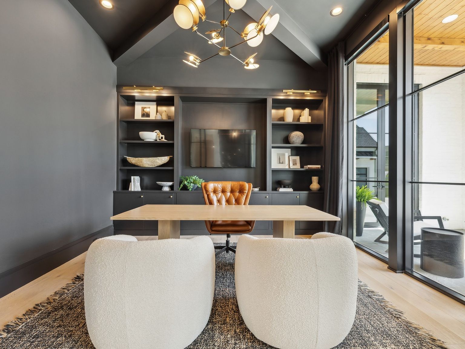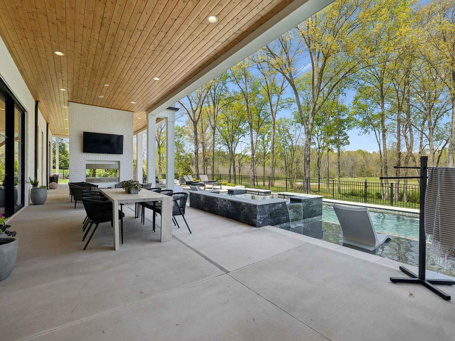Stunning, one of a kind luxury home perched on the 16th hole with jaw-dropping 180 degree golf course views. This 8950 sq ft, 5 bedroom, 5/1 custom home blends indoor and outdoor living across two floors with total privacy. Step through the front door and be greeted with soaring ceilings and a wall of 11 foot high glass sliding doors that draws you right into the heart of the home. The great room is made for living... cozy up next to the limewash plaster fireplace in the living area or head to the kitchen to make a meal, complete with double islands, a custom banquette and a show-stopping range hood. Mix a cocktail in the sleek metal and glass walled bar. The prep kitchen adds another element to your entertaining with an oven, refrigeration, second dishwasher, tons of cabinets and a full pantry. For a quiet place to work the office, just off the main entry, is framed by glass walls for the perfect mix of style and focus. The primary bedroom is your personal retreat with its own fireplace, private deck and a bathroom that's straight out of a spa, with double vanities and stand alone tub. There are four other specious bedrooms - one on the main floor and three on the lower level - perfect for families and guests. The laundry room has a charming Dutch door and dog wash for your furry friends. The lower level is an entertainer's dream... a massive living area for game nights, ping pong or just relaxing, plus a kitchenette. The media room has four built-in bunks and a projection screen, ideal for movie nights or kid sleepovers. No need for a gym membership either... the glass and metal walled workout space has a water bottle filler and you can unwind in the sauna or steam shower afterward. Outside has more than 1200 sq ft of outdoor living across two floors with a pool, hot tub, doubled sided fireplace, multiple lounge areas, and outdoor kitchen, screened in porch and a games spot with swings. This home has to be seen to be believed!