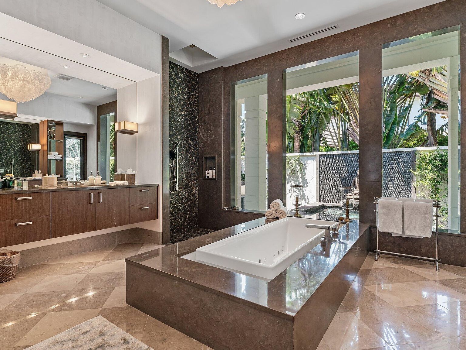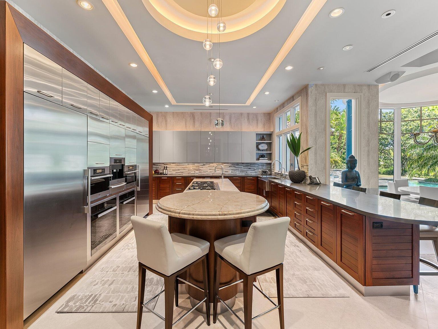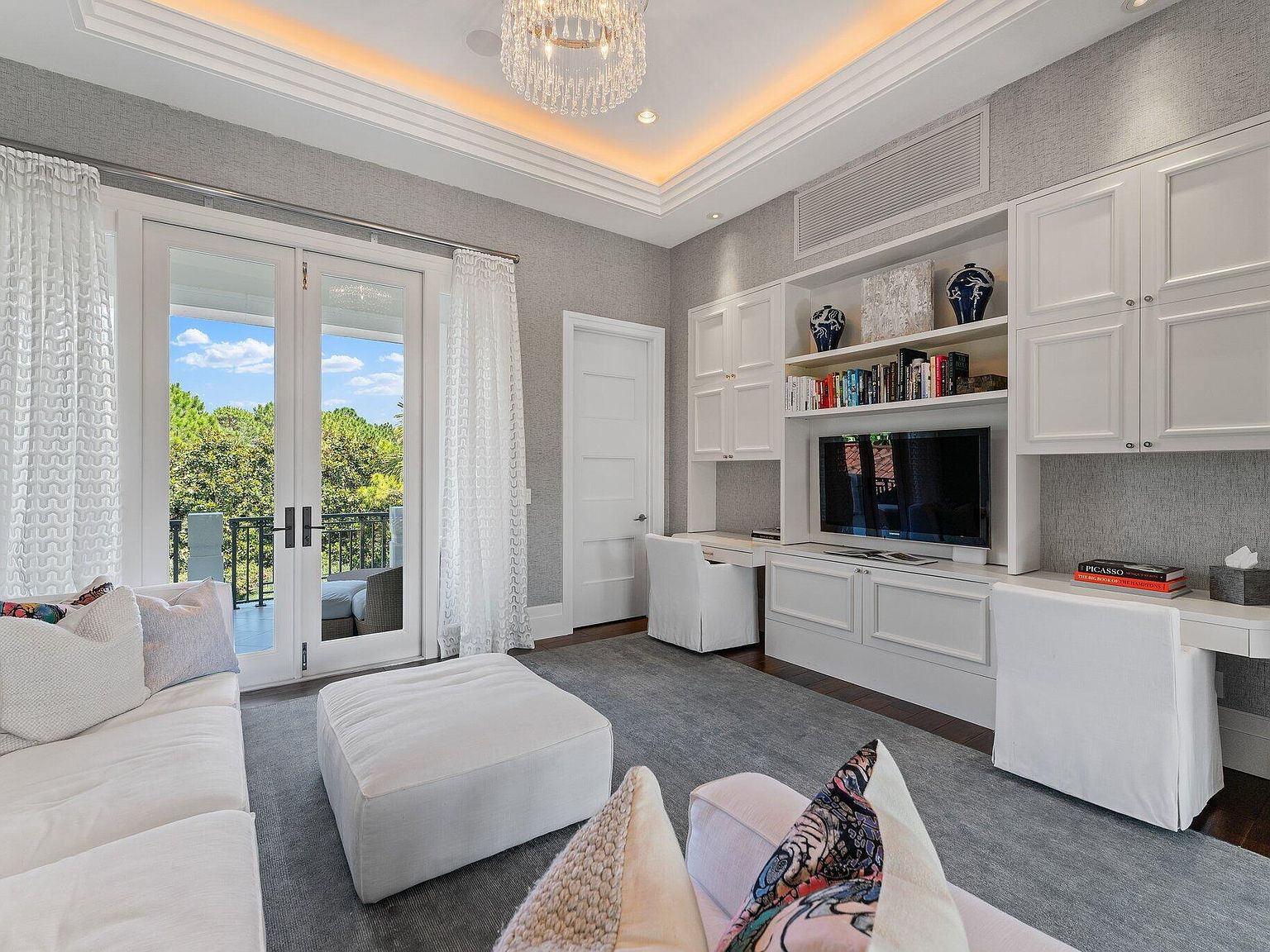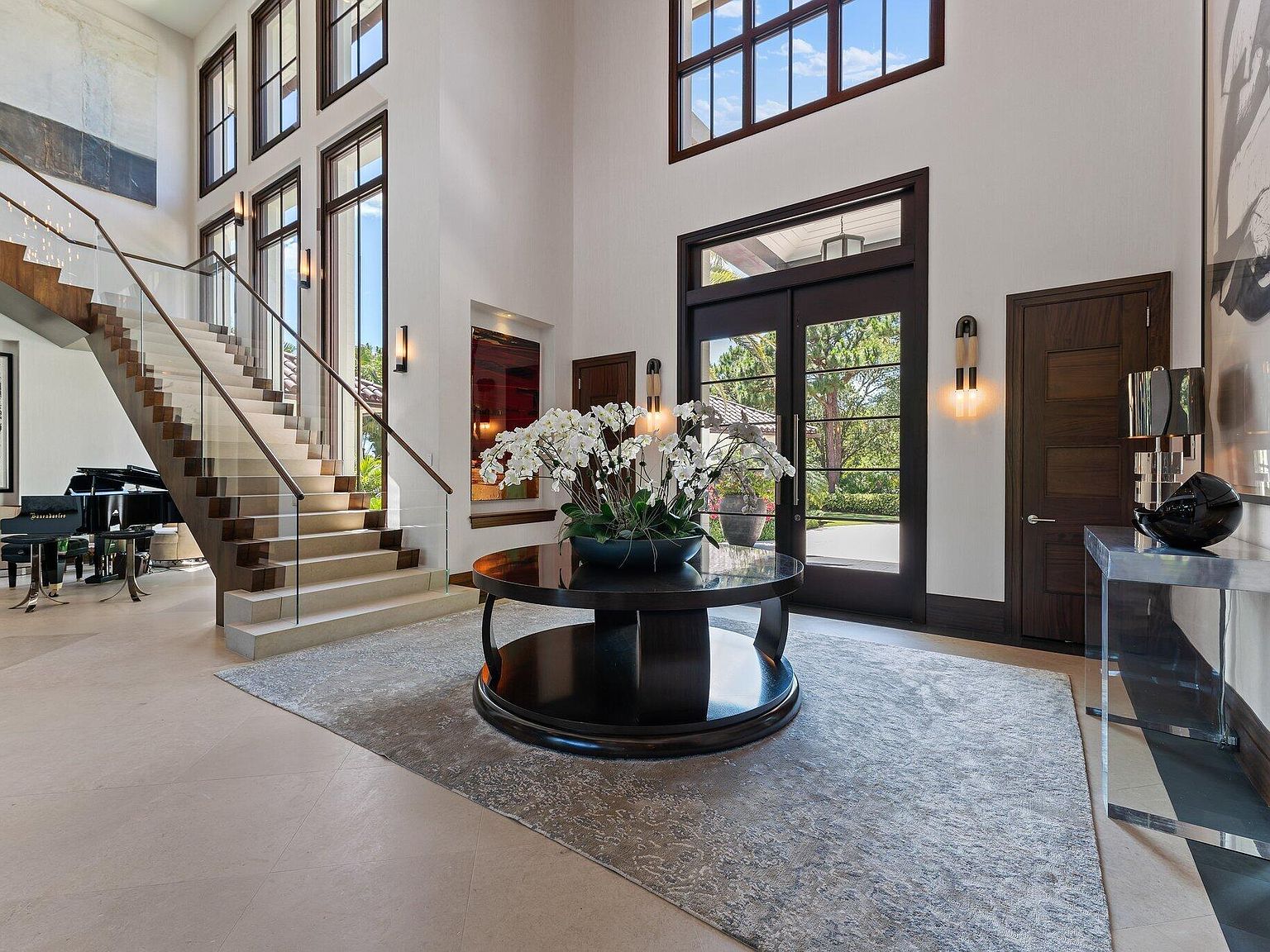 Located on nearly an acre along the second hole of the Nicklaus signature course at The Bears Club, this custom estate residence seamlessly integrates modern elements with timeless charm. This spectacular estate residence is a bespoke fusion of styles, blending the finest pieces from European and American design houses like Odegard and Lapchi , and lighting fixtures sourced from the prestigious Italian company Barovier and Toso. Intricate hand-painted wallpaper and stunning millwork adorn its interior, accentuating the architectural splendor.The Miele kitchen, designed for hosting gatherings, features high-gloss lacquer cabinets complemented by an iridescent glass tile backsplash.There have been many recent updates including the replacement and upgrades to the HVAC systems.