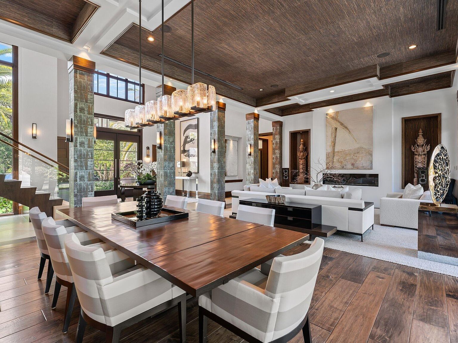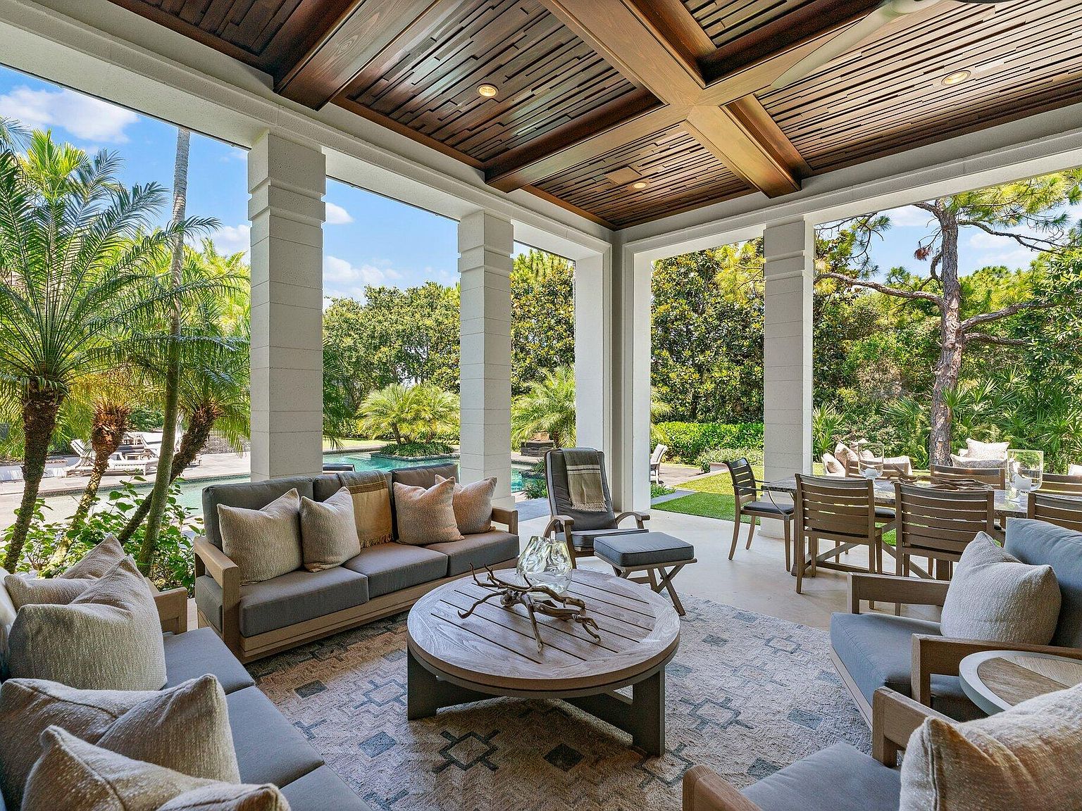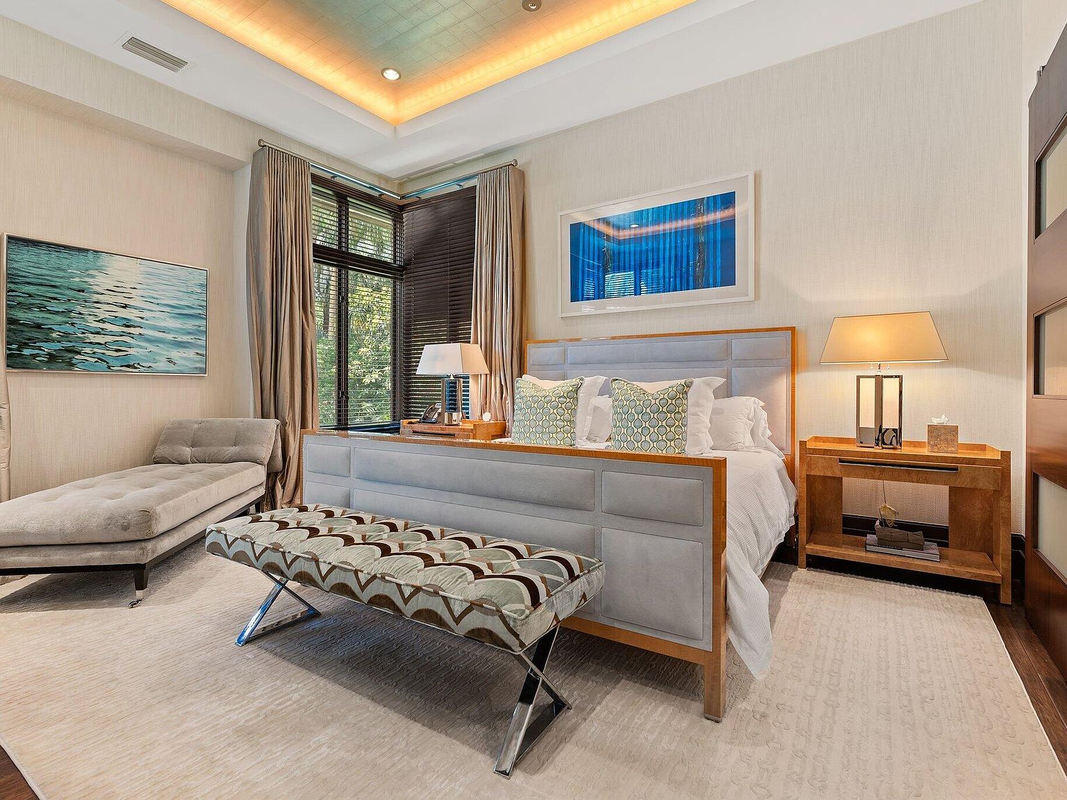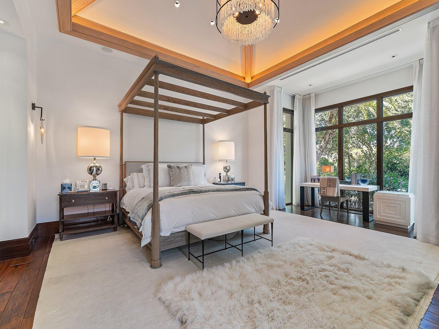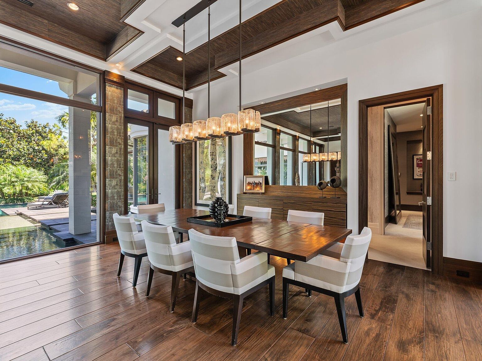 Located on nearly an acre along the second hole of the Nicklaus signature course at The Bears Club, this custom estate residence seamlessly integrates modern elements with timeless charm. This spectacular estate residence is a bespoke fusion of styles, blending the finest pieces from European and American design houses like Odegard and Lapchi , and lighting fixtures sourced from the prestigious Italian company Barovier and Toso. Intricate hand-painted wallpaper and stunning millwork adorn its interior, accentuating the architectural splendor.The Miele kitchen, designed for hosting gatherings, features high-gloss lacquer cabinets complemented by an iridescent glass tile backsplash.There have been many recent updates including the replacement and upgrades to the HVAC systems.