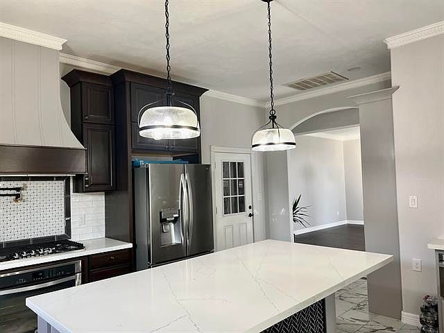 NEWLEY RENOVATED HOME with space and elegance near Babe Zaharias Golf Course. Port -A- Cache entry. The wood stain glass door opens into a large open concept living, dining, and breakfast area with beautiful porcelain and wood floors, and plenty of natural light pouring in through the large windows. The kitchen is a chef's dream with stainless steel appliances, a gas cooktop, quartz countertops, a spacious island, and plenty of cabinet space for all your cooking needs. A long hallway with two bedrooms and a hall bathroom leading to the spacious family room. The master bedroom is located upstairs and boasts a large walk-in closet with built-ins, sitting area, and a luxurious en-suite bathroom with double sinks, soaker tub, and a walk-in shower. The upstairs also has a room for your office. Large backyard and a covered patio. Roof 2024.