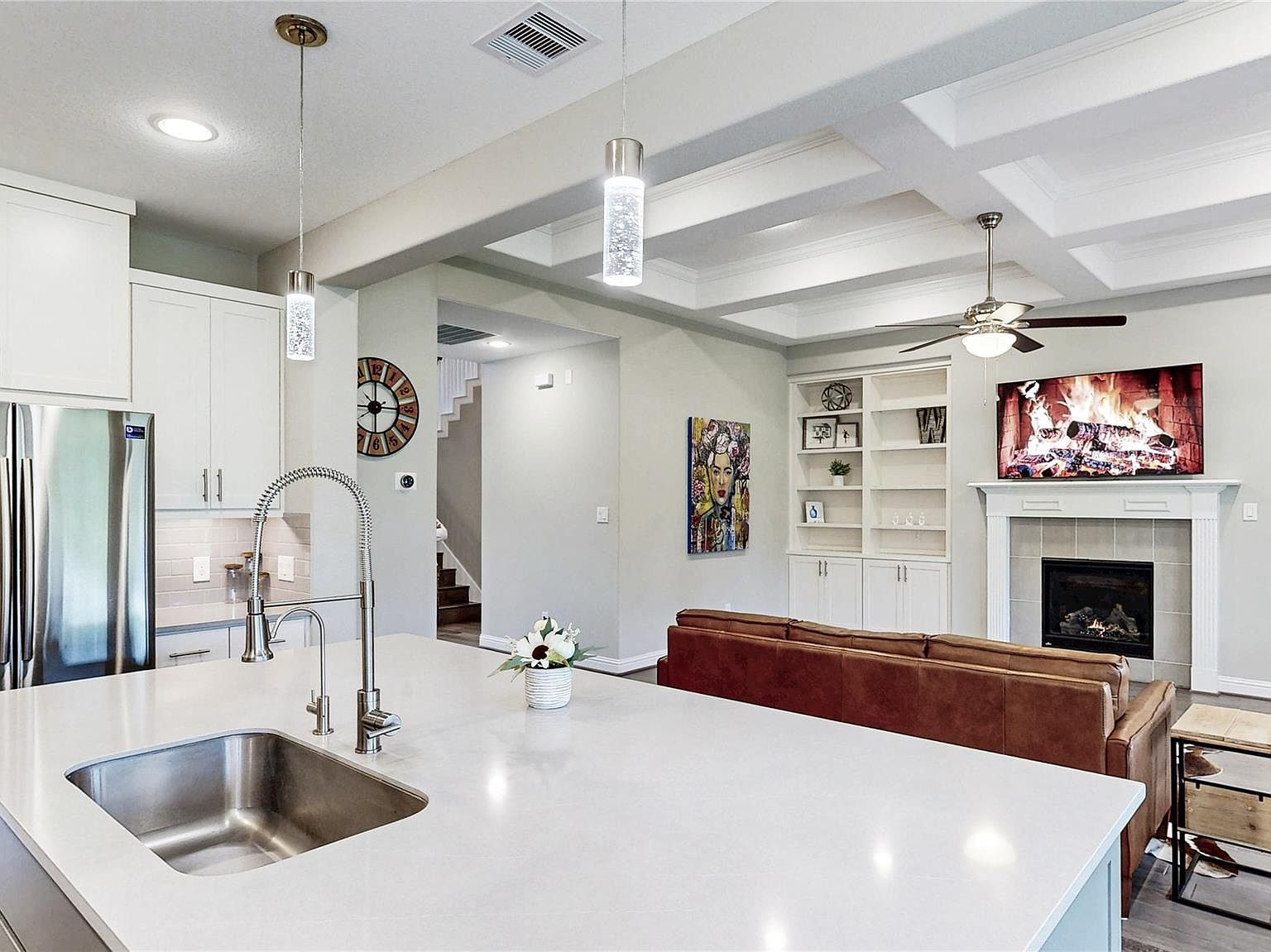 Welcome to 10 Bermuda Circle—an immaculate home in the prestigious gated, lakefront community of Bentwater. Perfectly positioned on Hole 3 of the Weiskopf Golf Course, this 4-bedroom, 3-bath gem blends timeless elegance with modern comfort. Enjoy soaring coffered ceilings, a dry bar, and walls of windows that fill the home with natural light.