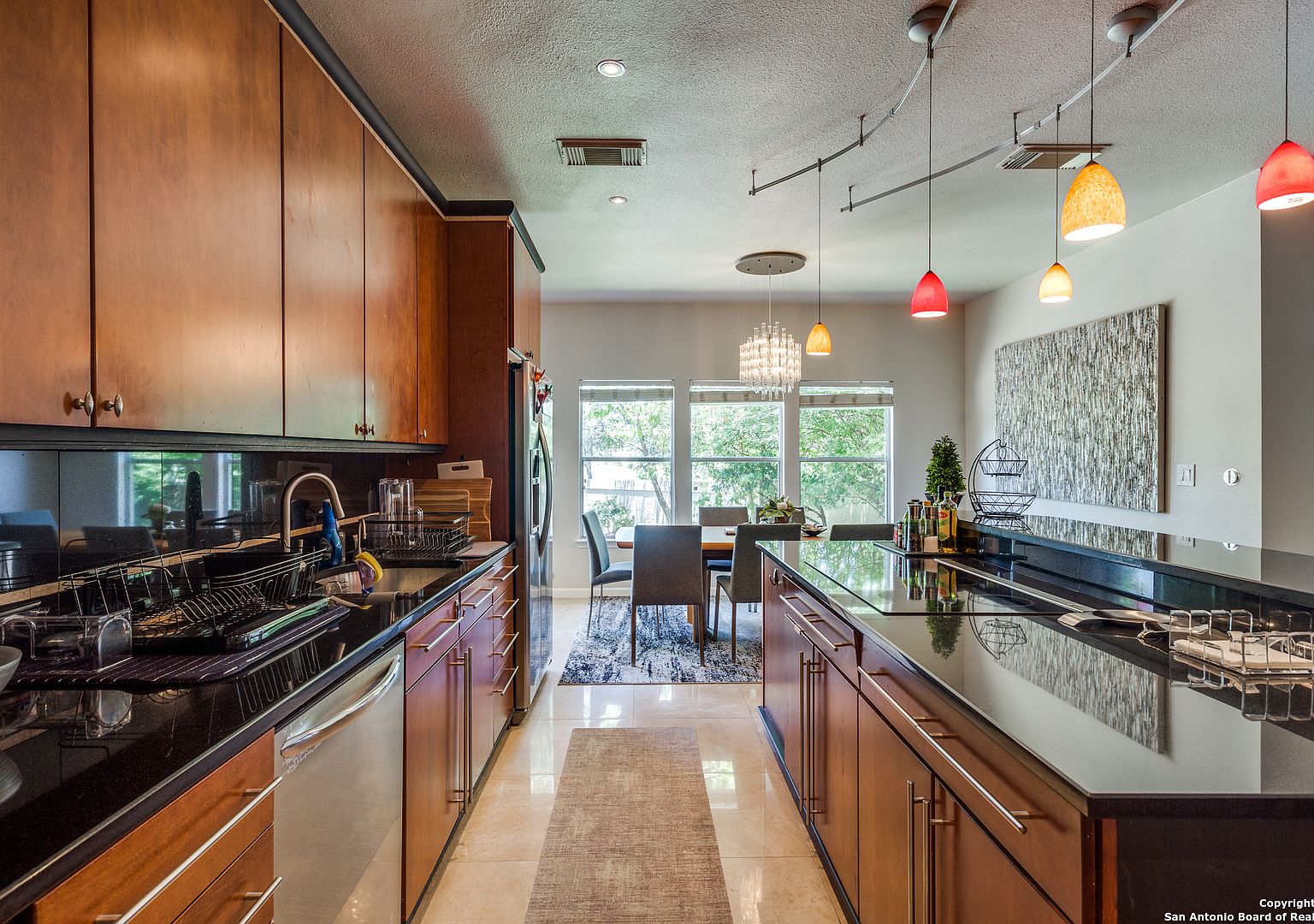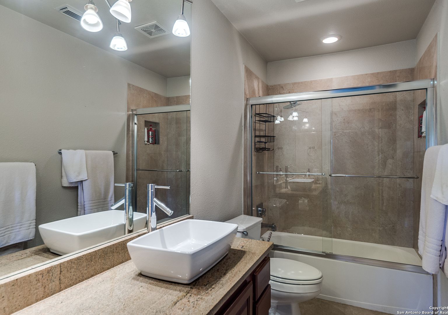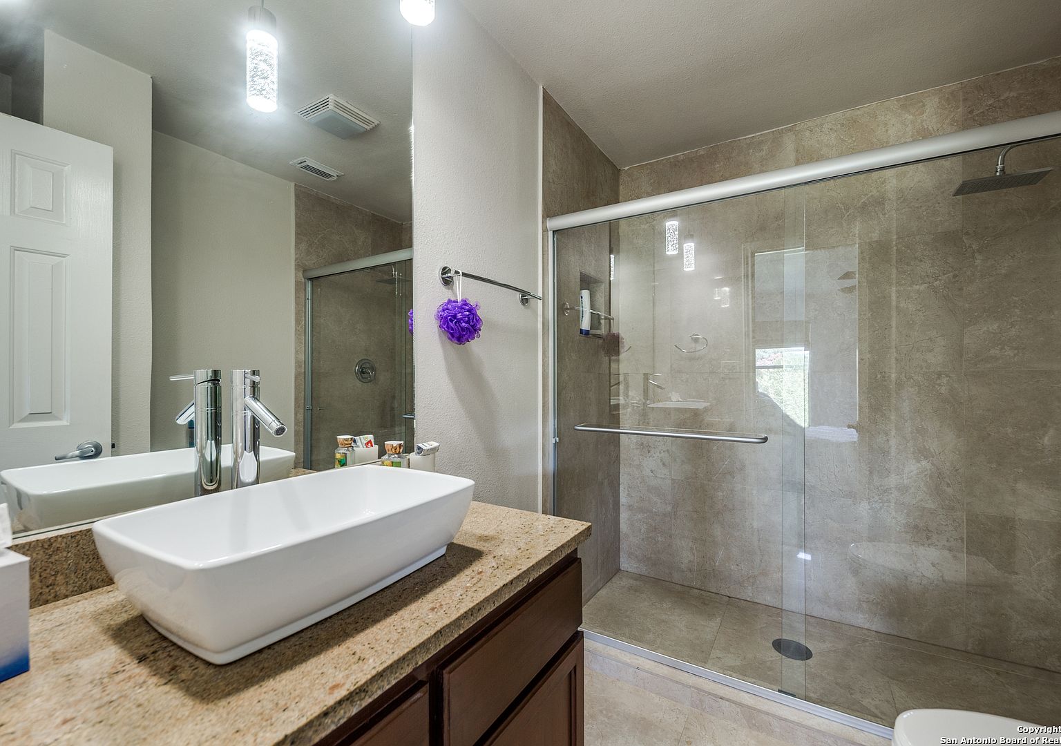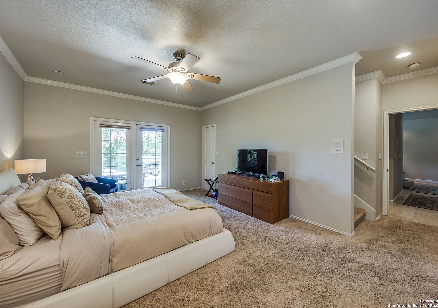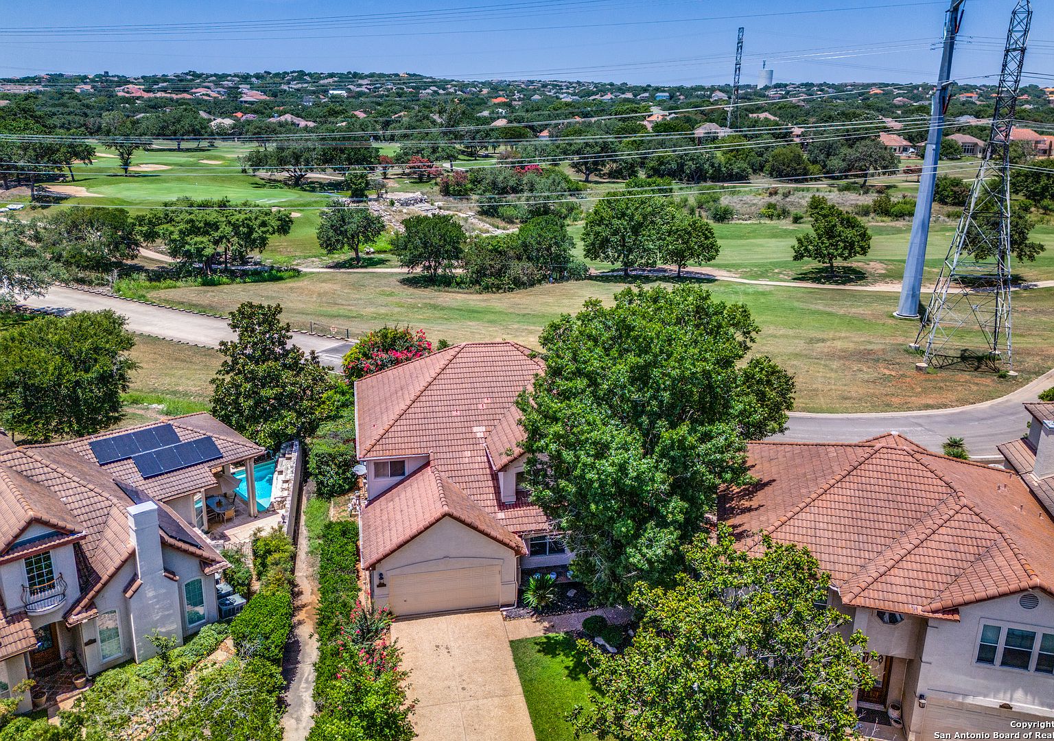 Prime location on the 17th hole of the Sonterra North Golf Course. Beautiful 4-bedroom, 3.5-bath home in the gated community of The Waters at Sonterra, within walking distance to The Club at Sonterra. Gourmet kitchen with granite counters, custom cabinets, breakfast bar, and high-end appliances. Open floor plan with abundant natural light. Primary bedroom located on the main level. Upstairs features a study/exercise room and bedrooms with golf-course views. Landscaped yard and outdoor spaces overlooking the fairway. A rare opportunity in a highly desirable Stone Oak community.