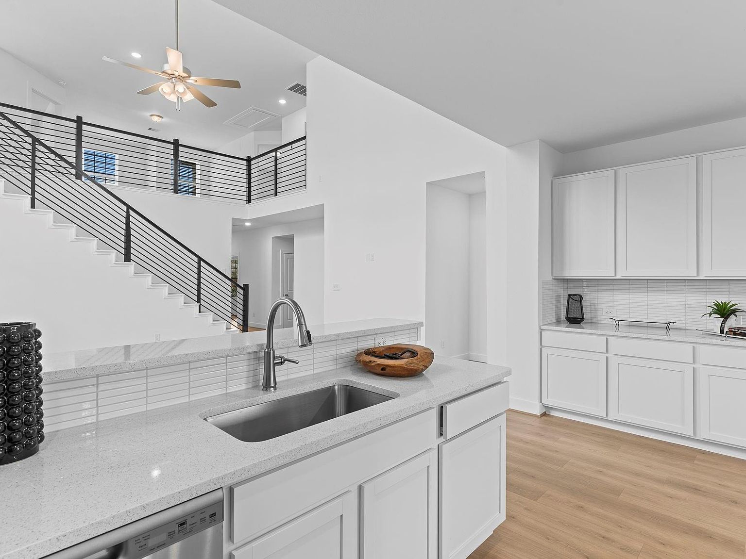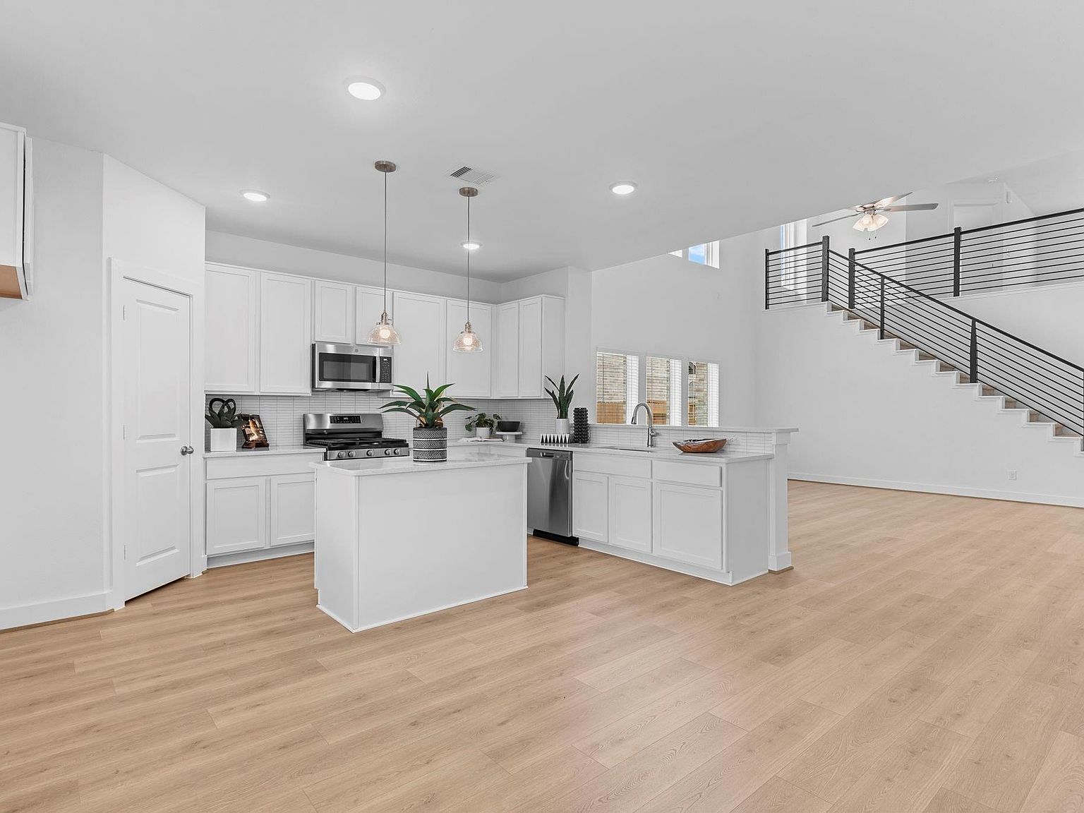 Stunning Trinity Floor Plan by CastleRock Communities! Gated Community! Beautiful lot on the Community Golf Course/Restricted Reserve! Covered Back Patio! This beautiful two-story energy star home features a charming front porch elevation. Grand entry with soaring ceilings two story high & gorgeous wood-like tile flooring throughout the first floor. A private home office provides the perfect workspace, while the modern two-story sweep cable iron staircase is a dramatic focal point leading to the open second floor. The family area showcases a dramatic Two-Story wall of windows that fills the space with natural light and flows into the gourmet kitchen with tall shaker-style cabinets, subway glass tile backsplash, granite countertops, stainless steel appliances, a large island, & deep undermount sink. The downstairs primary suite features a spa-like bath with dual vanities & walk-in closet. Upstairs offers a spacious game room & 3 guest bedrooms tucked away for privacy& full bath.