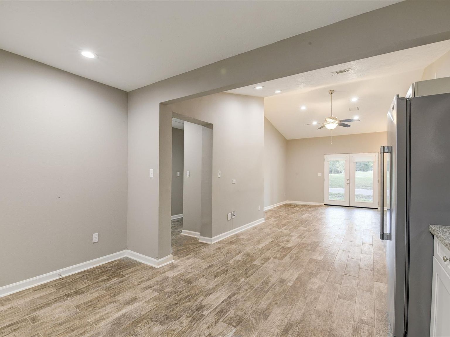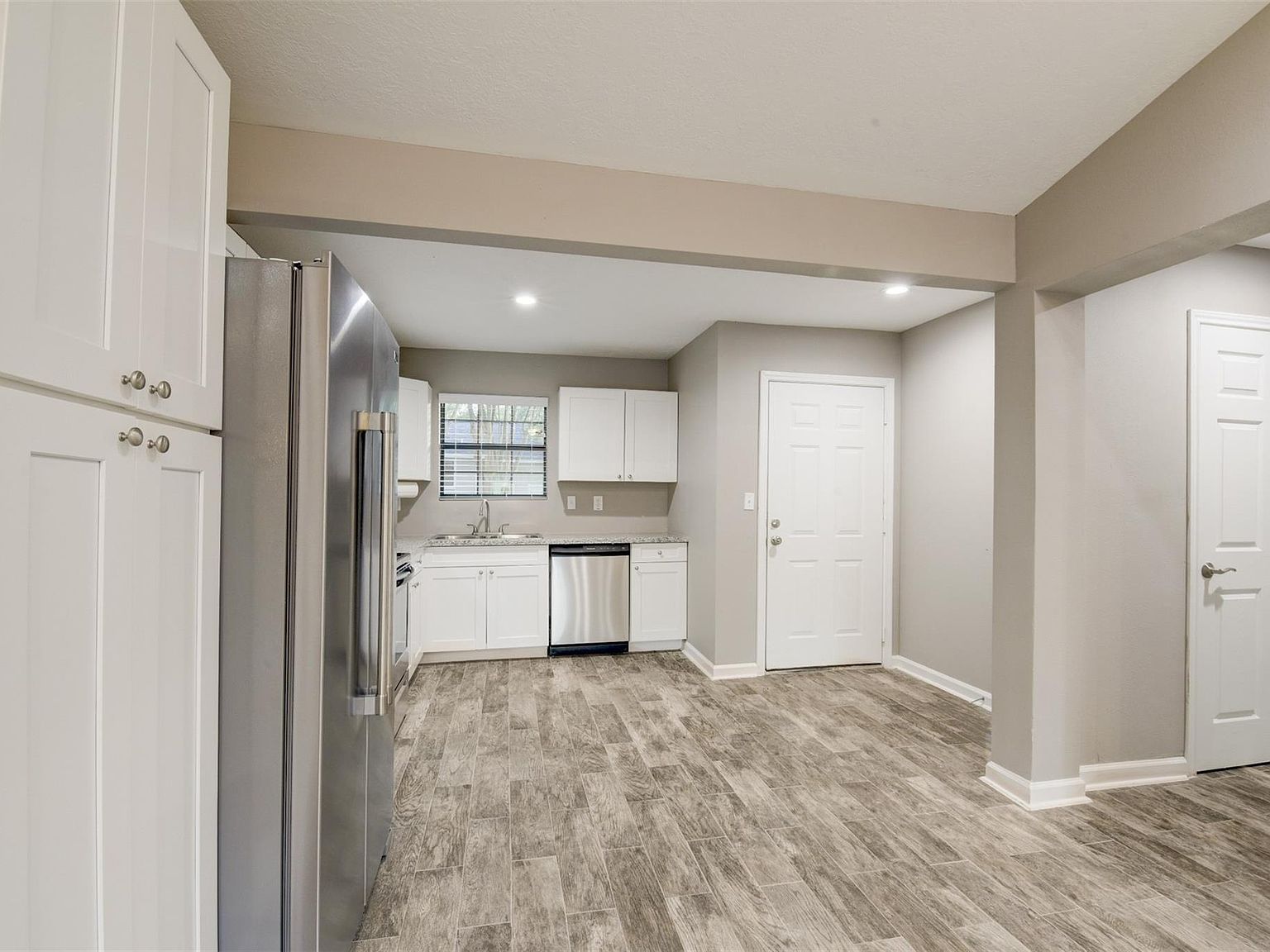Fully remodeled 2 bed, 2 bath home on golf course! You will LOVE coming home to the cottages at Del Lago where you can live where you play. Perfect location nestled near Margaritaville and Lake Conroe. Walk inside to all tile flooring throughout and 36" door openings to make it easy to move around and settle in. Kitchen is light and bright with white cabinetry and stainless appliance package; refrigerator included too. Open concept living and dining space with double doors leading to covered patio. Split bedroom plan offers privacy from primary to second bedroom. Primary bedroom with built in closet space offers plenty of room for a king set. Attached primary bath has dual sinks, bright subway tile, and nice details. Bed 2 is spacious enough to fit dual bed sets or in room office. Secondary bath with granite countertops and tub plus tile surround. Full size stackable washer/dryer included as well! Montgomery ISD.