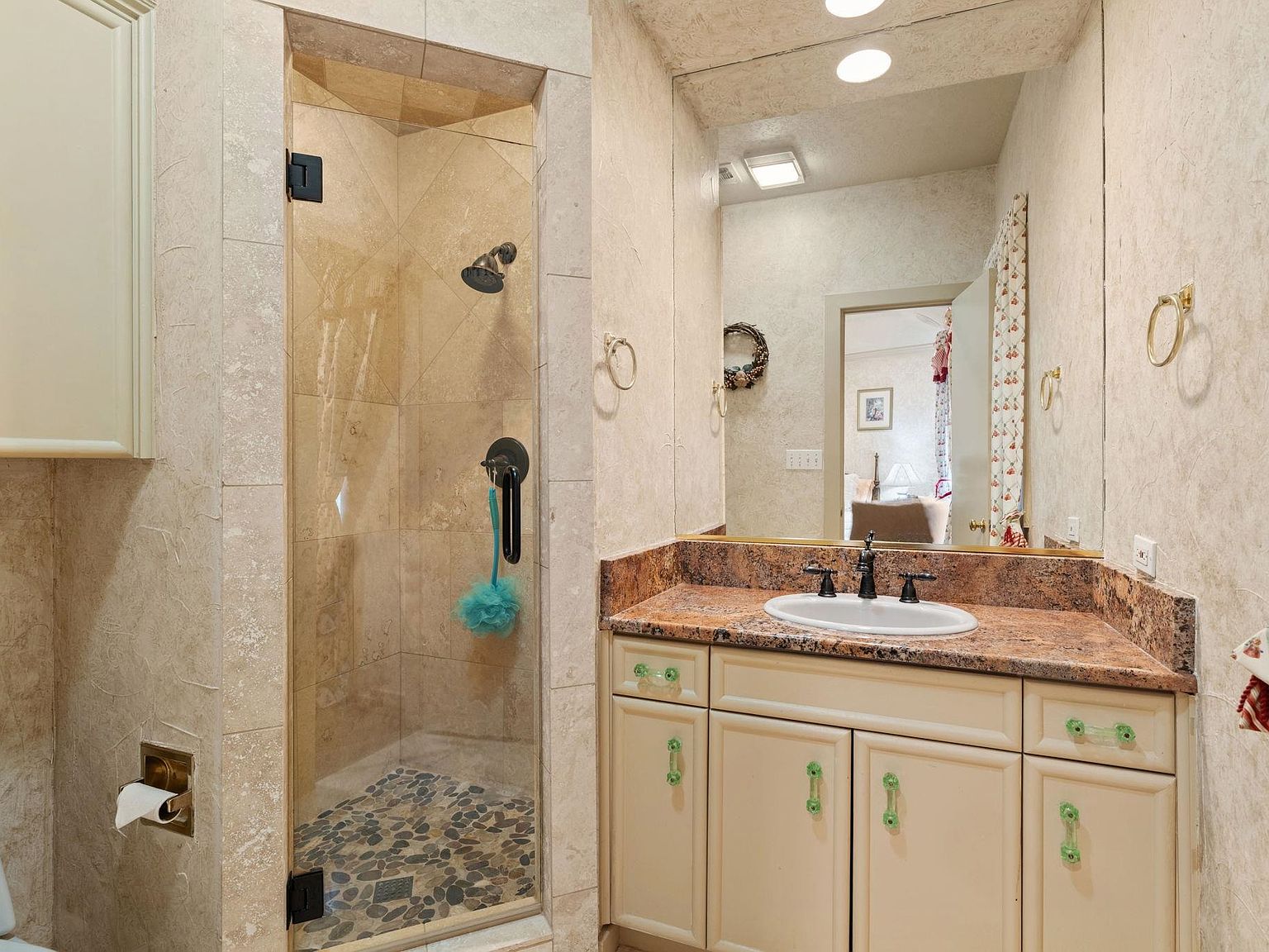 Bathed in natural light and framed by serene golf course and pond views, this residence embodies the elegance and ease of Horseshoe Bay living. A symphony of stone, wood, and glass — complemented by Waterford light fixtures — creates an atmosphere that feels both timeless and contemporary. The soaring great room, intimate library, and inviting gathering spaces flow seamlessly, designed for both quiet moments and effortless entertaining. Thoughtful features include a built-in surround sound system, a central vacuum, and ample storage throughout. Overlooking the #3 fairway of the Slick Rock Golf Course, the home is poised just minutes from The Horseshoe Bay Resort and Lake LBJ, offering a refined yet relaxed lifestyle in one of Texas’ most coveted destinations. An assumable VA loan at 2.625% is available — an exceptional opportunity for qualified buyers. (Membership required for resort amenities.)
